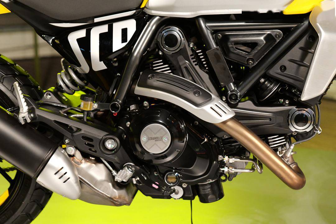 作為Scrambler個(gè)性的關(guān)鍵元素,Desmodue發(fā)動機(jī)在美學(xué)方面也進(jìn)行了改進(jìn)。新的曲軸箱蓋加入了“X”元素和徽標(biāo),提升了整體的辨識度,而皮帶蓋的形狀也比上一代更具特色。排氣管也進(jìn)行了全新設(shè)計(jì),線條更具美感,而且頭段的彎角也完美地呈現(xiàn)出發(fā)動機(jī)的形狀
