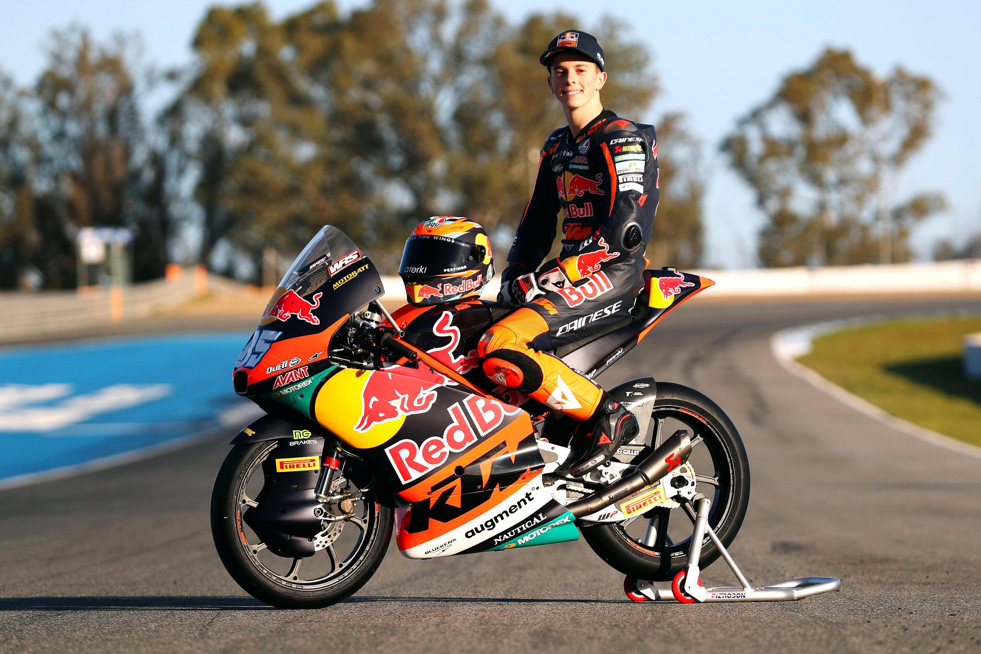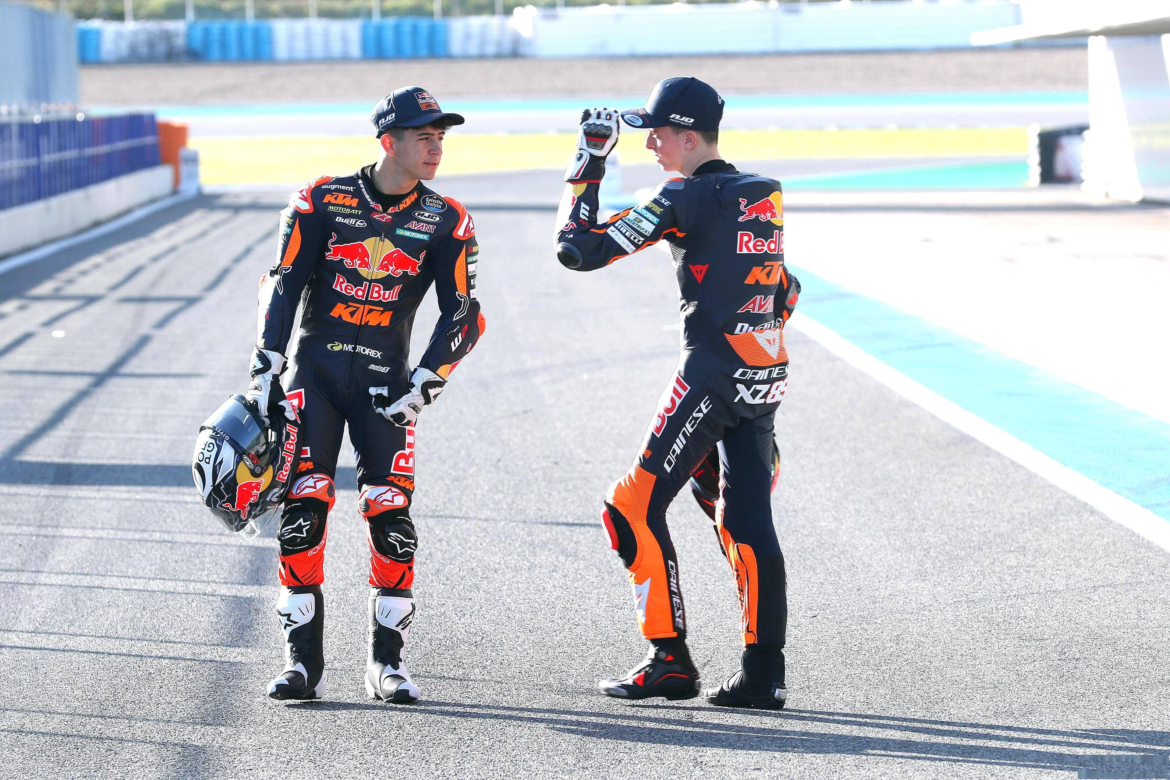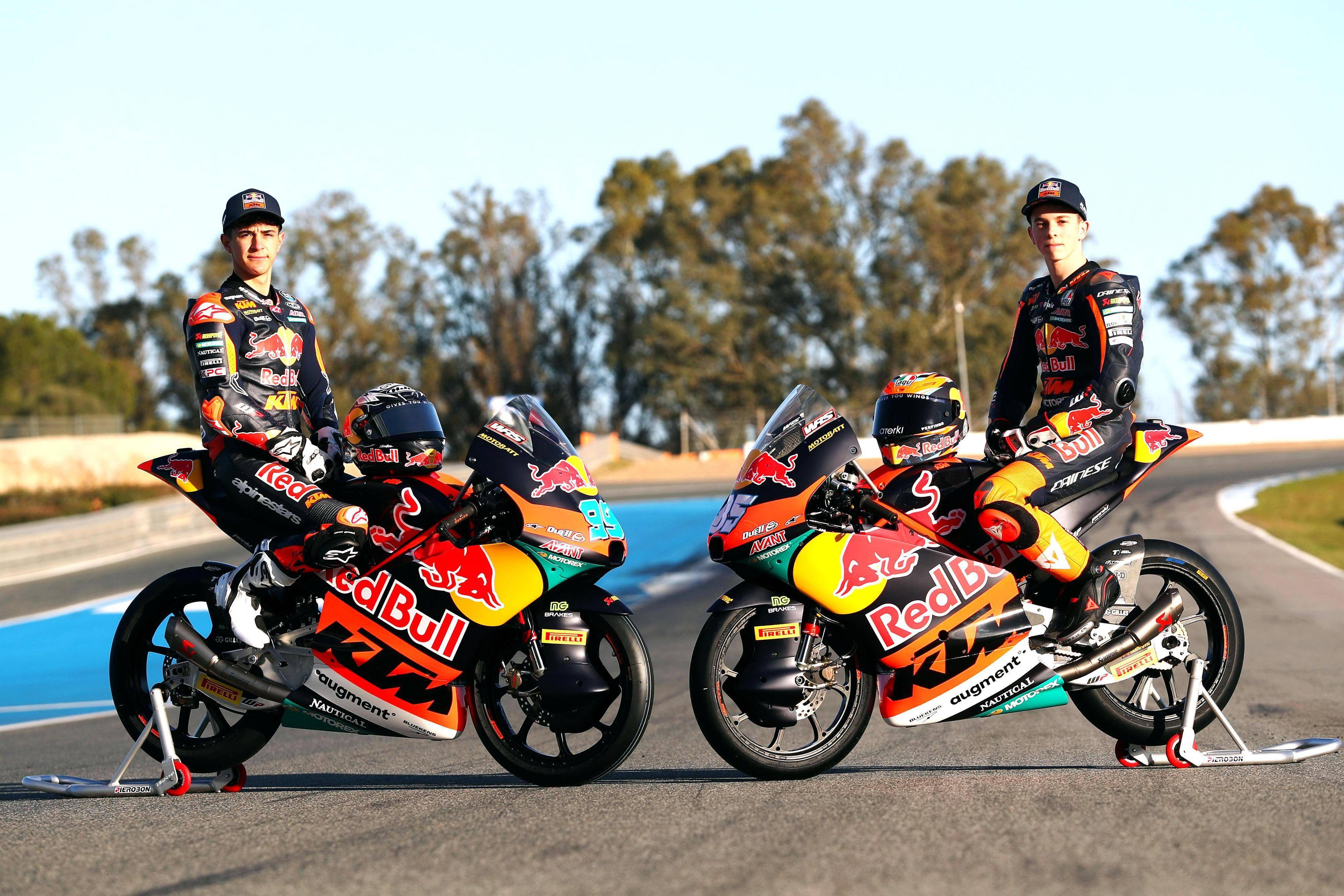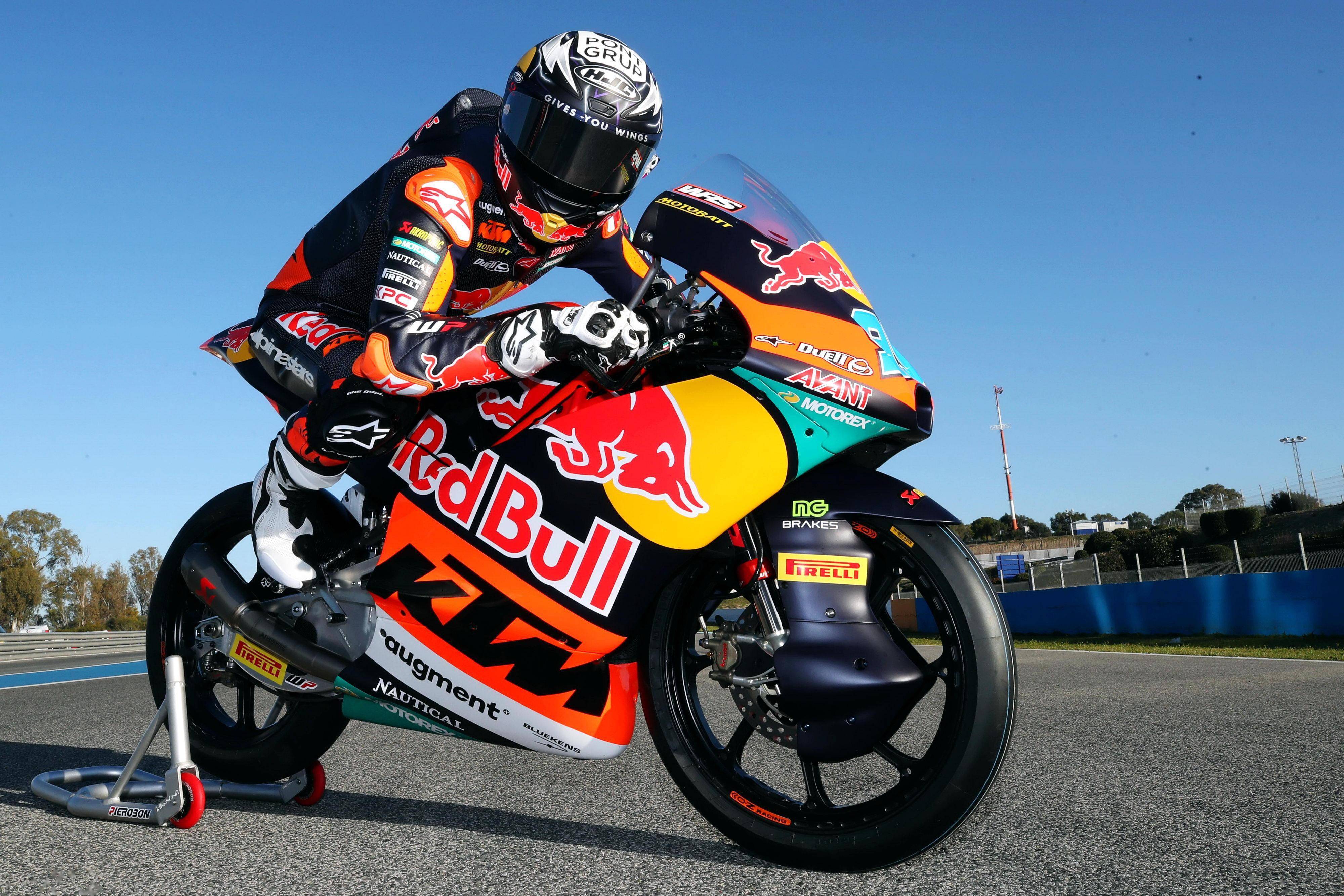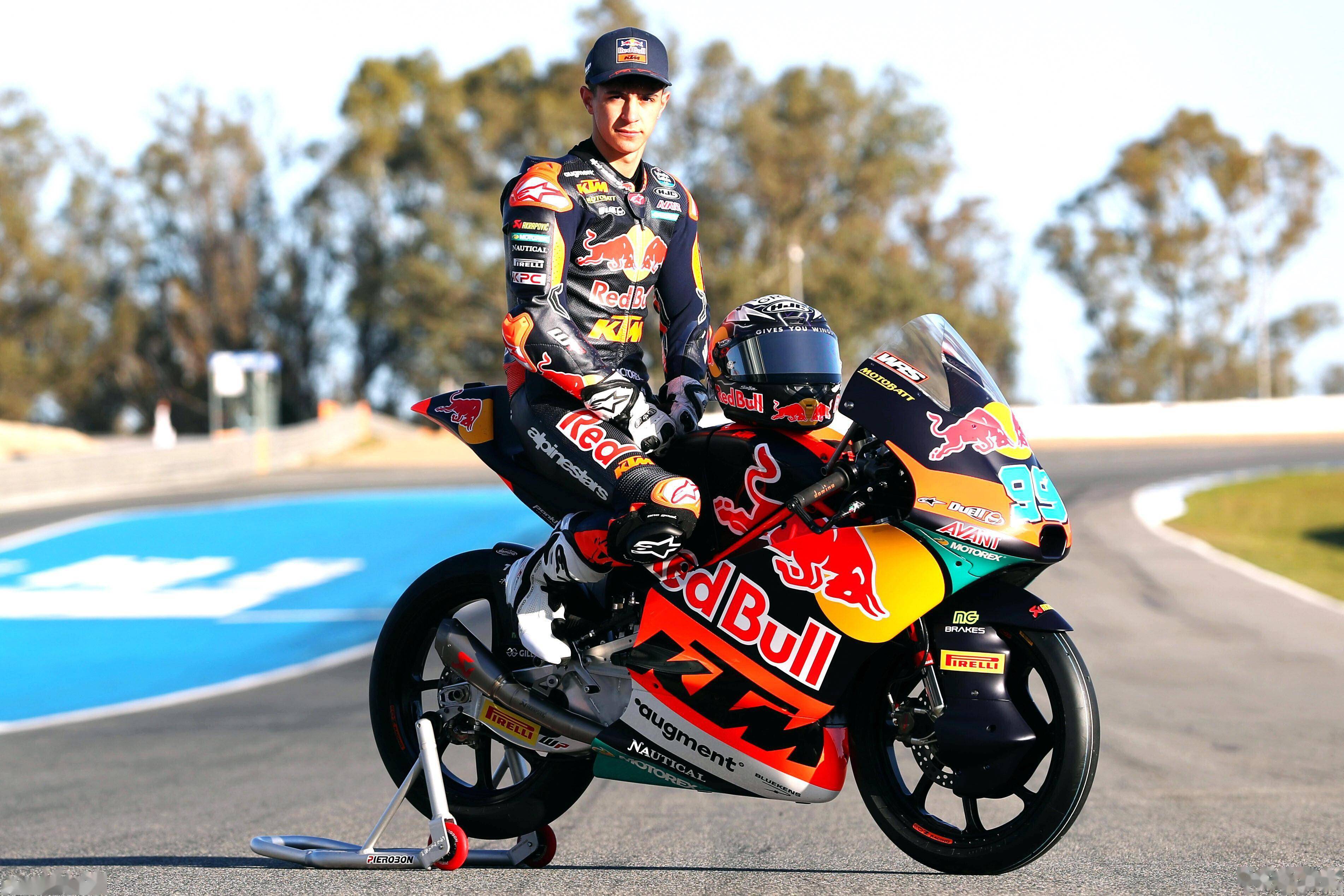 Moto3 級(jí)別,KTM 的工廠賽車是 RC4(上一代是 RC 250R)。KTM AJO 車隊(duì)的出場(chǎng)組合是兩位十八歲的西班牙車手:首次進(jìn)軍世界錦標(biāo)賽、85 號(hào)車的祖魯圖扎(Xabi Zurutuza),以及 99 號(hào)車的魯埃達(dá)(Jose Antonio Rueda)。