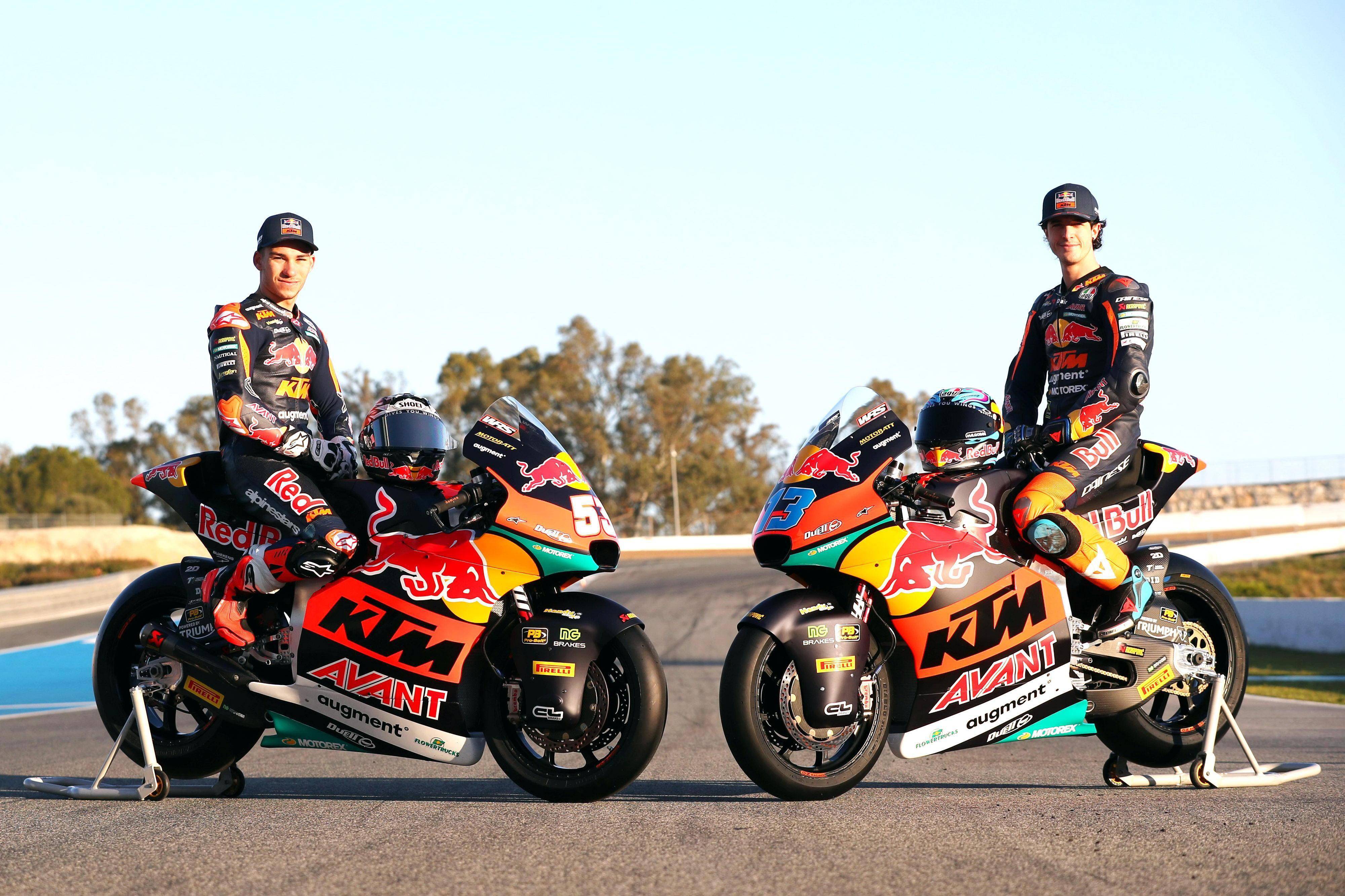 Moto2 級(jí)別,KTM AJO 車隊(duì)采用 Kalex 的車架/底盤(pán),兩位車手分別是有過(guò) VR46 受訓(xùn)經(jīng)驗(yàn)、來(lái)自意大利的 13 號(hào)車維爾蒂(Celestino Vietti),以及從 Moto3 升級(jí)上來(lái)、53 號(hào)車的土耳其車手昂古(Deniz Oncu)。