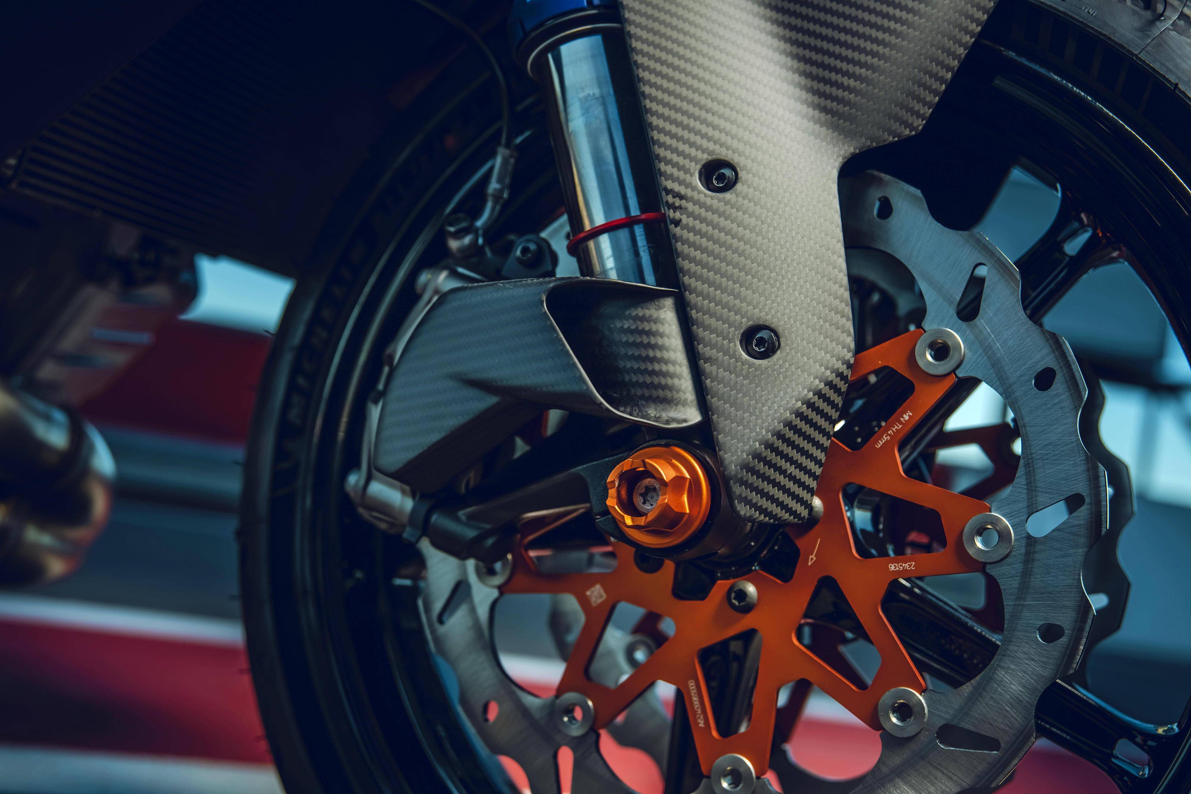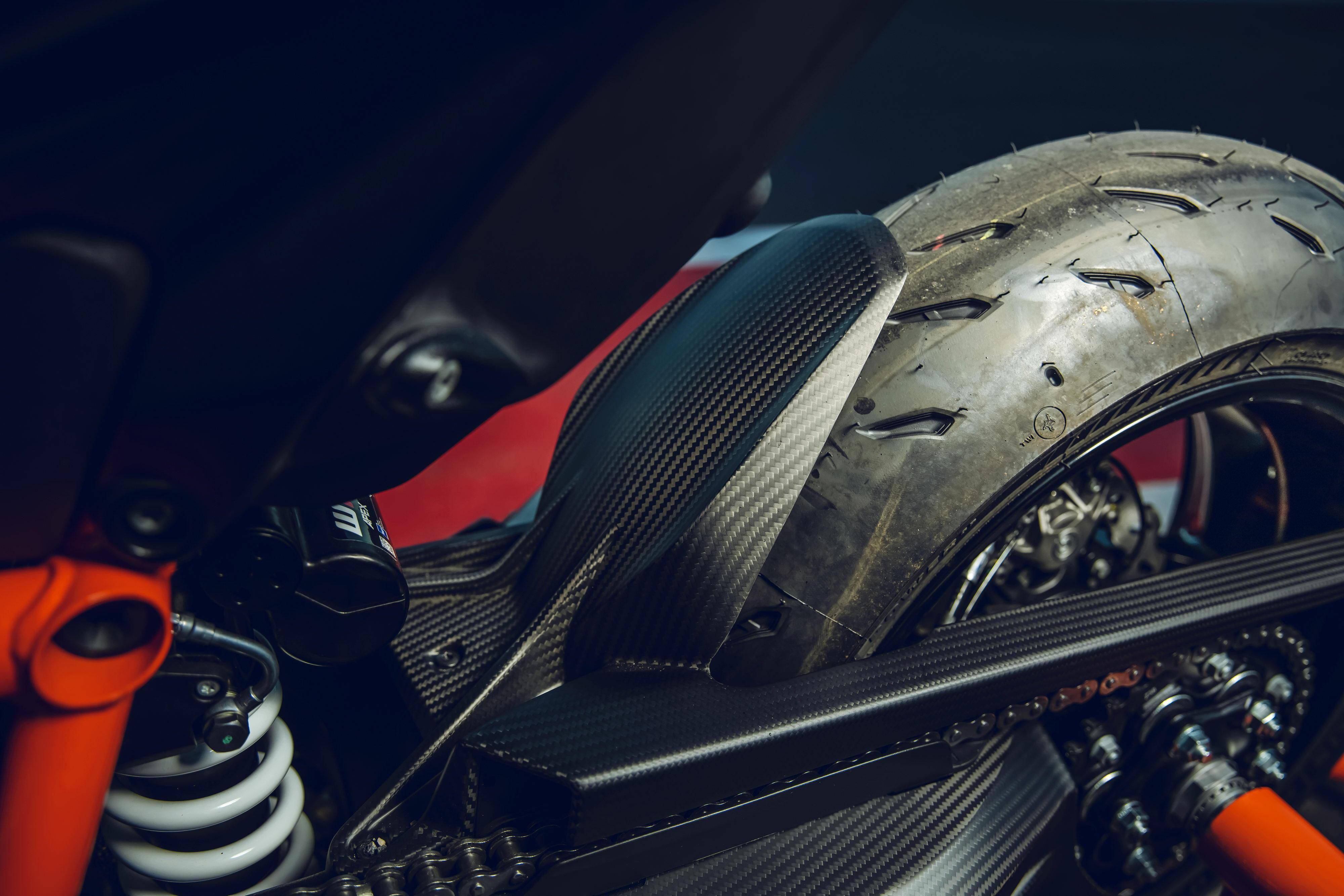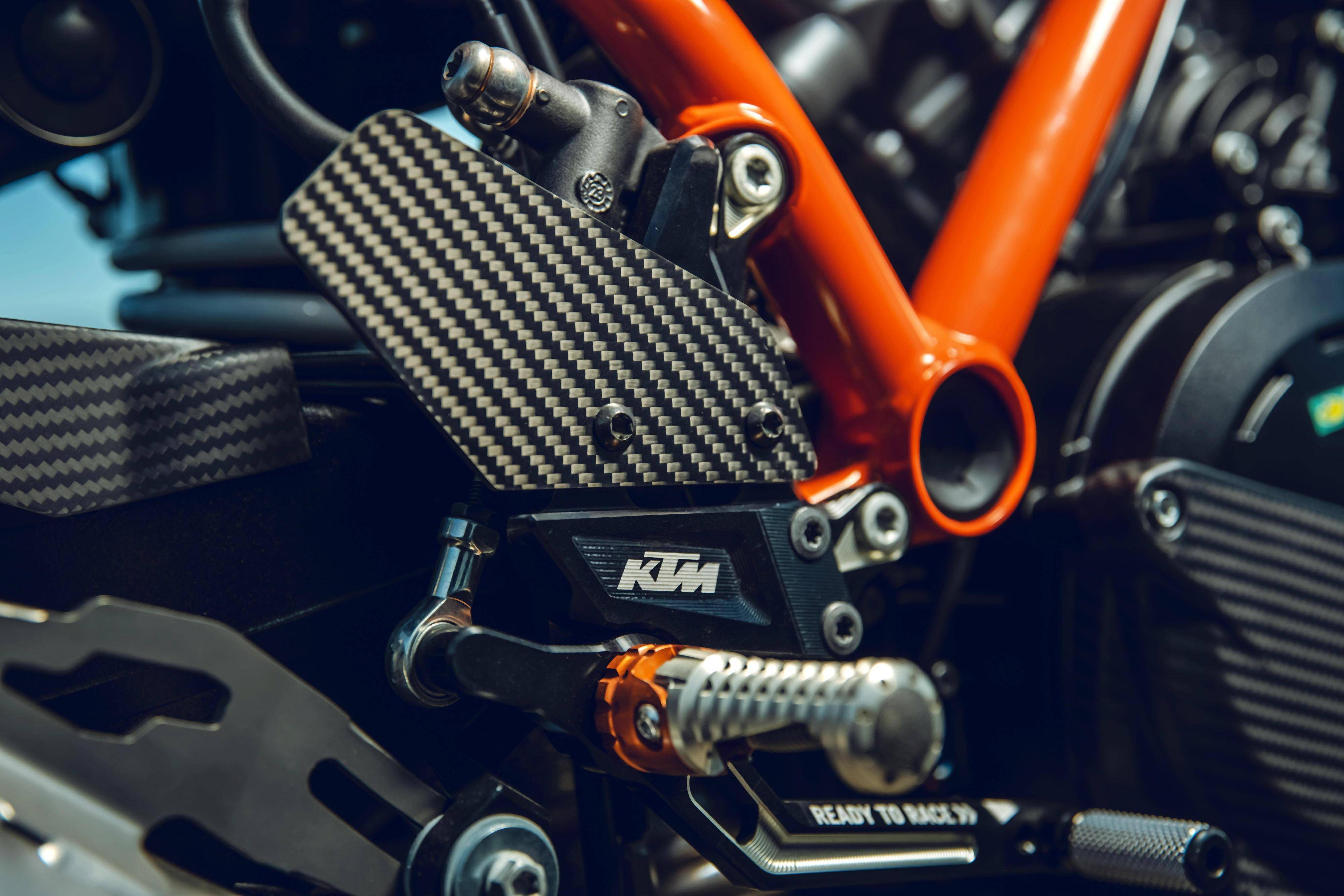 與 1390 系列車型同步推出的,還有大量的 PowerParts 原廠改裝件。針對(duì)不同的應(yīng)用需求,這些 PowerParts 原廠改裝組件可為用戶提供多個(gè)不同選擇,包括針對(duì)不同輸出特性的排氣系統(tǒng),碳纖維制的前、后輪擋泥板,定風(fēng)翼,儀表板的前小型風(fēng)擋,后搖臂、發(fā)動(dòng)機(jī)側(cè)蓋護(hù)罩,CNC 制的上下三星(前叉三角臺(tái))、腳踏等,讓騎士能夠從常規(guī)公共道路的運(yùn)動(dòng)騎行、到賽道里的刷圈速飛馳,均可找到解決方案。