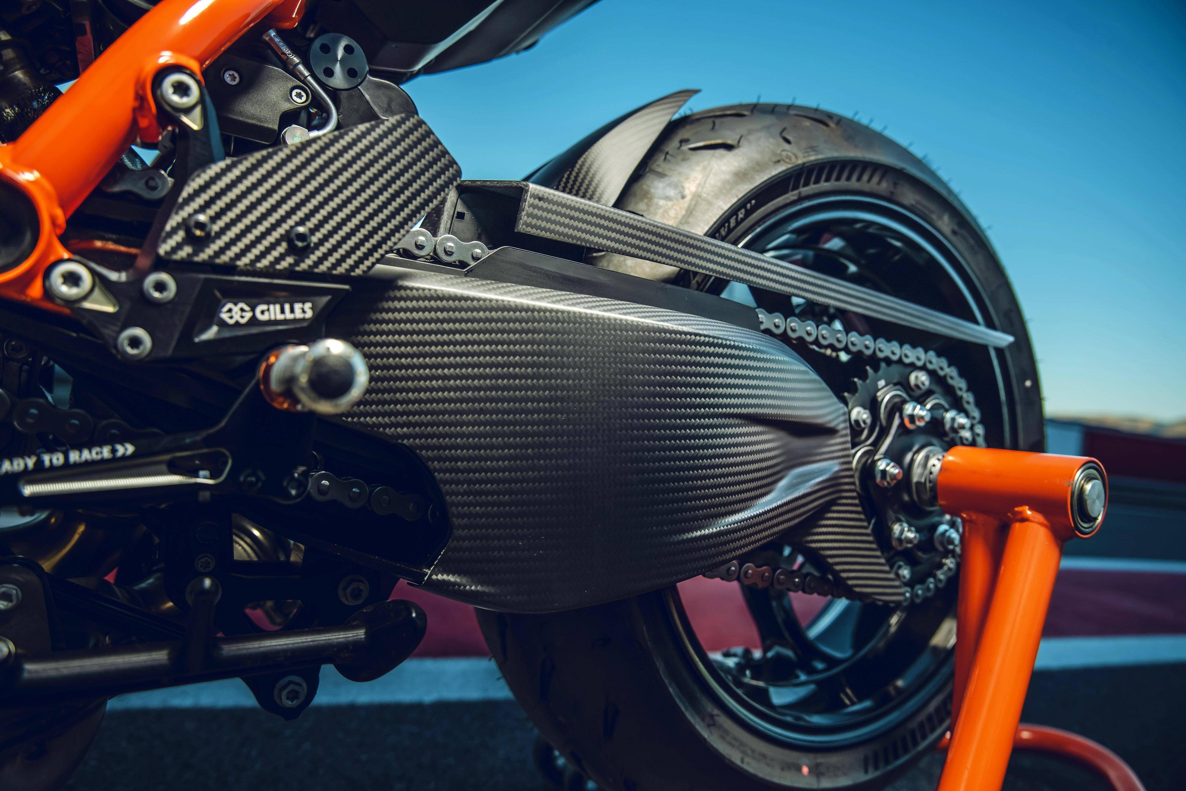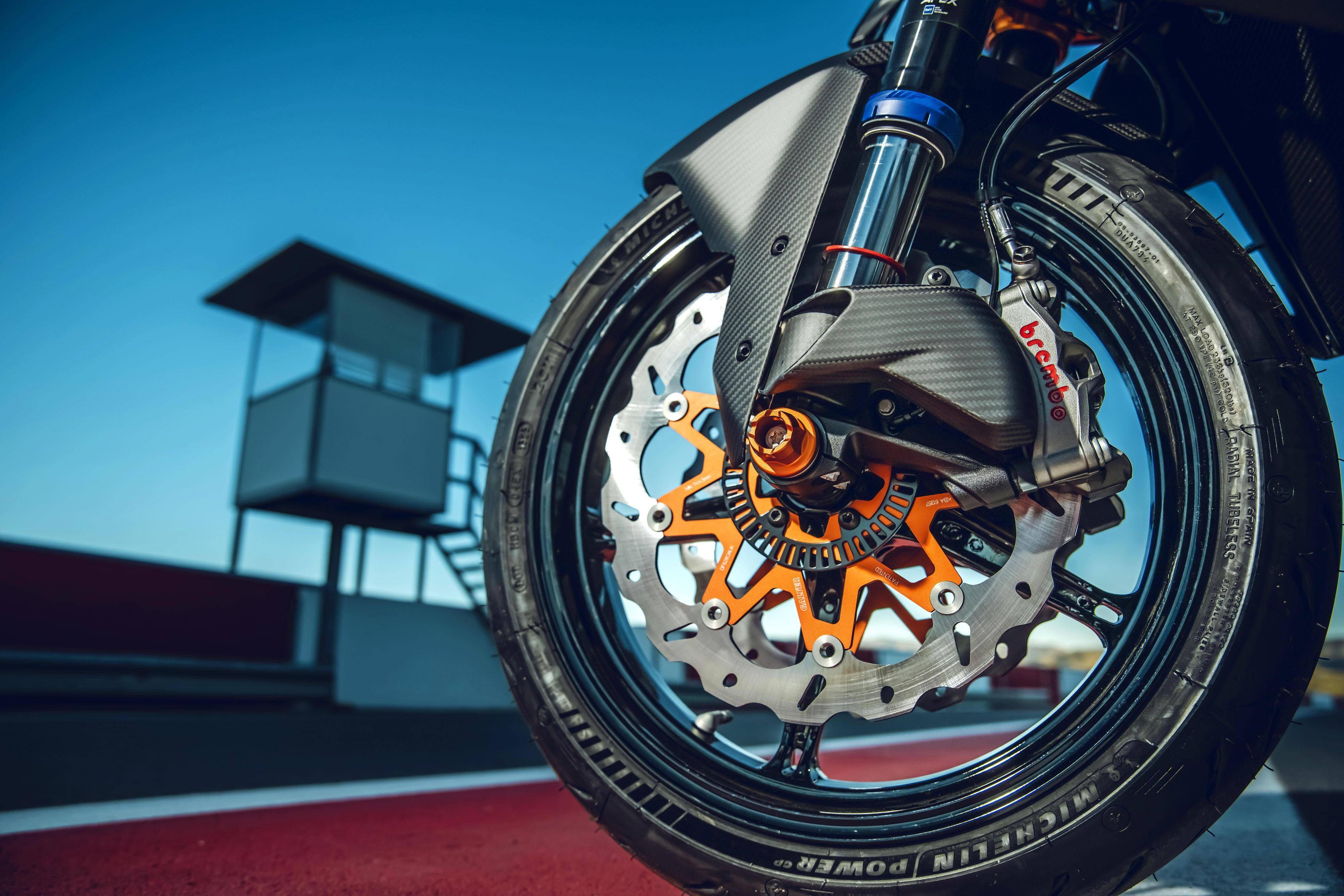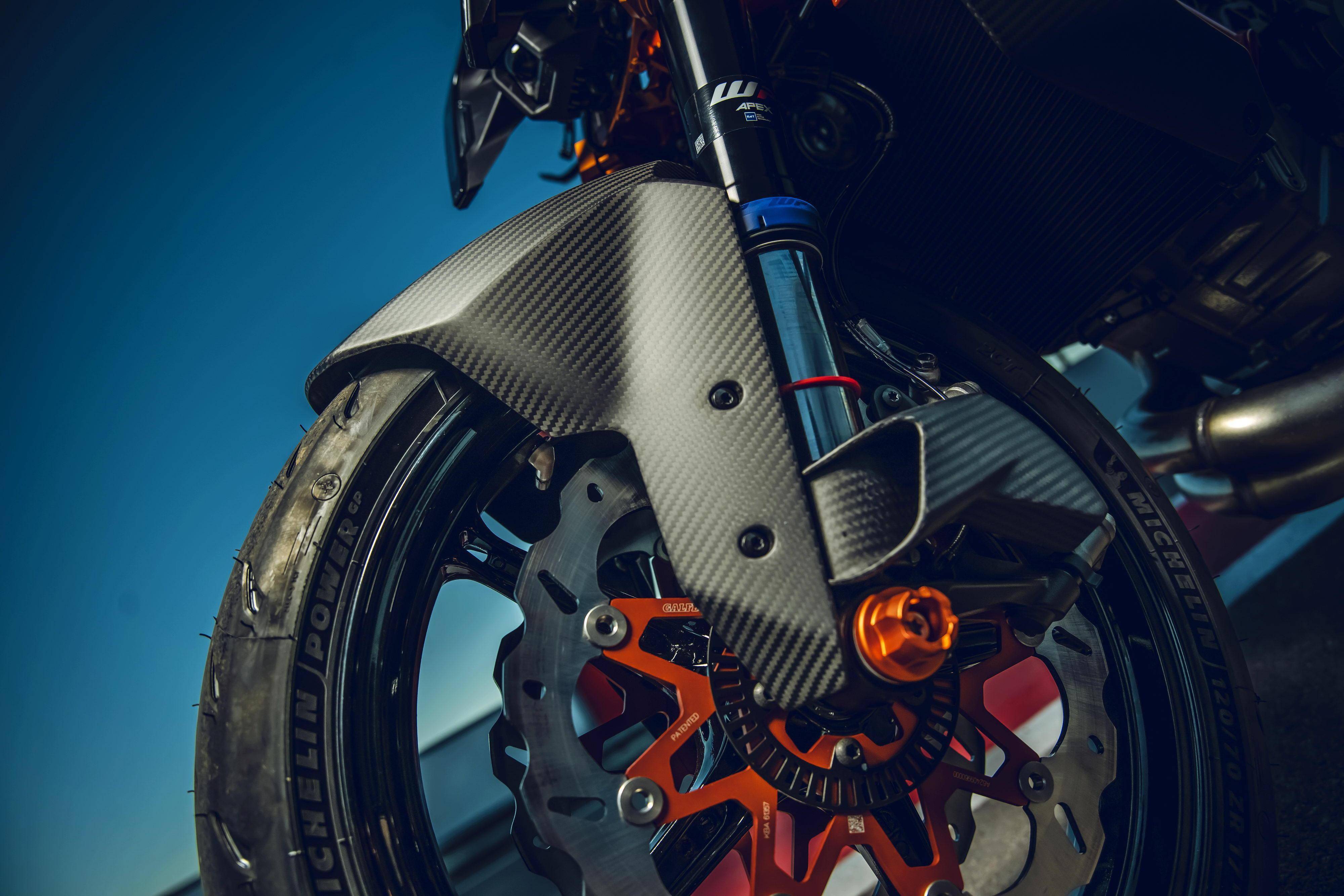 與 1390 系列車型同步推出的,還有大量的 PowerParts 原廠改裝件。針對(duì)不同的應(yīng)用需求,這些 PowerParts 原廠改裝組件可為用戶提供多個(gè)不同選擇,包括針對(duì)不同輸出特性的排氣系統(tǒng),碳纖維制的前、后輪擋泥板,定風(fēng)翼,儀表板的前小型風(fēng)擋,后搖臂、發(fā)動(dòng)機(jī)側(cè)蓋護(hù)罩,CNC 制的上下三星(前叉三角臺(tái))、腳踏等,讓騎士能夠從常規(guī)公共道路的運(yùn)動(dòng)騎行、到賽道里的刷圈速飛馳,均可找到解決方案。