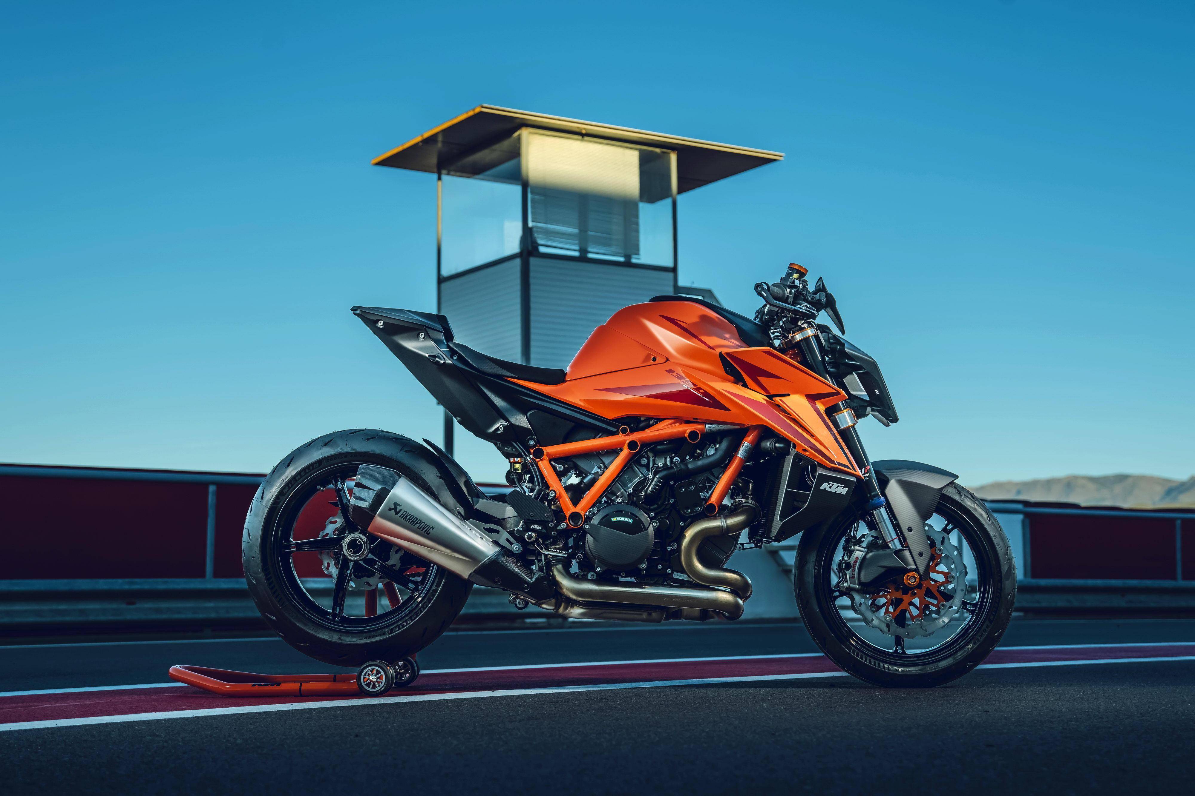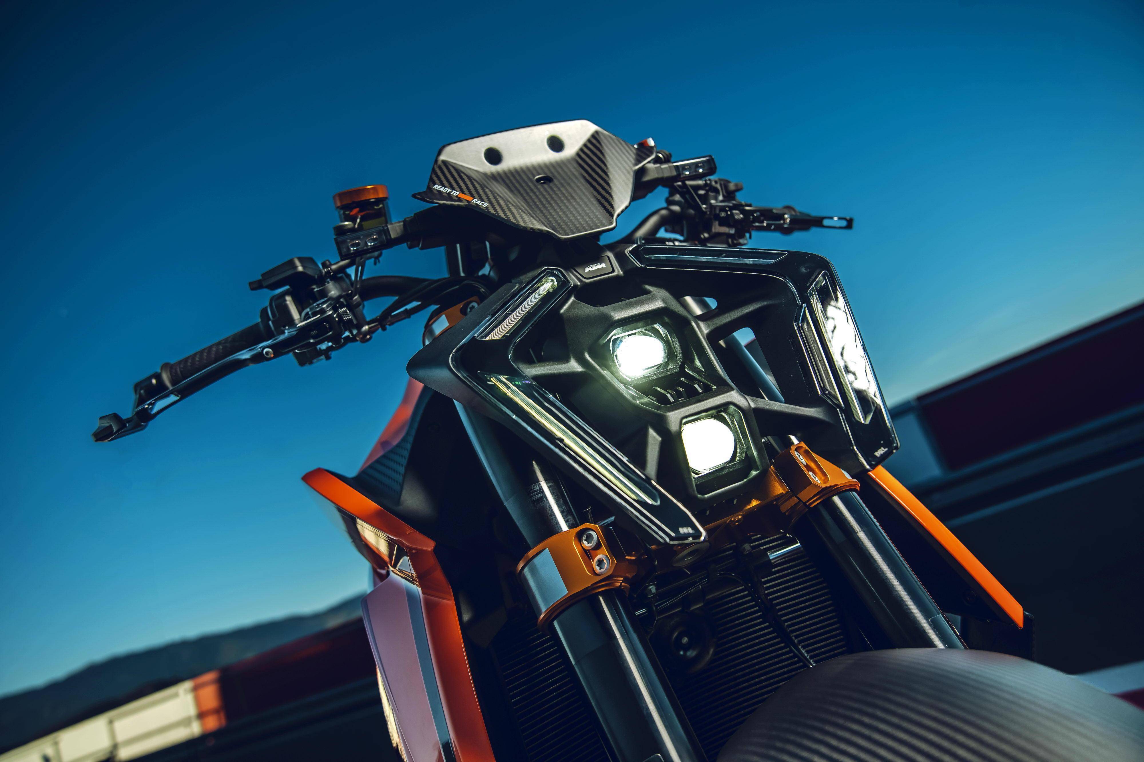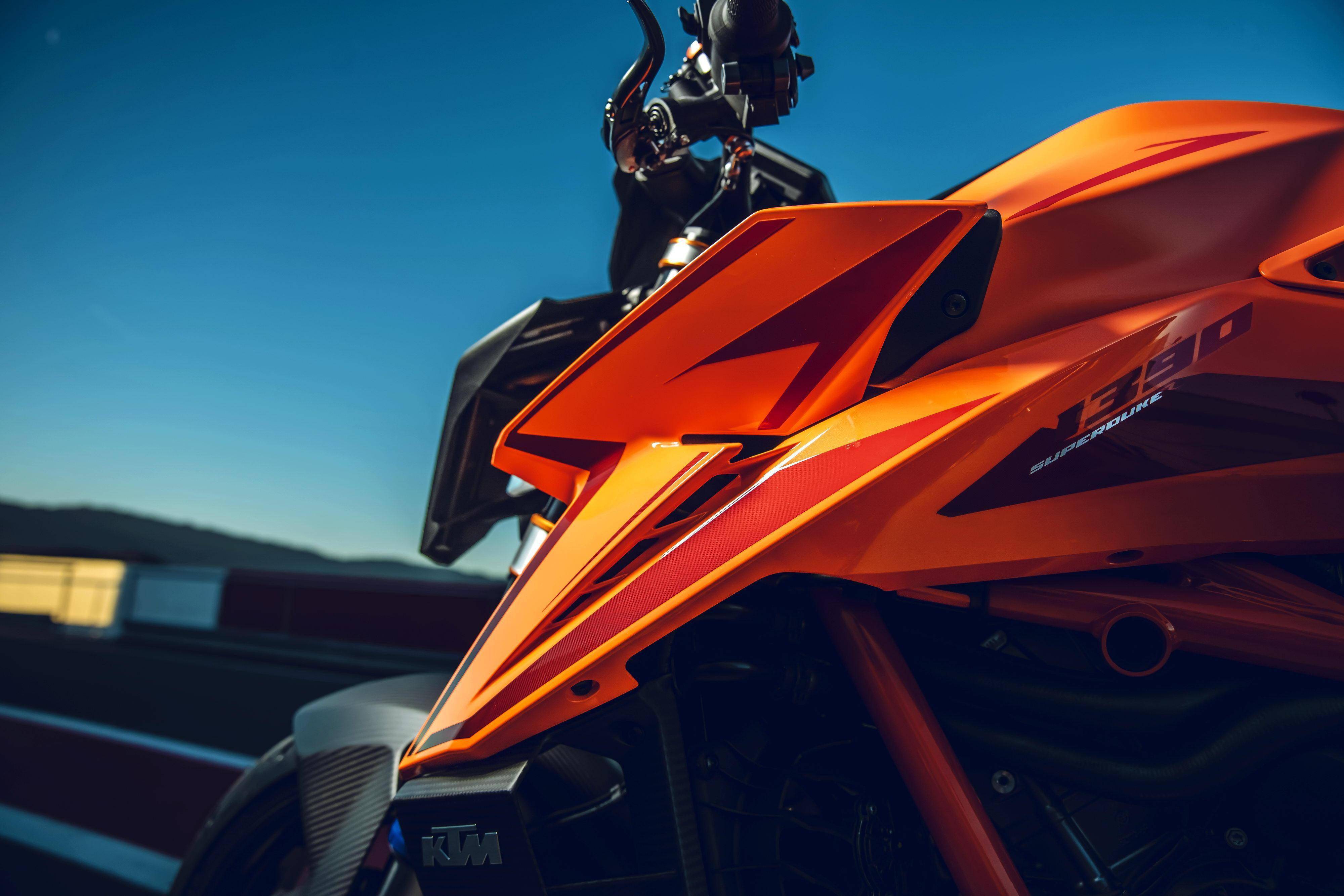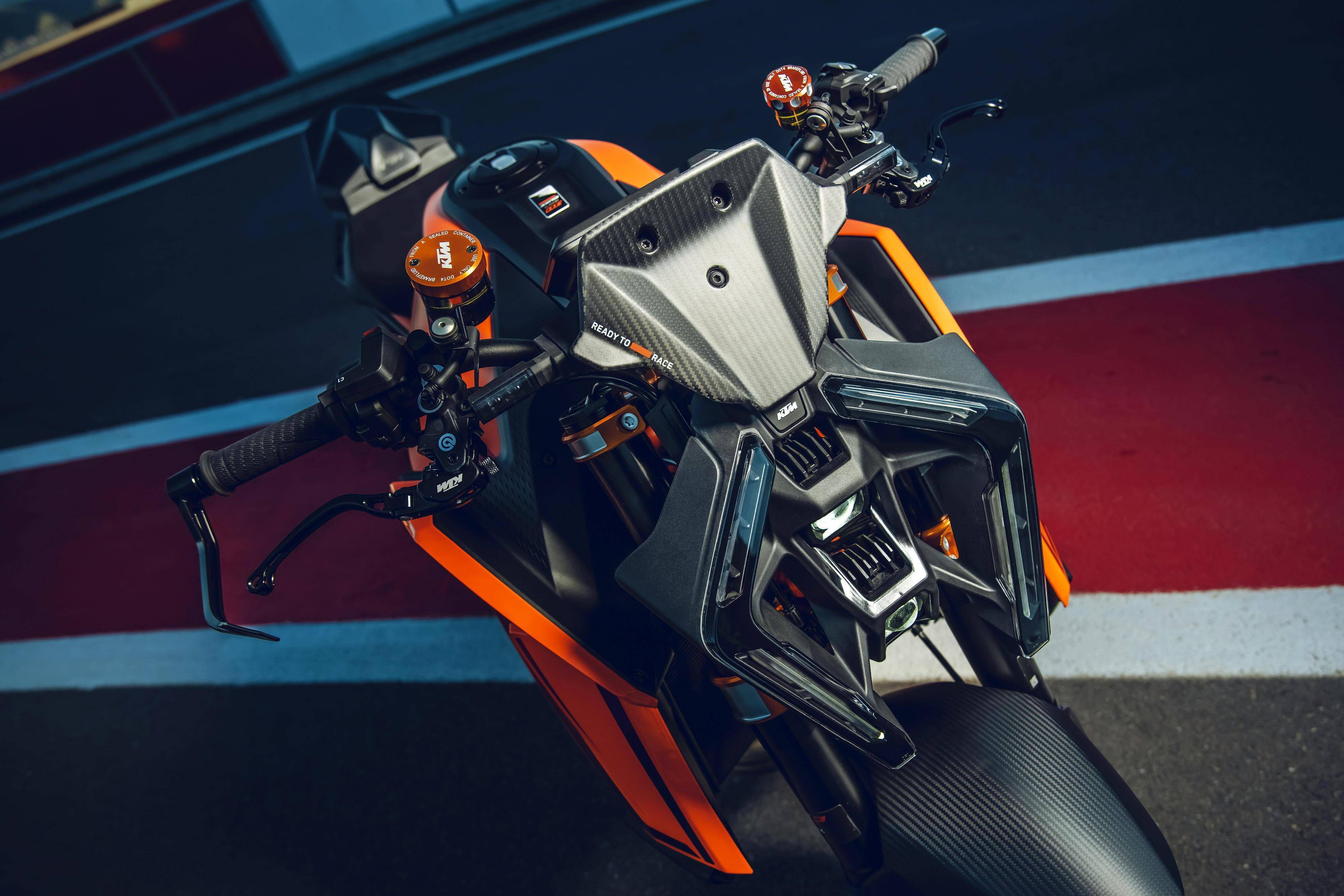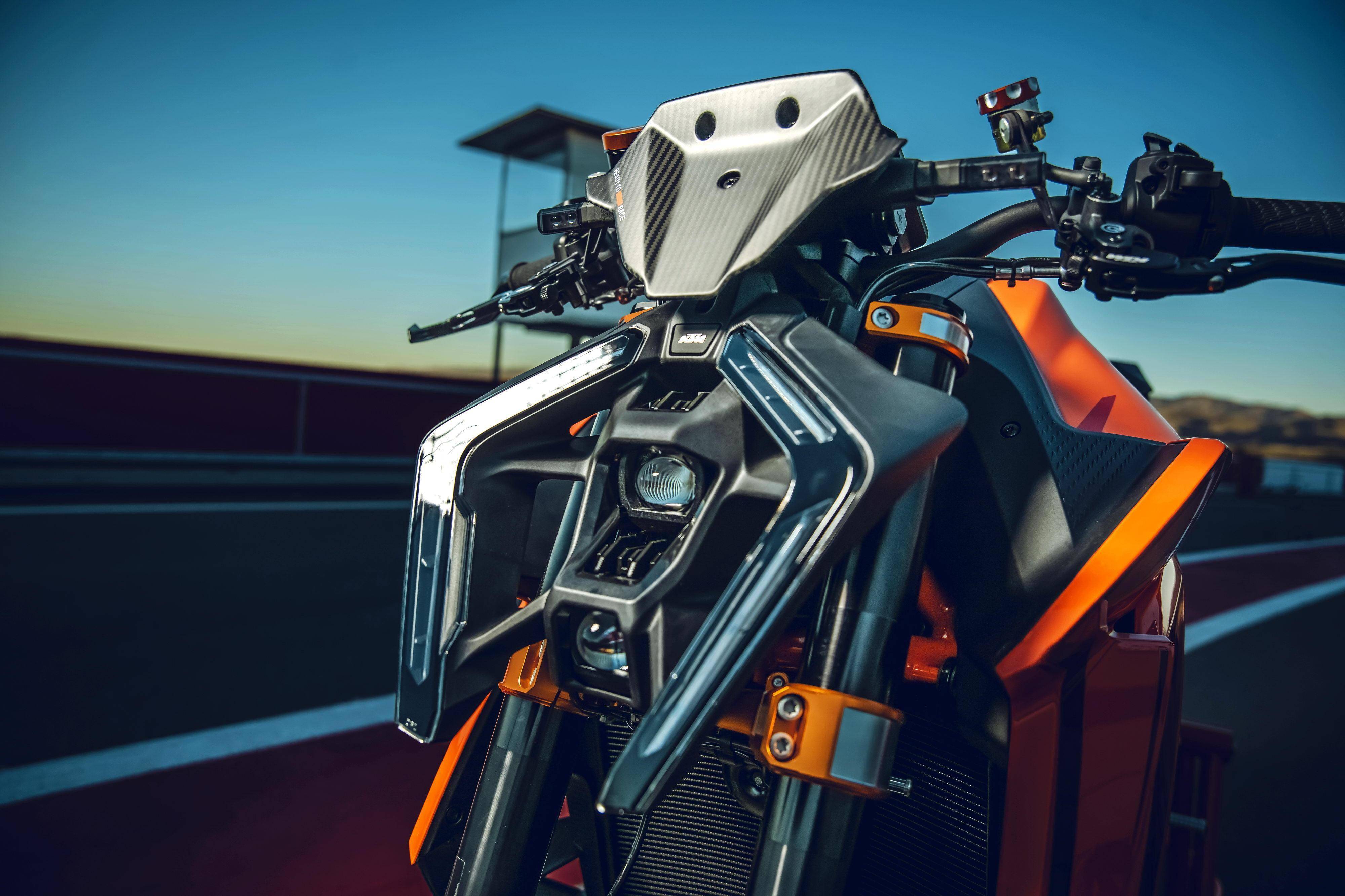 車體采用一副鋼管式的車架、后單搖臂,全新設(shè)計(jì)的外觀造型、采用了一個(gè)較低的整體輪廓,風(fēng)格上有著外星人印象的全新 LED 前大燈,讓新車展現(xiàn)更多的肌肉感、鋒利感的車體兩側(cè)翼子板,一體化設(shè)計(jì)的定風(fēng)翼;經(jīng)過(guò)重新設(shè)計(jì)的進(jìn)氣口和空氣濾清器,容量更大(從 1290 的 16 公升提高至現(xiàn)在的 17.5 公升)的油箱;電子控制系統(tǒng)方面,標(biāo)配了三個(gè)可選的騎行模式、額外選裝的 Performance 高性能模式和 Track 賽道模式,屬于選裝的發(fā)動(dòng)機(jī)控制,防車輪打滑模式。