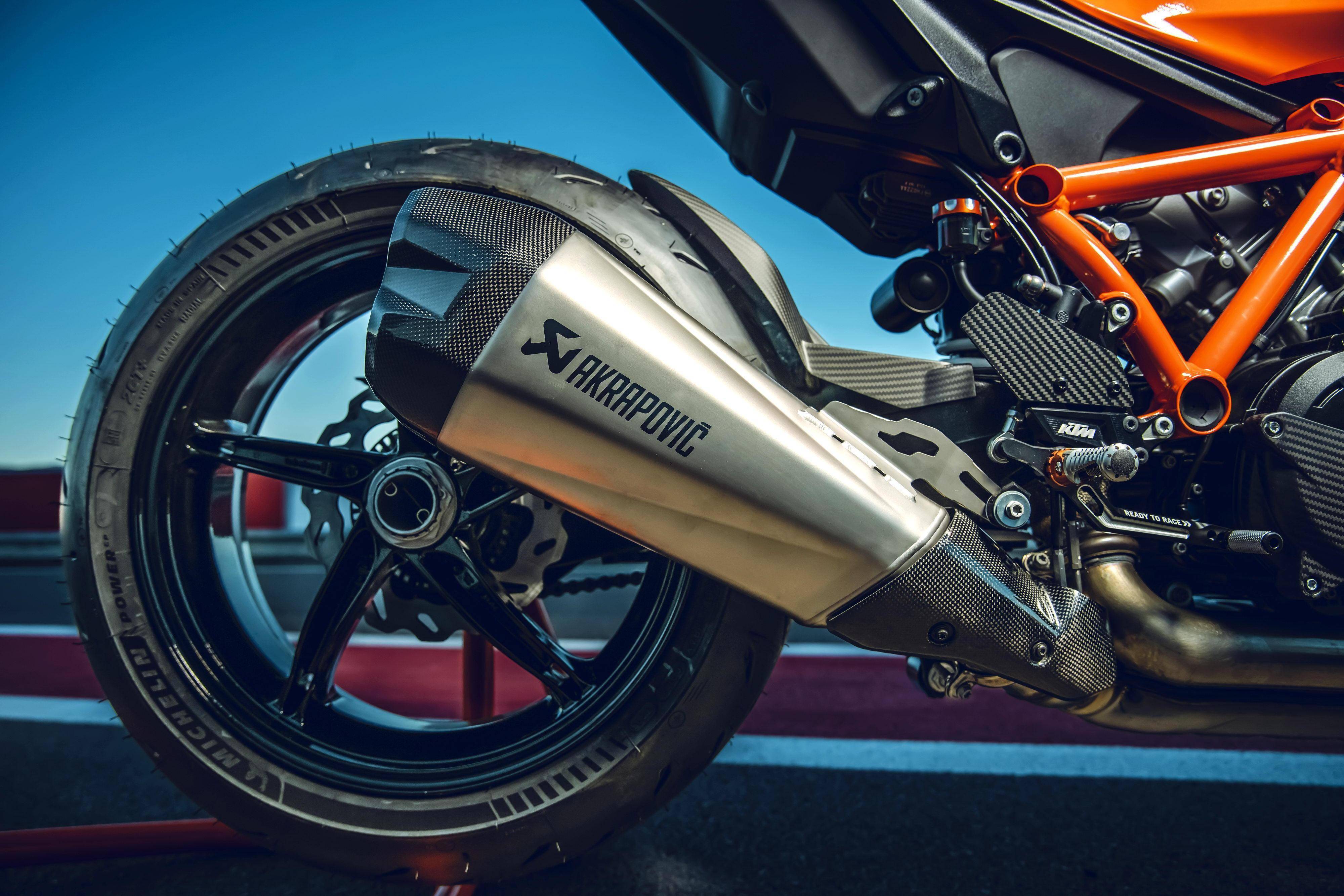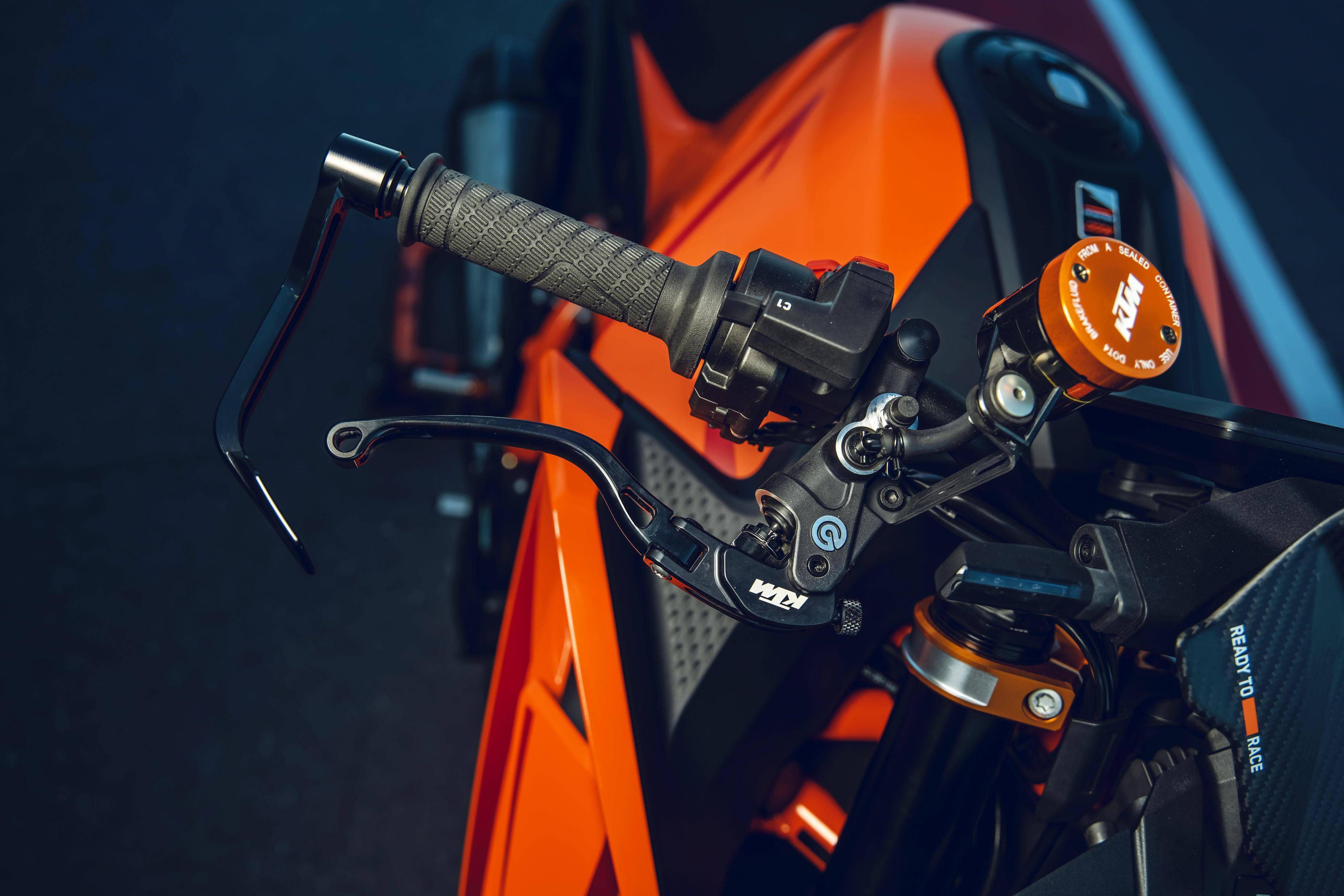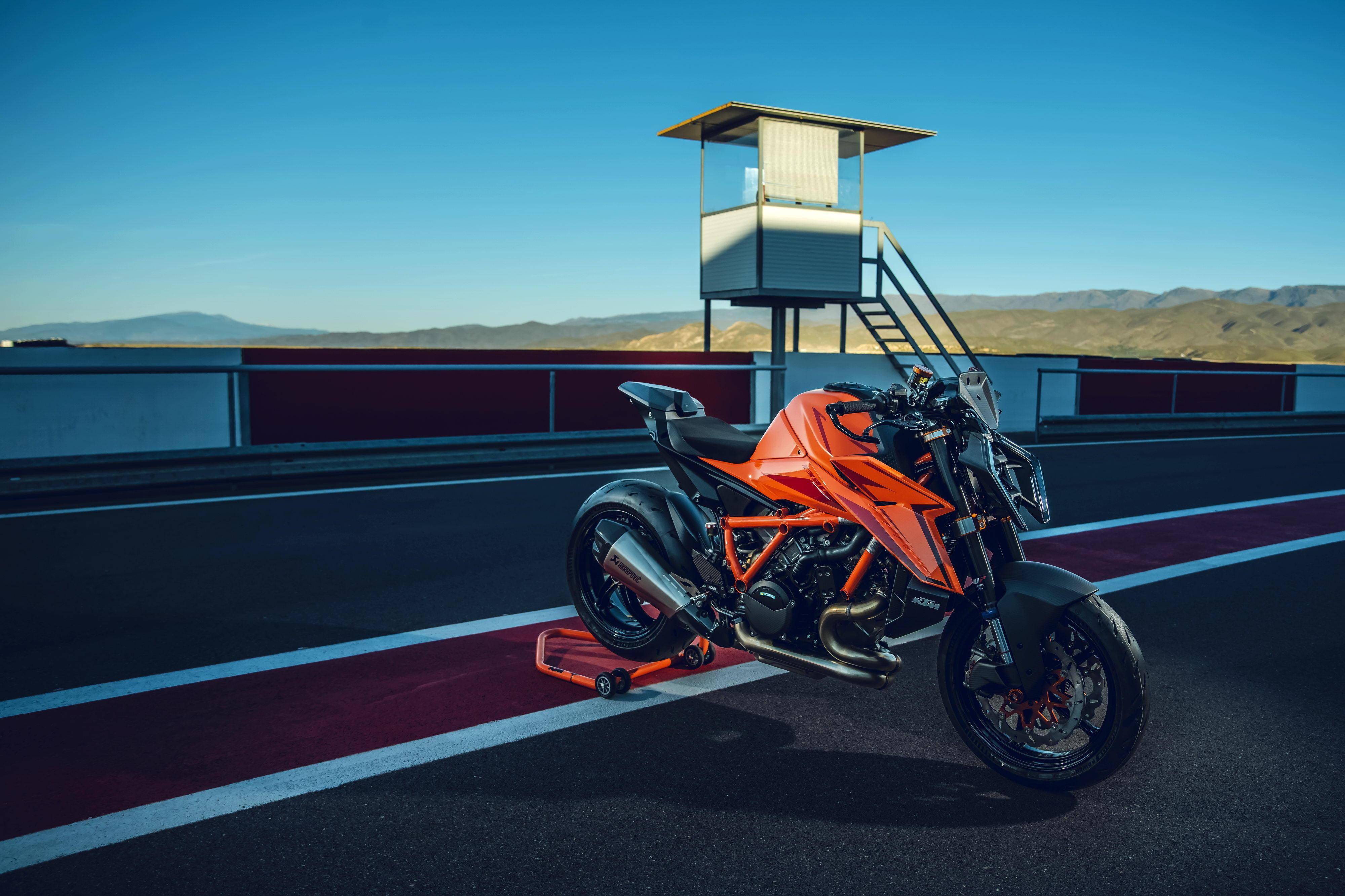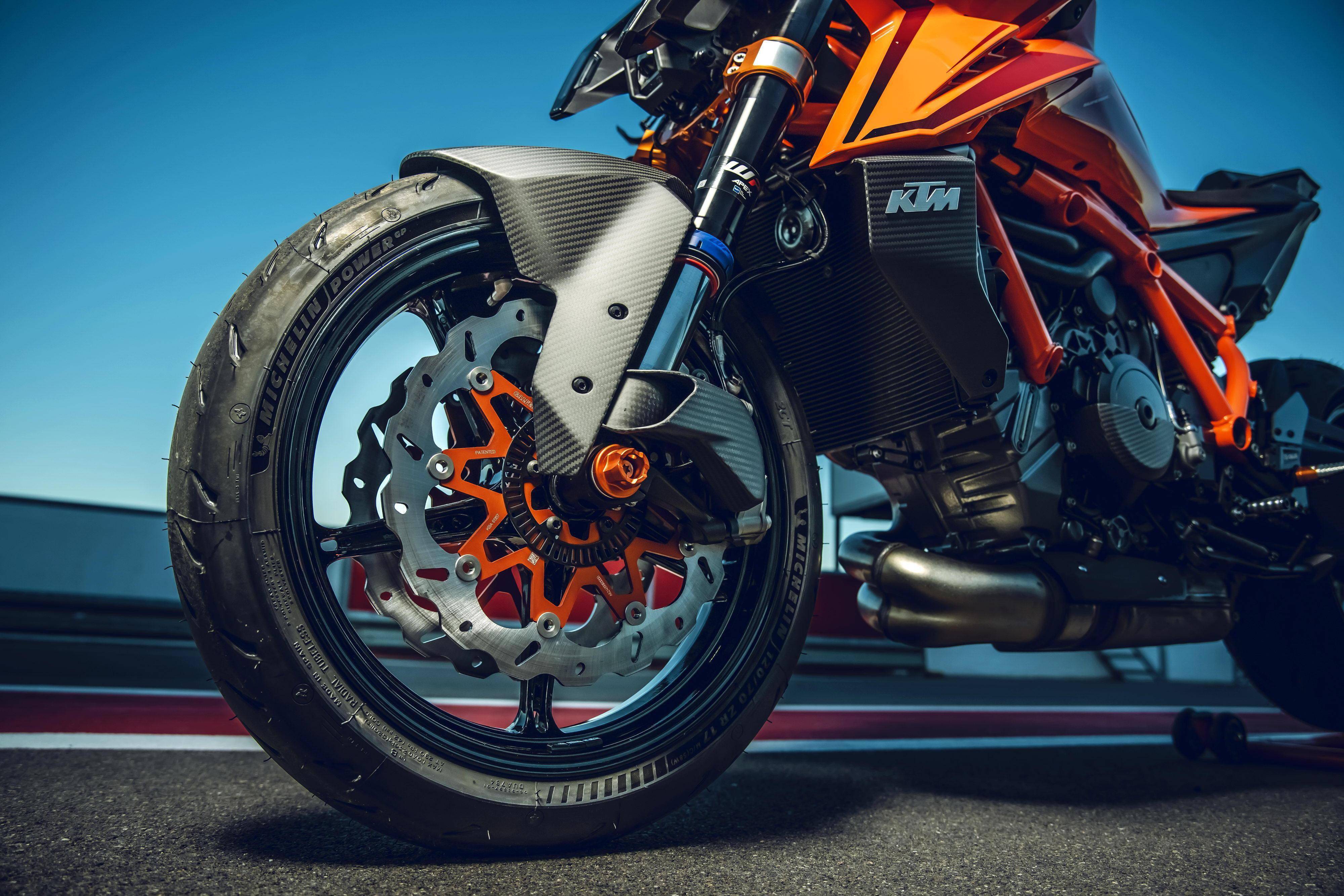 車體采用一副鋼管式的車架、后單搖臂,全新設(shè)計(jì)的外觀造型、采用了一個(gè)較低的整體輪廓,風(fēng)格上有著外星人印象的全新 LED 前大燈,讓新車展現(xiàn)更多的肌肉感、鋒利感的車體兩側(cè)翼子板,一體化設(shè)計(jì)的定風(fēng)翼;經(jīng)過(guò)重新設(shè)計(jì)的進(jìn)氣口和空氣濾清器,容量更大(從 1290 的 16 公升提高至現(xiàn)在的 17.5 公升)的油箱;電子控制系統(tǒng)方面,標(biāo)配了三個(gè)可選的騎行模式、額外選裝的 Performance 高性能模式和 Track 賽道模式,屬于選裝的發(fā)動(dòng)機(jī)控制,防車輪打滑模式。