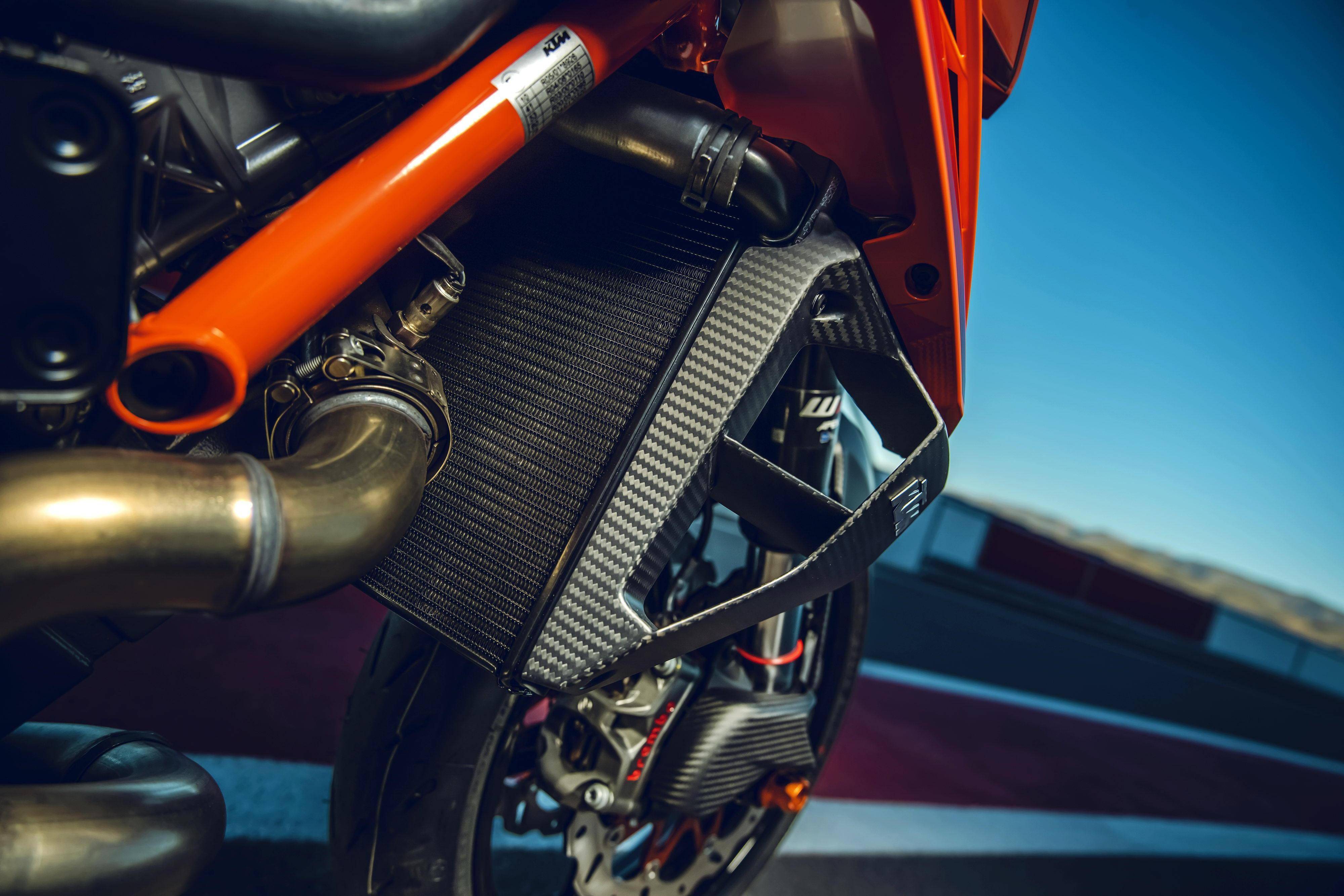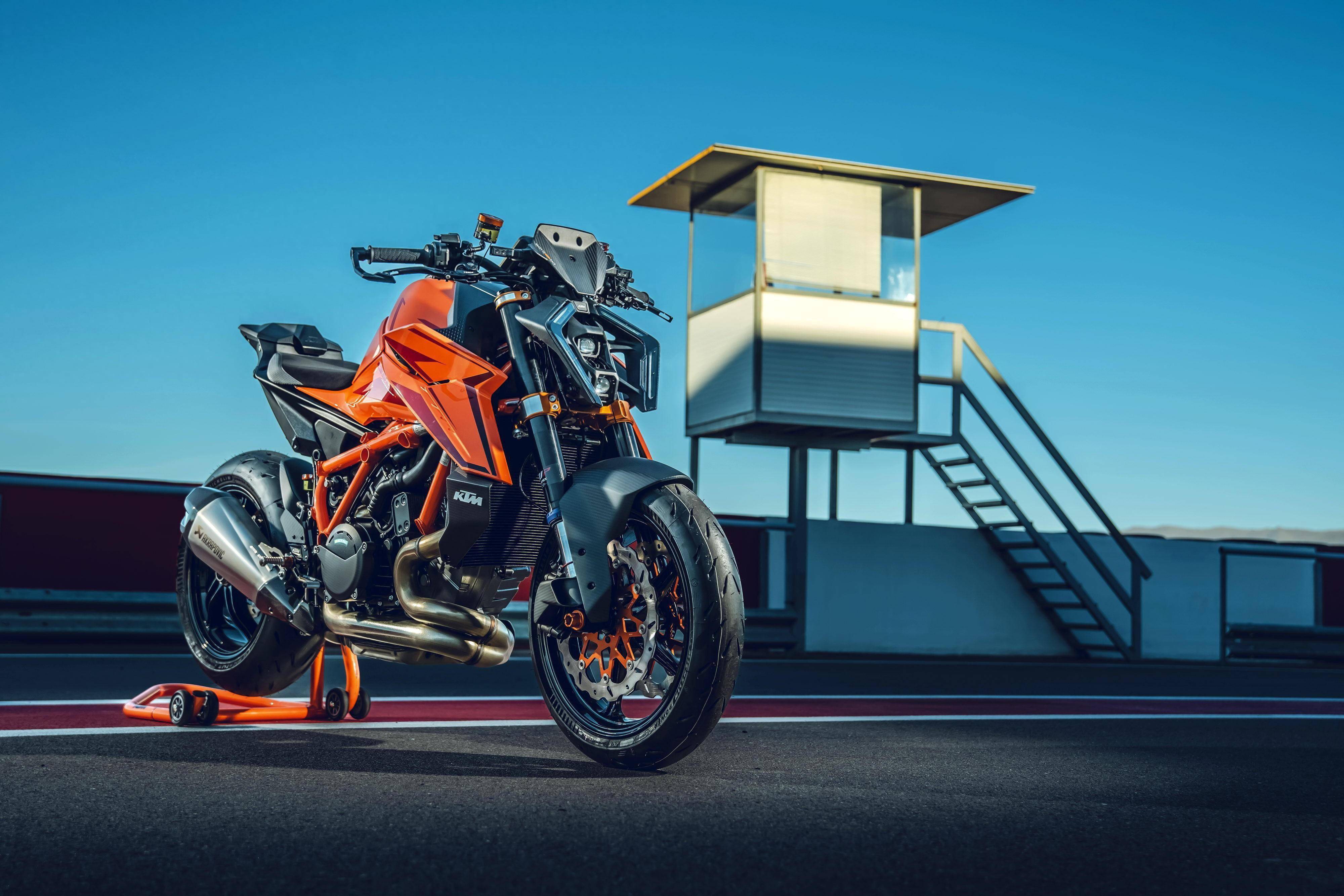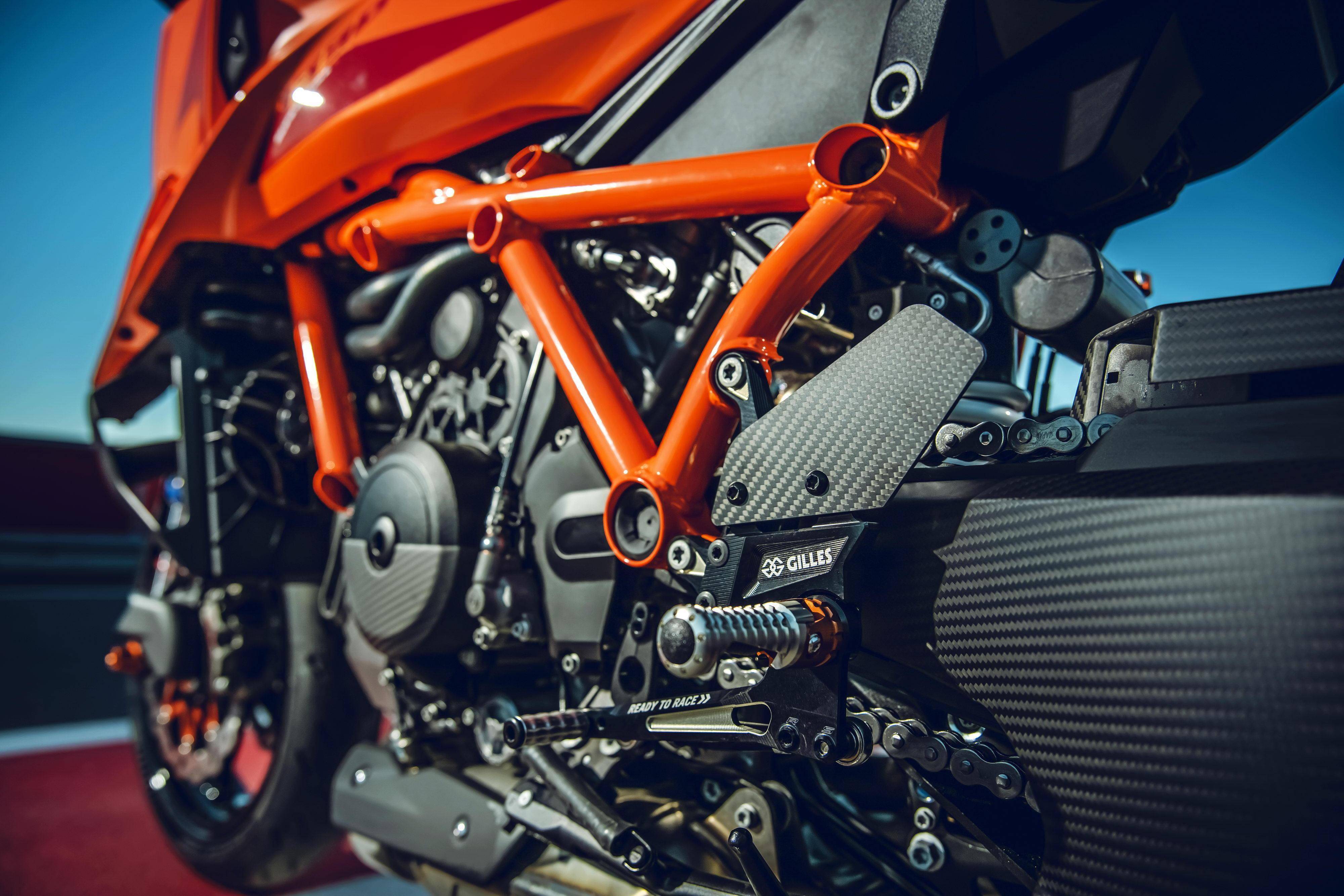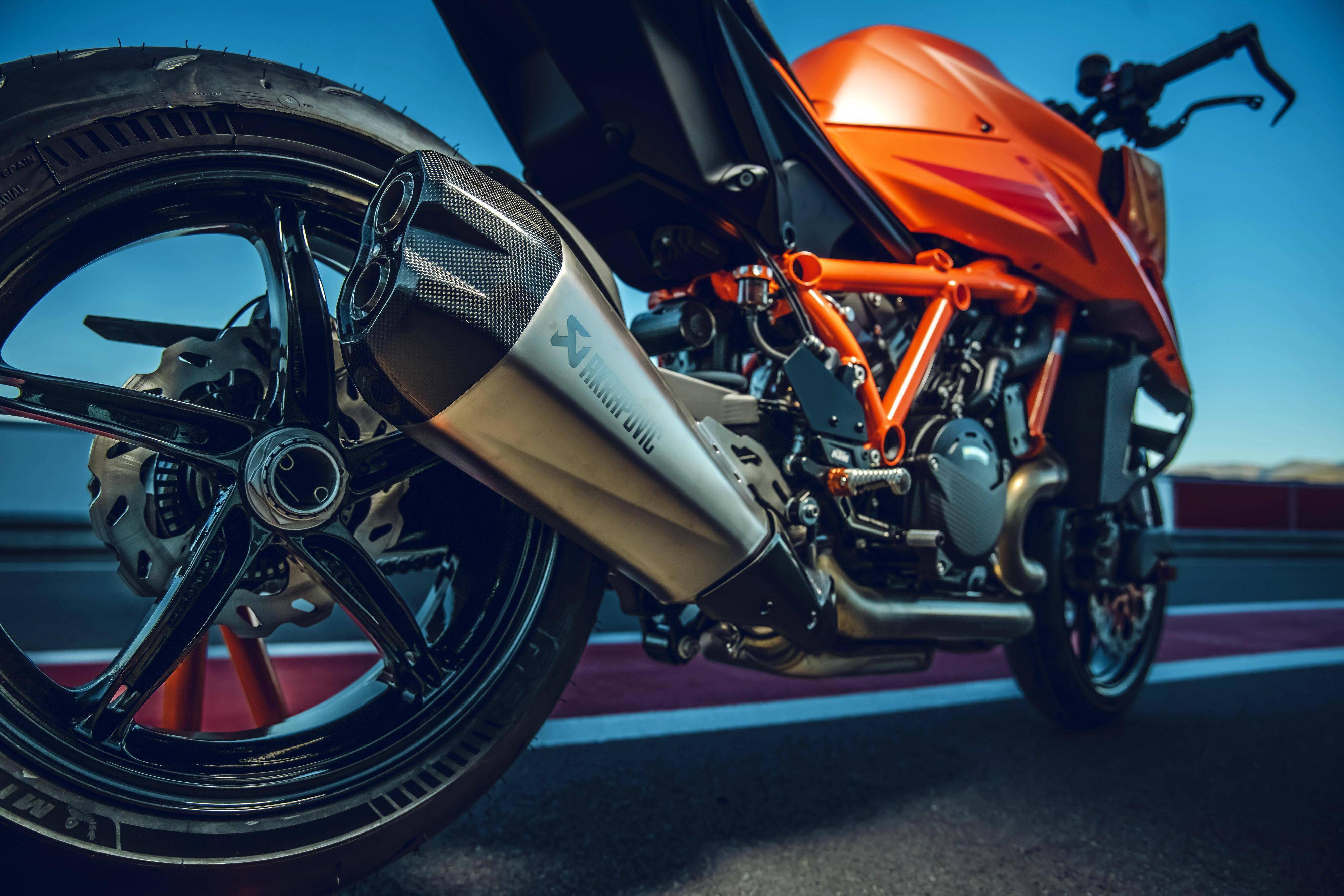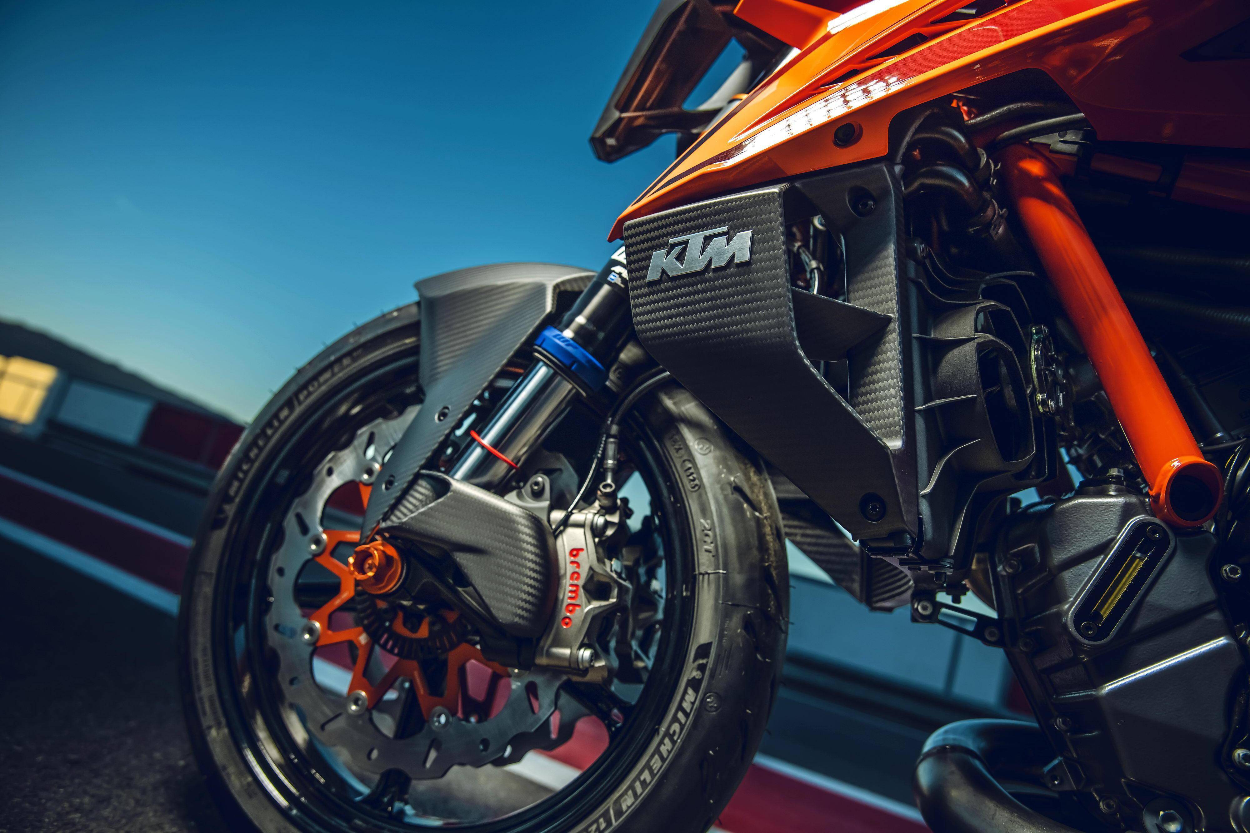 車體采用一副鋼管式的車架、后單搖臂,全新設(shè)計(jì)的外觀造型、采用了一個(gè)較低的整體輪廓,風(fēng)格上有著外星人印象的全新 LED 前大燈,讓新車展現(xiàn)更多的肌肉感、鋒利感的車體兩側(cè)翼子板,一體化設(shè)計(jì)的定風(fēng)翼;經(jīng)過(guò)重新設(shè)計(jì)的進(jìn)氣口和空氣濾清器,容量更大(從 1290 的 16 公升提高至現(xiàn)在的 17.5 公升)的油箱;電子控制系統(tǒng)方面,標(biāo)配了三個(gè)可選的騎行模式、額外選裝的 Performance 高性能模式和 Track 賽道模式,屬于選裝的發(fā)動(dòng)機(jī)控制,防車輪打滑模式。