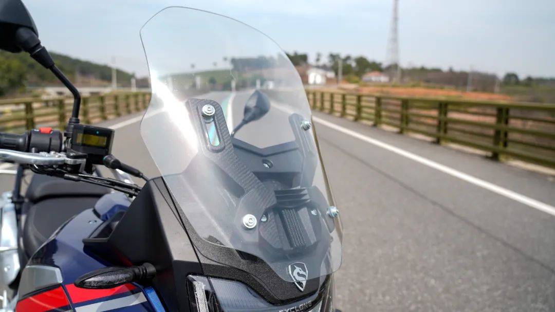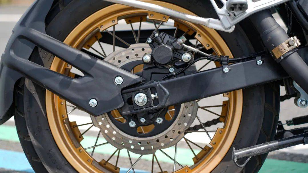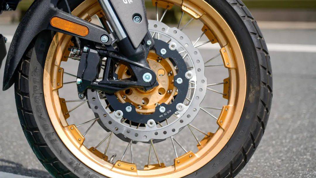 針對越野能力的強化,RX600采用了前110/80-R19后150/70-R17的多功能龜背胎,搭配鋁合金輻條式真空胎,使得整車的離地間隙來到了180mm,高位排氣的設(shè)計,大大提高了通過性,發(fā)動機底護(hù)板以及側(cè)護(hù)板的加持讓整車抗沖擊性能進(jìn)一步提高,同時可關(guān)閉的TC以及單獨可關(guān)閉的前后輪ABS,可以看出RX600兼顧輕度越野性能,確保騎士在野地玩的開心。針對越野路面的適配,前后避震器的設(shè)定也是用心十足,前28檔回彈阻尼可調(diào),后15檔回彈阻尼可調(diào),可以根據(jù)自身要求進(jìn)行調(diào)整,基本上能想到的細(xì)節(jié),RX600都配齊了,好評。剎車配置也是超越同級,前對向四活塞徑向卡鉗配合320mm浮動剎車盤,后剎車是單活塞配合260mm剎車盤,雖然沒有標(biāo)注品牌,但硬件配置非常不錯,實測制動成績也良好以上,同時ABS+TC雙重保證,安全性上無需多慮。值得一提的是RX600上這套風(fēng)擋,支持手動2檔可調(diào)節(jié),在我們動態(tài)測試高速狀態(tài)下,將氣流隔絕在頭盔面罩部位,風(fēng)阻保護(hù)效果到位。
