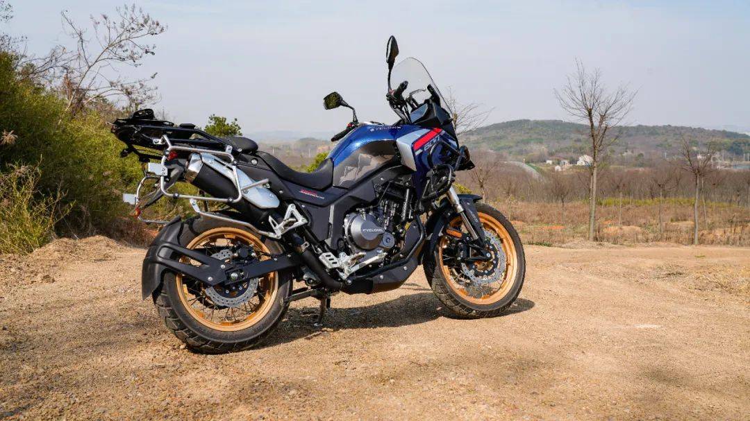 與之前RX401的家族風(fēng)格接近,RX600上這套經(jīng)典的鳥嘴設(shè)計,寬碩的油箱,雙孔的高位排氣造型,配上原車的半包式護(hù)杠,ADV車的體量感撲面而來,大氣而又硬派,尤其是今天拿到的藏地藍(lán)配色,搭配金色輻條真空輪圈,顏值到位,硬派到底的感覺。