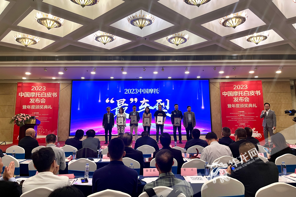 現(xiàn)場發(fā)布2023中國摩托車“最”車型并為企業(yè)代表頒獎。華龍網(wǎng)記者 吳禮霜 攝