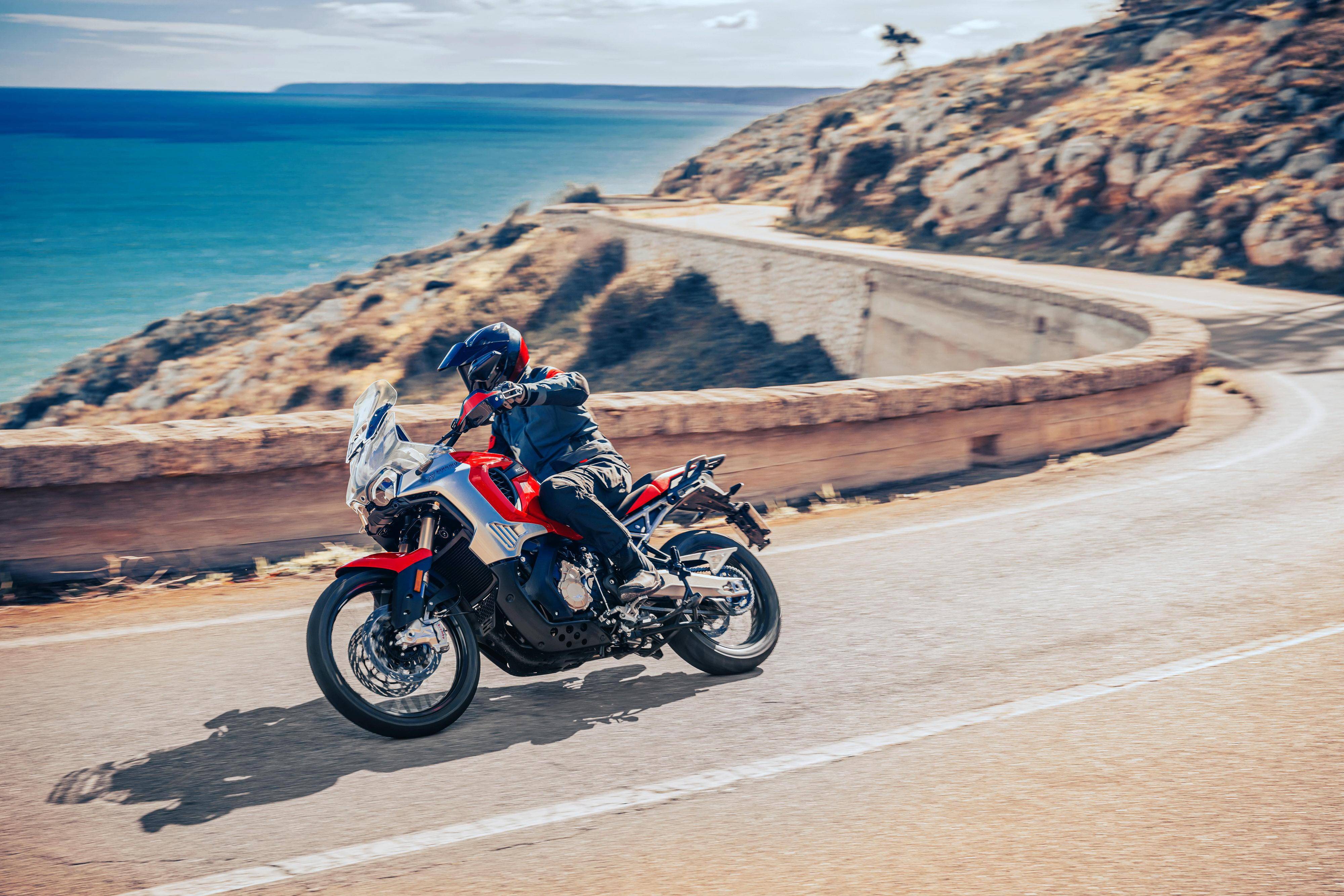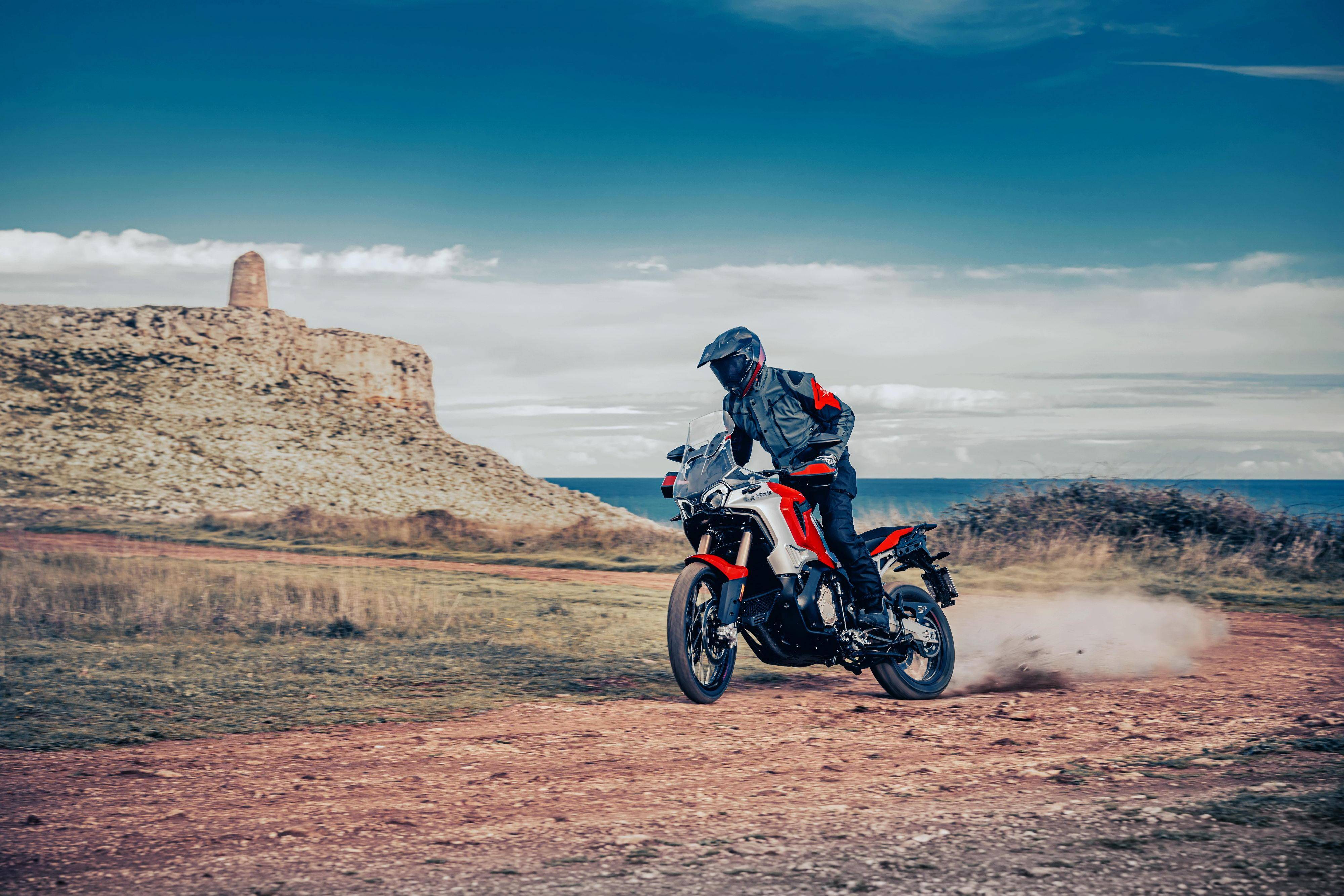 4、電子控制系統(tǒng)方面,配備了電制油門、六軸的 IMU,四種可選的騎行模式、八個級別可調(diào)的牽引力控制(五個專用于常規(guī)道路、兩個用于越野道路、一個用于雨天),兩級可調(diào)的發(fā)動機(jī)制動控制,彎道 ABS 具有 RLM(Rear Wheel Lift-Up Mitigation,減緩后輪翹起)功能,巡航控制,快速換檔系統(tǒng);