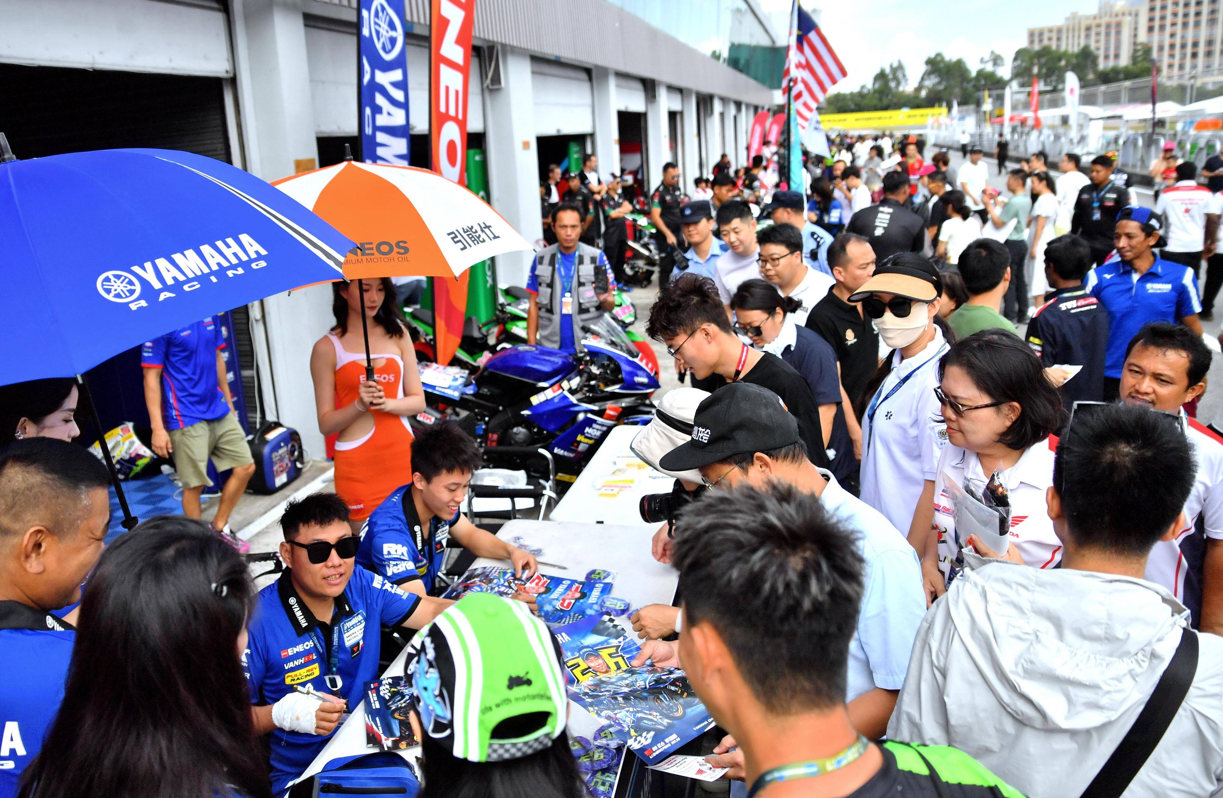 周日午前的維修區(qū)前通道開(kāi)放環(huán)節(jié),把節(jié)日的氣氛推向了另一個(gè)高潮:各車(chē)隊(duì)前的通道區(qū)域擠滿(mǎn)了愛(ài)好者和粉絲,車(chē)手的簽名、合照以及各式的車(chē)隊(duì)紀(jì)念品,成為了大家 “ 重點(diǎn)照顧 ” 的目標(biāo),絡(luò)繹不絕的人潮讓通道變得熙熙攘攘、場(chǎng)內(nèi)洋溢在一片的歡聲笑語(yǔ)中。