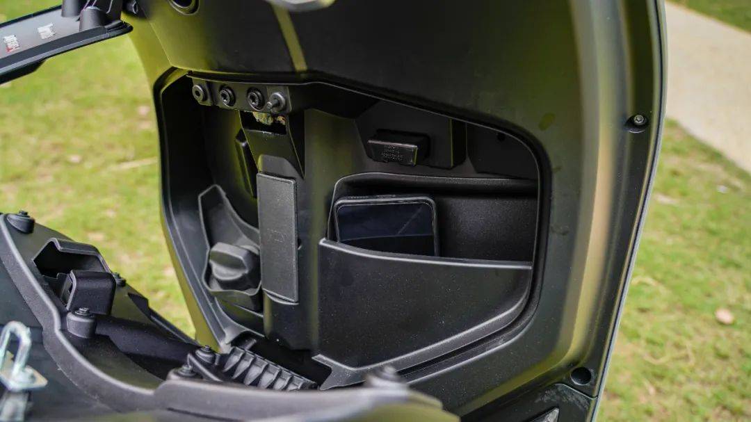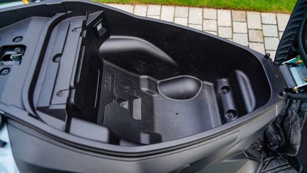 座桶空間可觀,可容納一頂3/4盔。前置油箱,容積為7.8升,容量尚可。