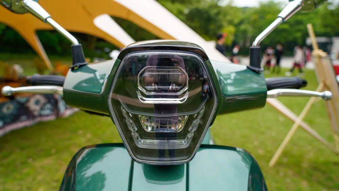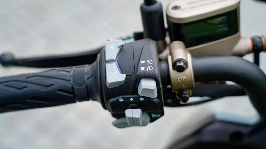 5寸TFT液晶儀表,支持手機投屏、支持胎壓顯示功能,配備了LED透鏡前大燈,以及和車頭遙相呼應(yīng)的六邊形LED車尾燈,和跨騎車一樣的外掛轉(zhuǎn)向燈。同時標(biāo)配了無鑰匙啟動、雙閃、超車燈開關(guān)。