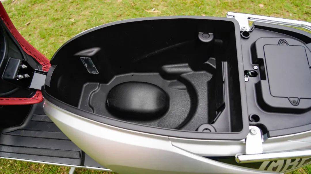 超大容量的座桶空間是U150的第三大特色,可以容納兩頂3/4盔,內(nèi)置座桶照明LED燈,這也是U150腳踏空間較小的原因,有限的車身長度都讓給了座桶。