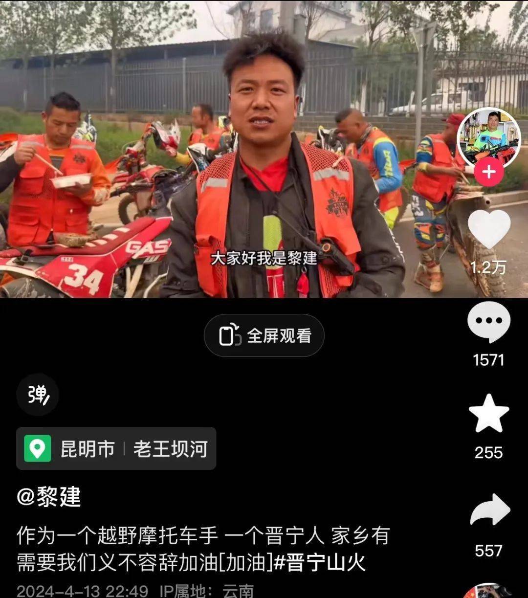 核心提示:作為一個越野摩托車手,一個晉寧人,家鄉(xiāng)有需要,我們義不容辭,加油!在云南省昆明市晉寧區(qū)二街鎮(zhèn)甸頭村委會發(fā)生森林火情一天后