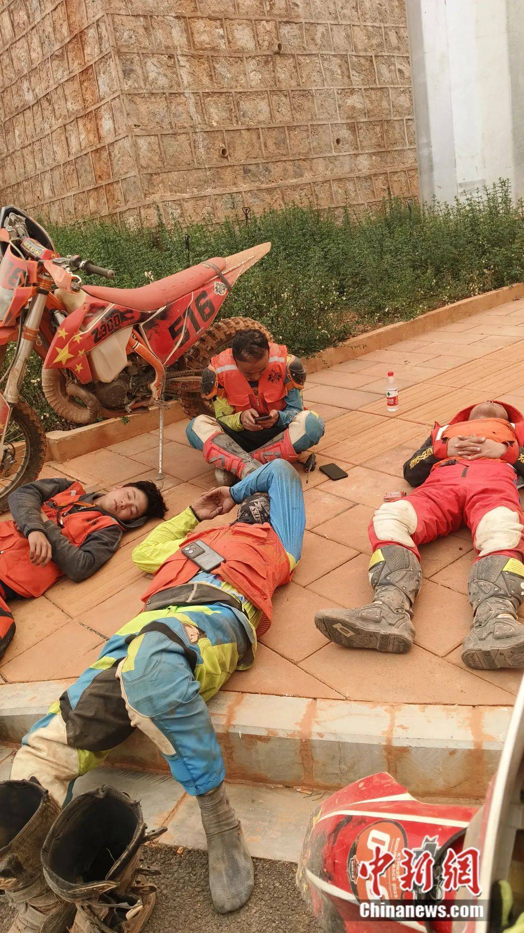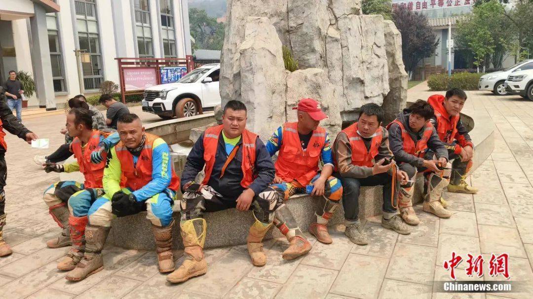 圖為摩托車志愿者在路邊休息。黎建 供圖