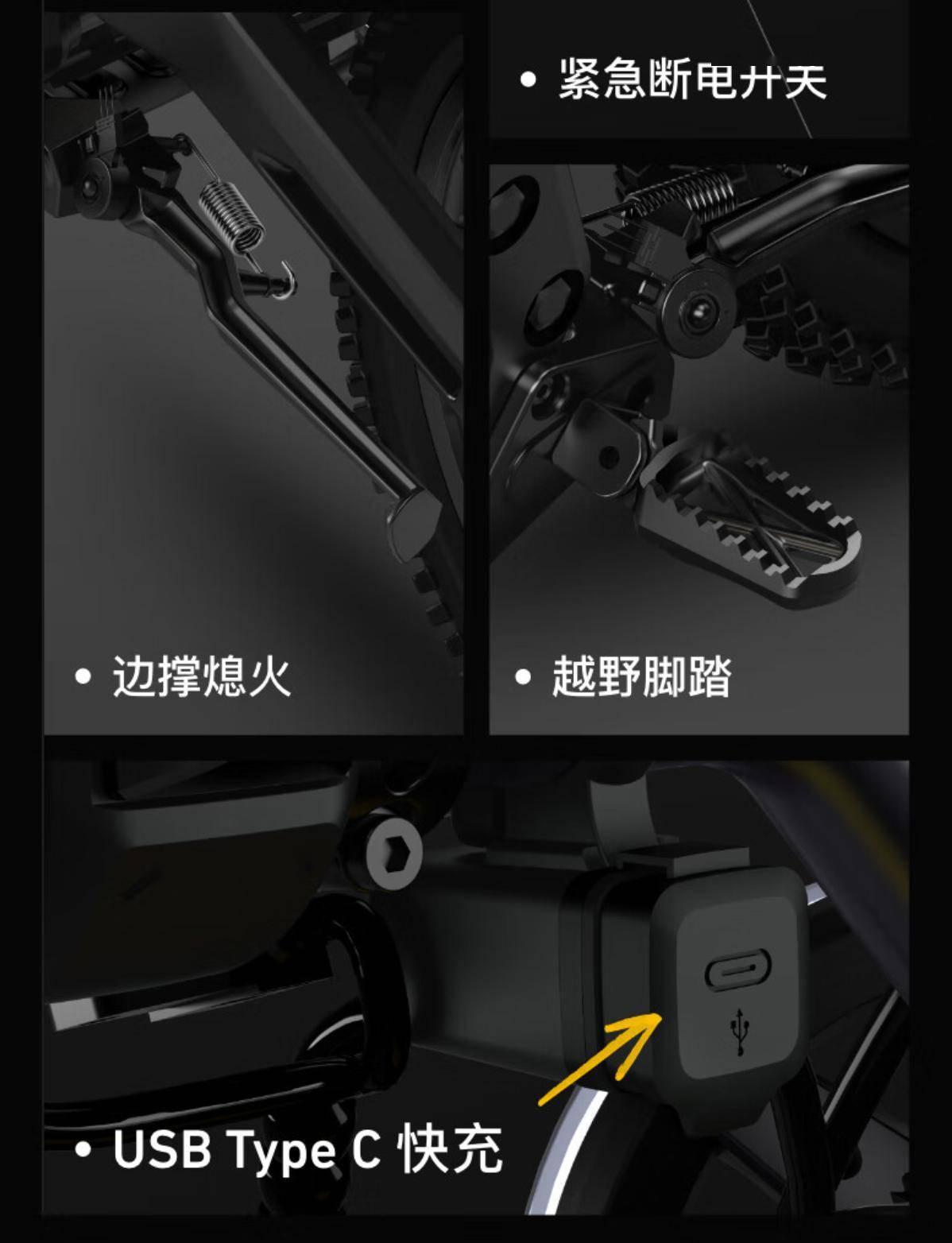 小牛 X3 為越野而設(shè)計(jì),采用拉力型防滑坐墊、天使眼大燈,并提供緊急斷電開關(guān)、邊撐熄火、越野腳踏與 USB-C 快充功能。