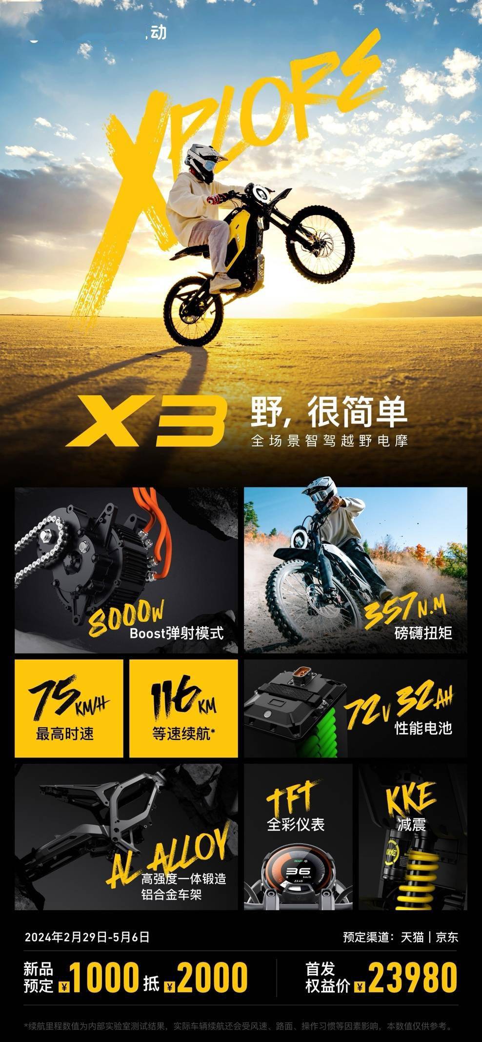 小?!叭珗?chǎng)景智駕越野電摩”X3 發(fā)布,首發(fā)價(jià) 23980 元