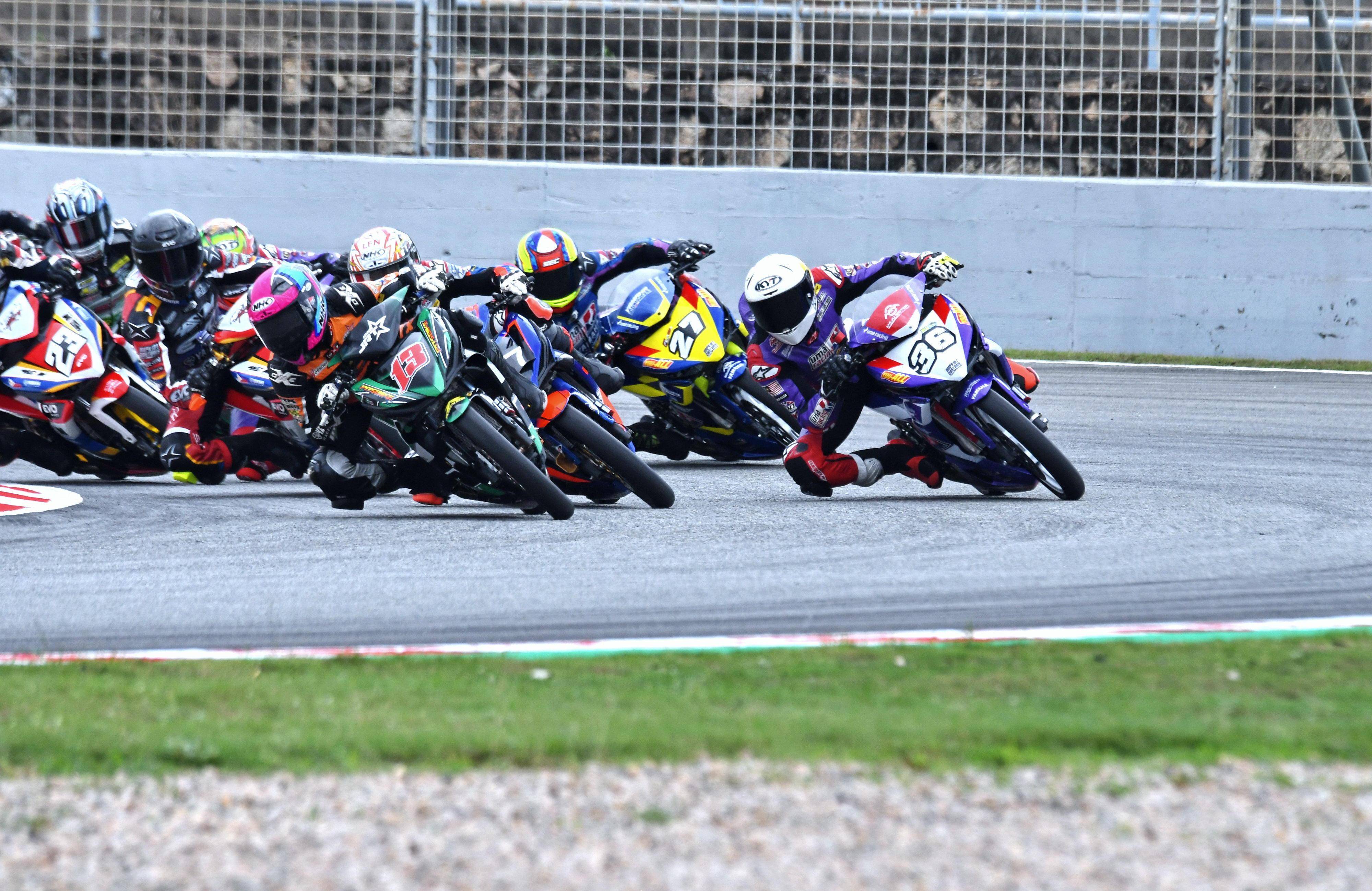 周末(四月 20 日)午后舉行的 UB150 級別第一節(jié)比賽,賽程為 6 圈。比賽在干地之下進(jìn)行,這繼續(xù)是一如既往的、一場緊張且激烈的較量,讓人眼花繚亂的無數(shù)次超越與被超越、數(shù)不清的位置變化,車手們在彎前彎后施展的渾身解數(shù),構(gòu)成了一幅又一幅的壯觀場景。