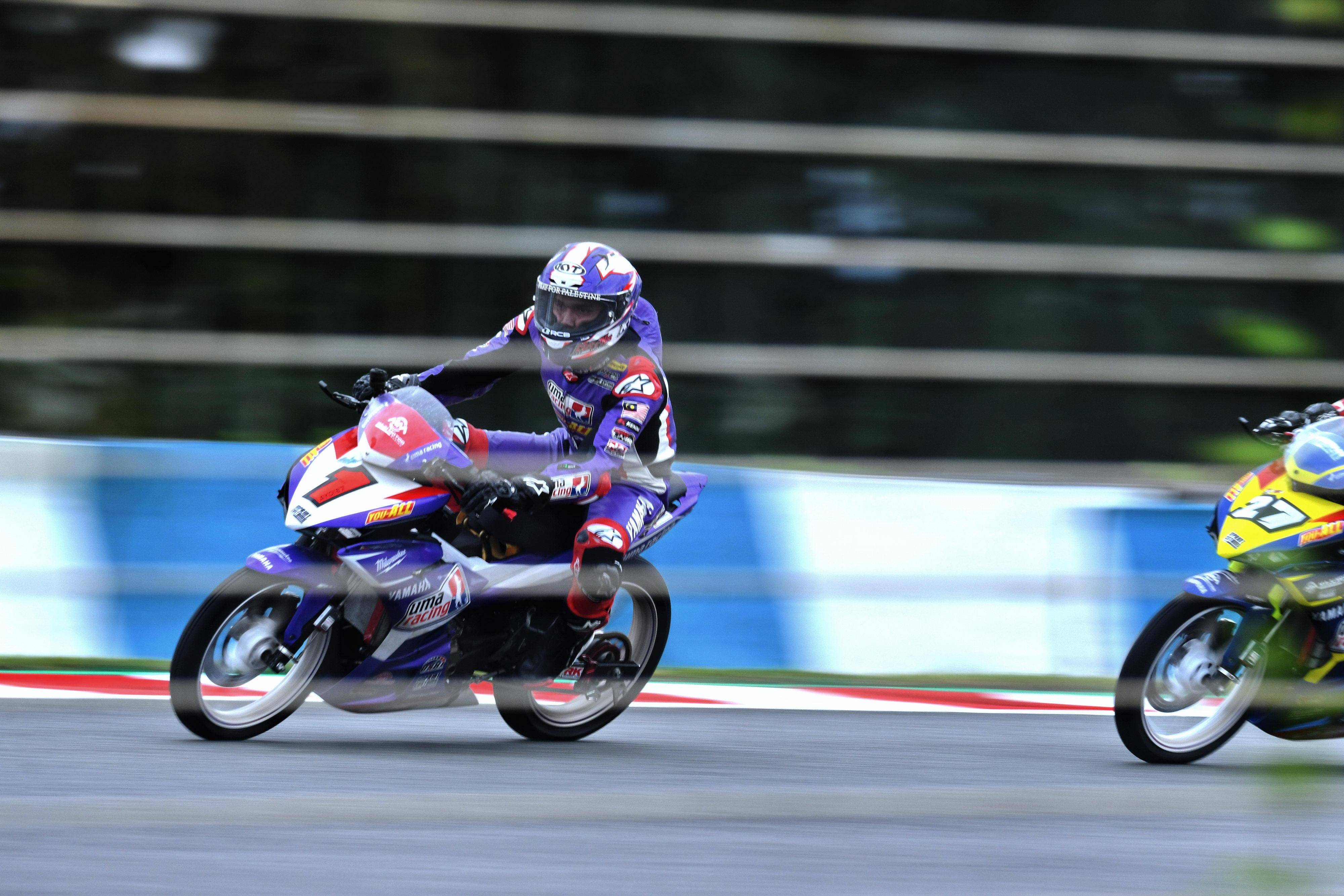 * UMA Maju Yamaha 亞洲車隊(duì),出場陣容是兩位來自馬來西亞的車手:去年的總冠軍、駕駛 1 號車的納茲魯.伊扎特(Nazirul Izzat Md Bahauddin),以及 36 號車的羅斯利(MD Syafiq Rosli);