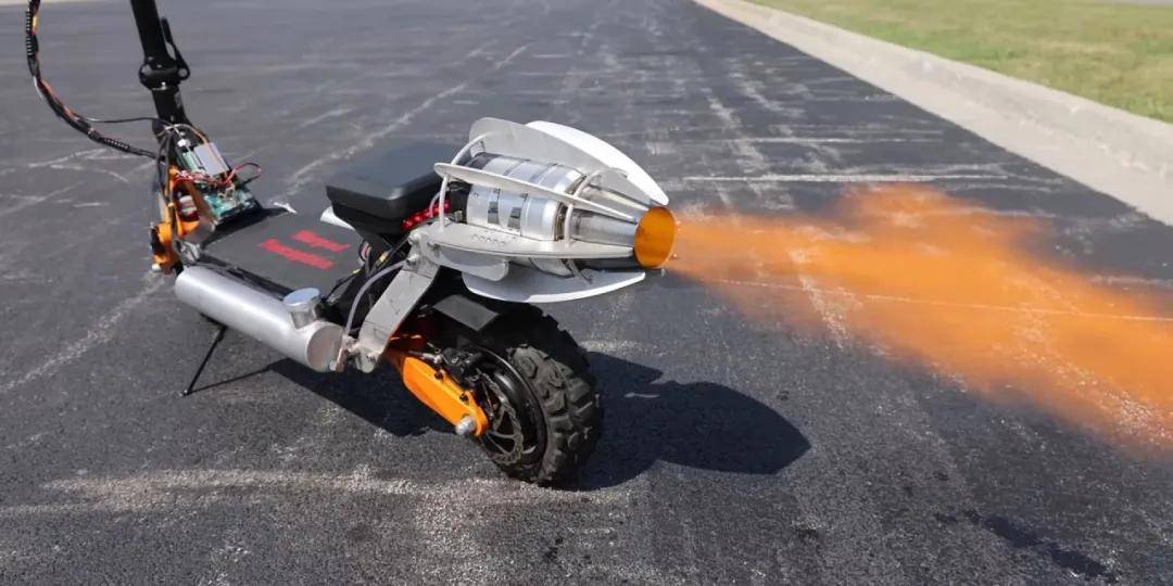 如果上述這些還不夠瘋狂的話,接下來這個是來自國外對引擎、渦輪噴射引擎熱衷的改裝達人設(shè)計的電動滑板車。