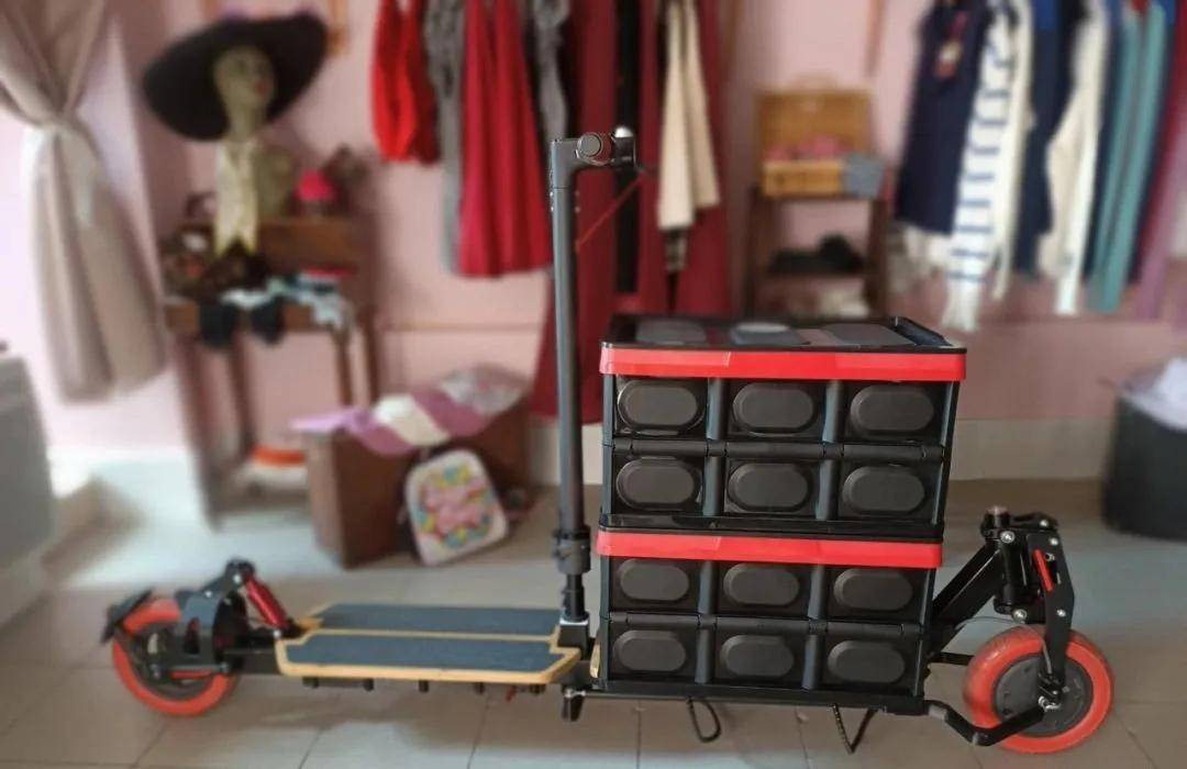 最后的是這款名叫C-Board的電動滑板車。由于安全問題的考慮,滑板車作為外賣運輸?shù)慕煌üぞ哌€是很少見的。