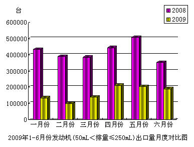 據(jù)海關(guān)提供出口統(tǒng)計(jì)數(shù)據(jù)顯示,由中國汽車工業(yè)協(xié)會(huì)編輯整理,,現(xiàn)將2009年6月份摩托車發(fā)動(dòng)機(jī)(50mL<排量≤250mL)產(chǎn)品進(jìn)出口情況分析如下: