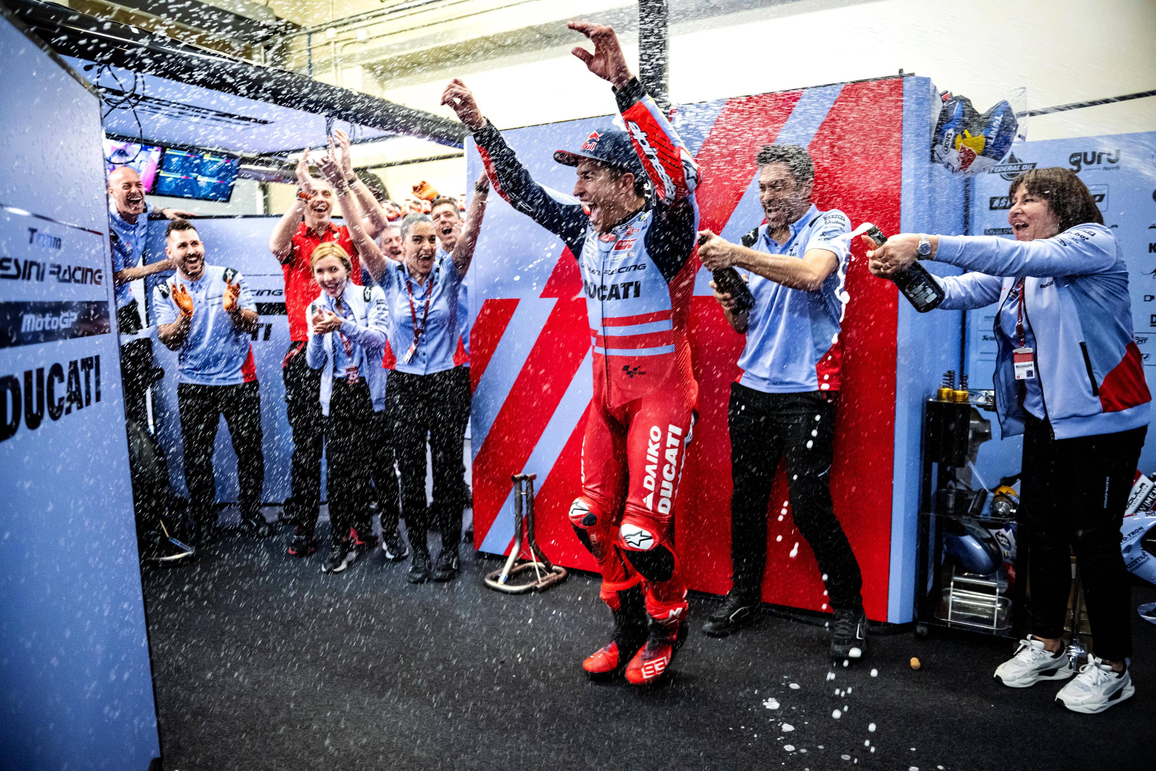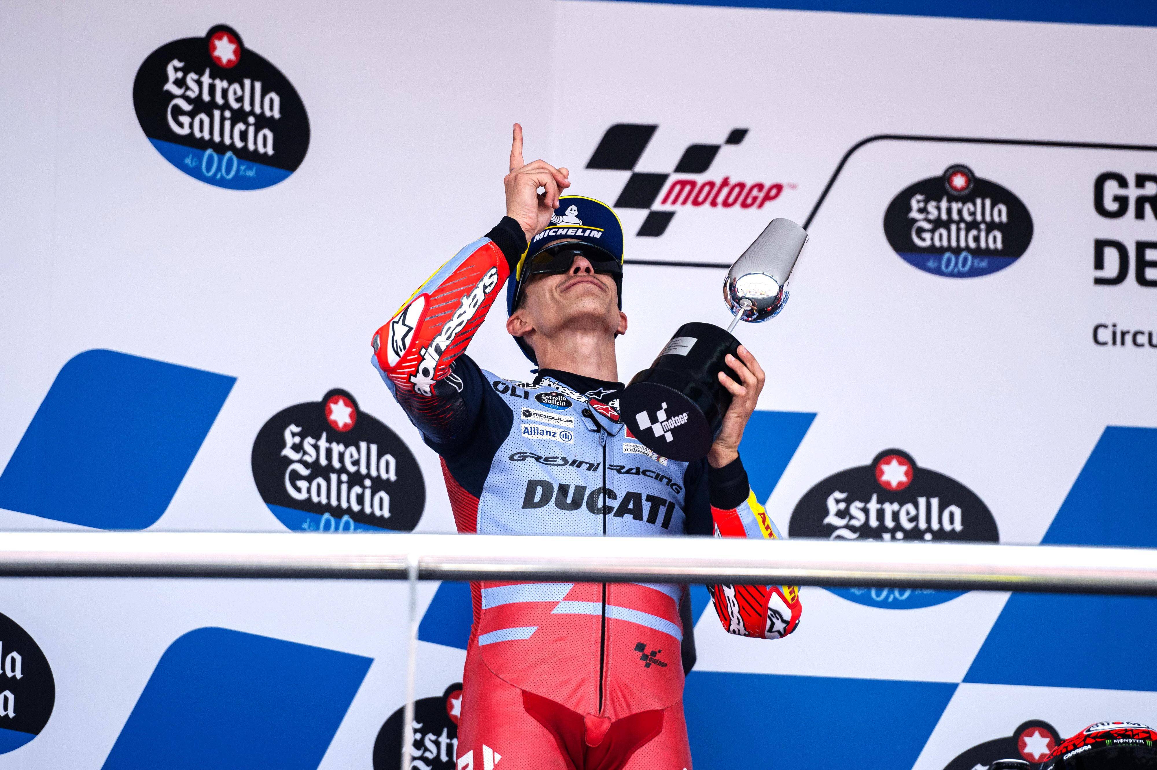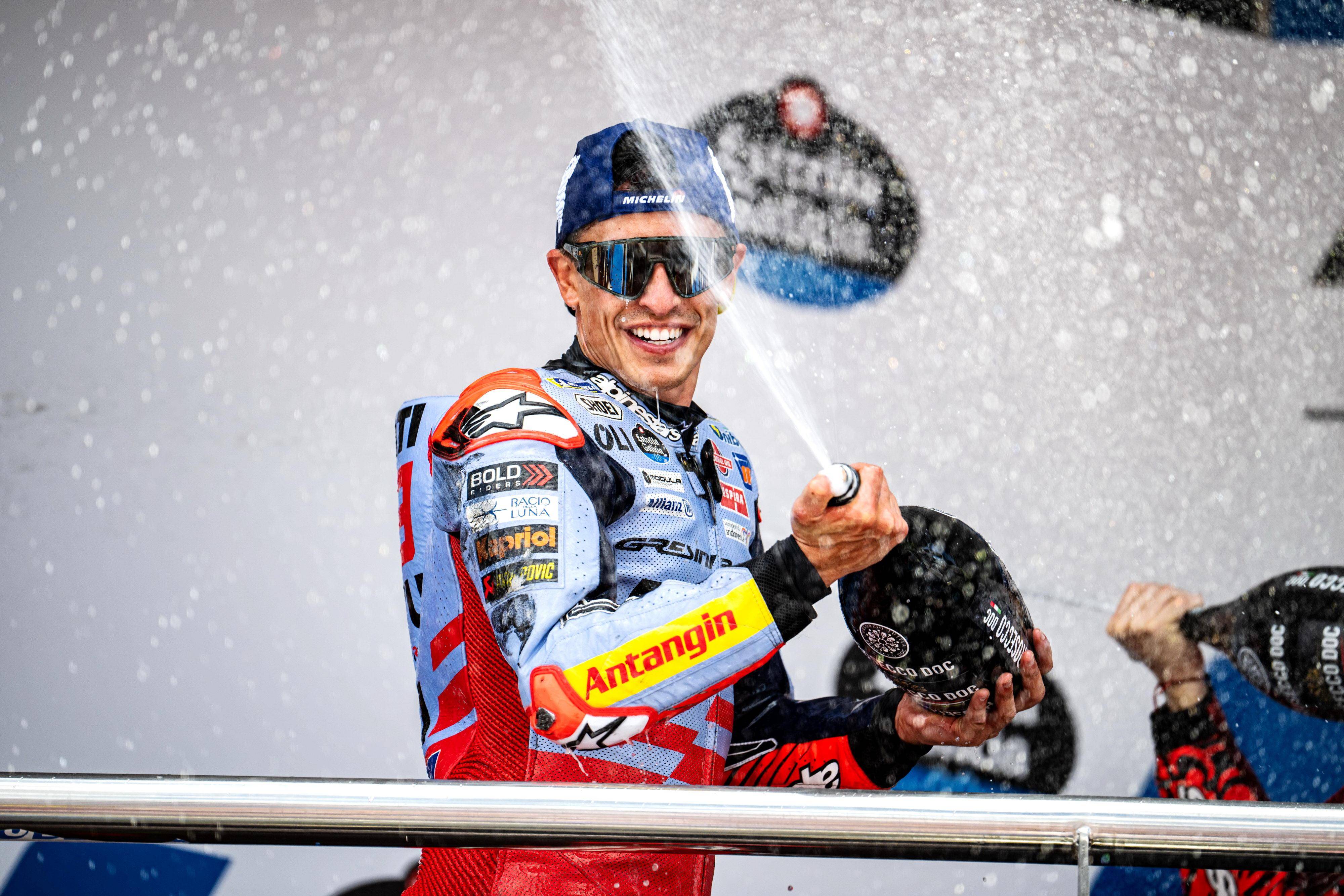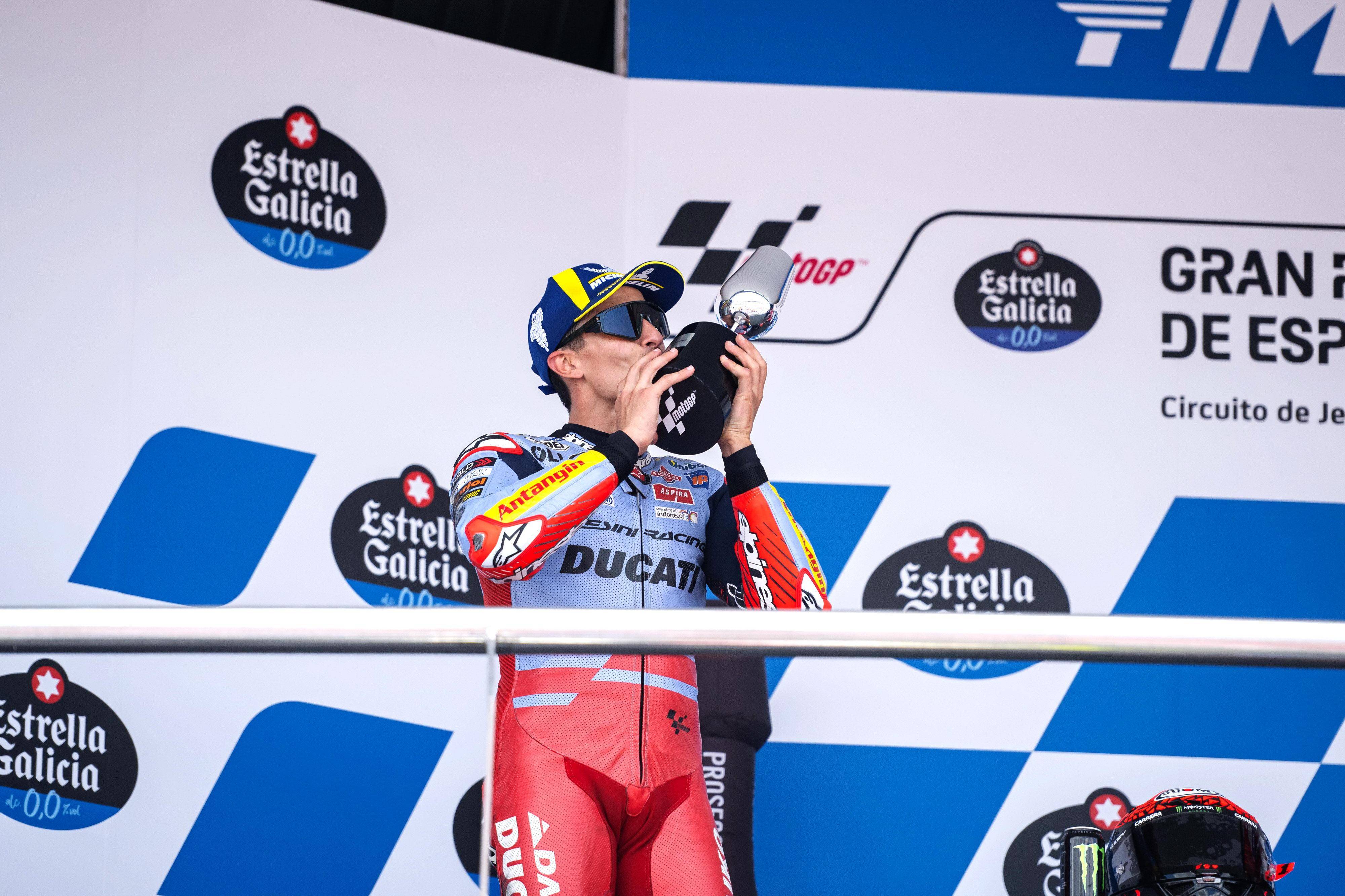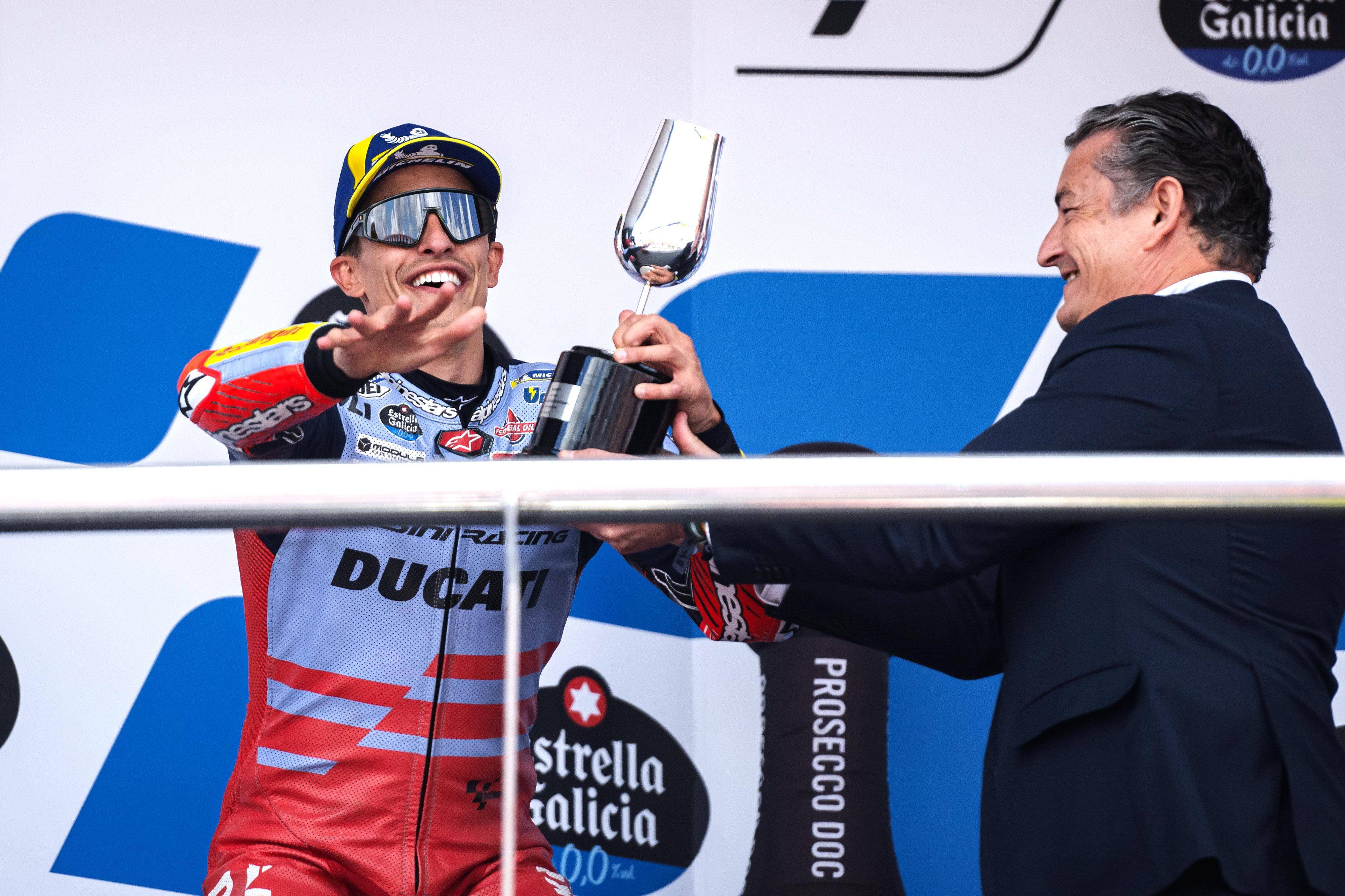 昨天周日(四月 28 日)進(jìn)行的 MotoGP 級(jí)別正賽,賽程為 25 圈、折合約 110 公里。比賽里,吉斯尼 MotoGP 車(chē)隊(duì)的兩位車(chē)手憑借著快速的節(jié)奏,始終成為了場(chǎng)內(nèi)的重要焦點(diǎn)。最終,馬昆斯奪得了亞軍,騎上 Desmosedici GP23 之后、首次登上正賽的頒獎(jiǎng)臺(tái),而小馬昆斯也奪得了第四,讓車(chē)隊(duì)在這場(chǎng)捷雷斯站的比賽里有了豐富的收獲。