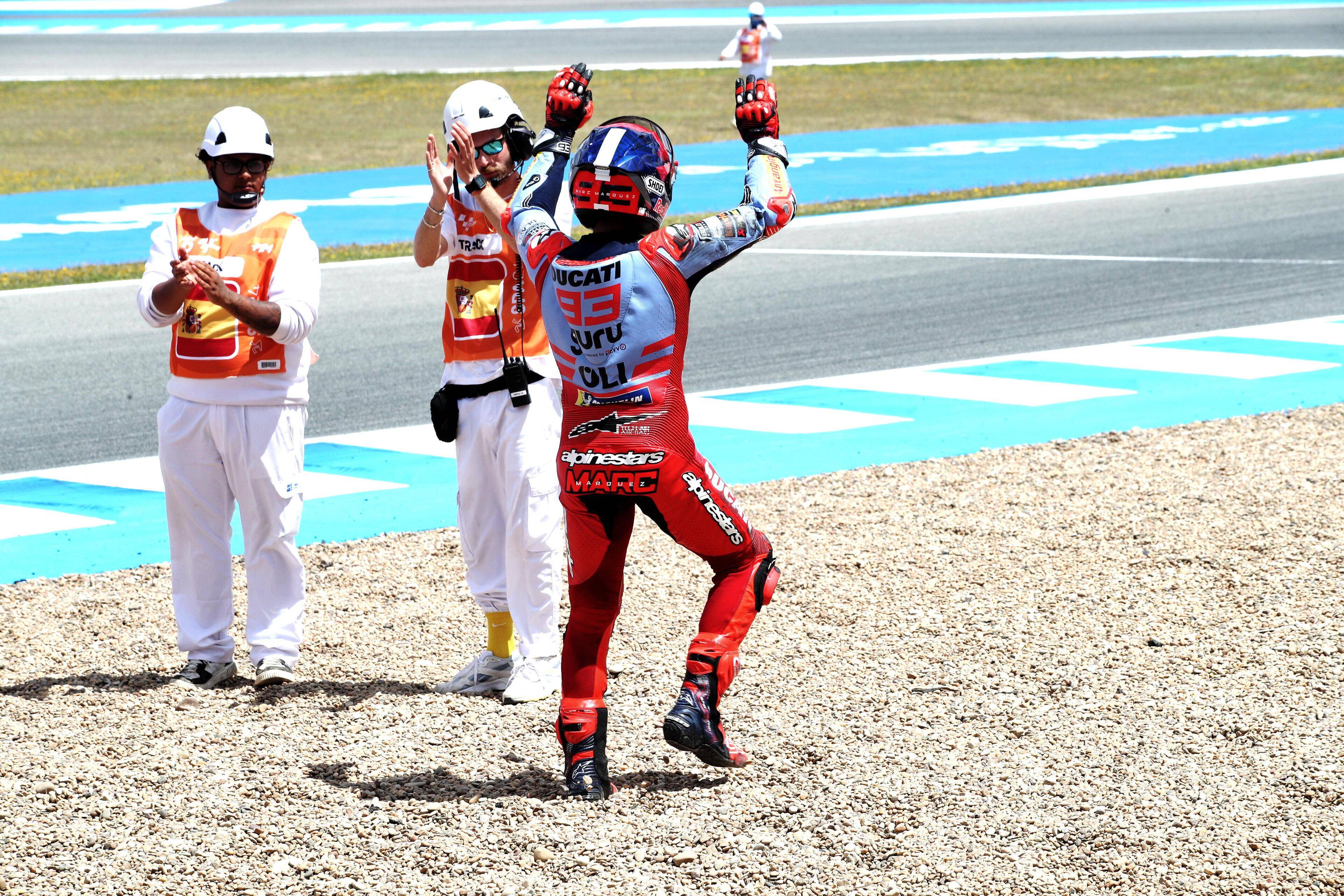 對(duì)于有著八屆世界冠軍頭銜的馬昆斯來(lái)說(shuō),捷雷斯賽道是一個(gè)讓他感觸良多的地方:在他十多年的 WGP 職業(yè)生涯中,馬昆斯在這里奪得過(guò)四次分站冠軍(2012 Moto2 級(jí)別,2014、2018、2019 的 MotoGP),三次亞軍(2013、2015、2017 年)和一次第三(2016 年),而職業(yè)生涯噩夢(mèng)開(kāi)始的地方也是這里 —— 2020 年的嚴(yán)重摔車(chē)意外,讓他在隨后的幾年時(shí)間里,競(jìng)爭(zhēng)力始終難以回到頂峰時(shí)期。