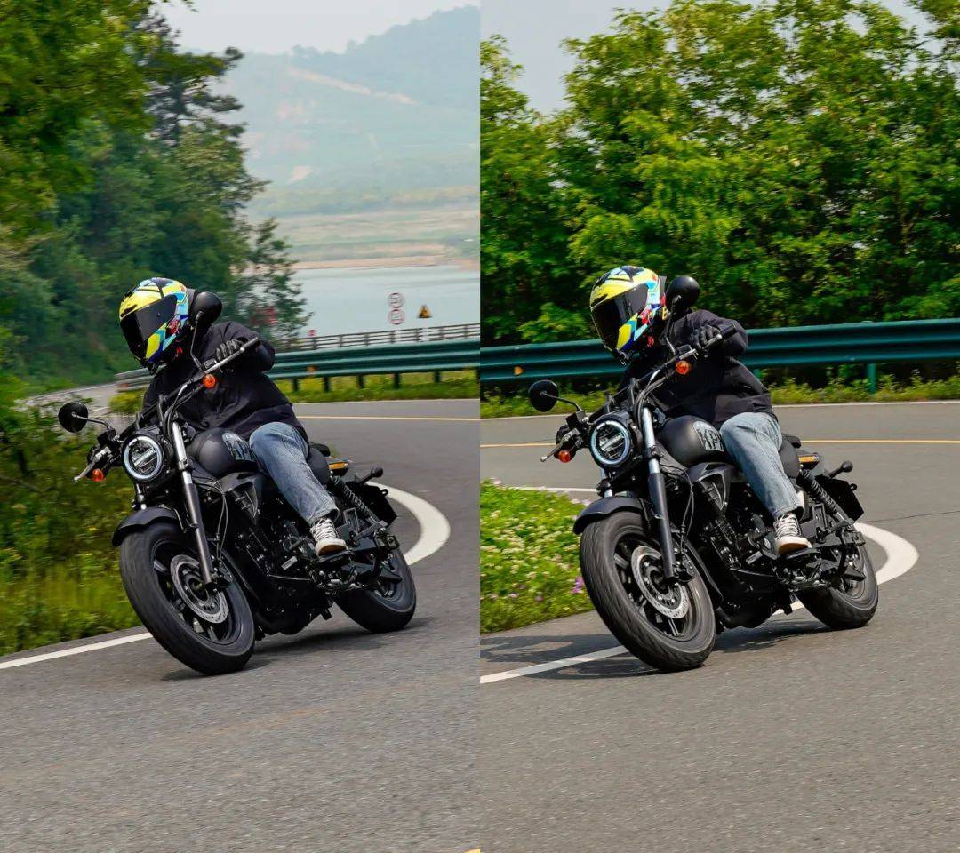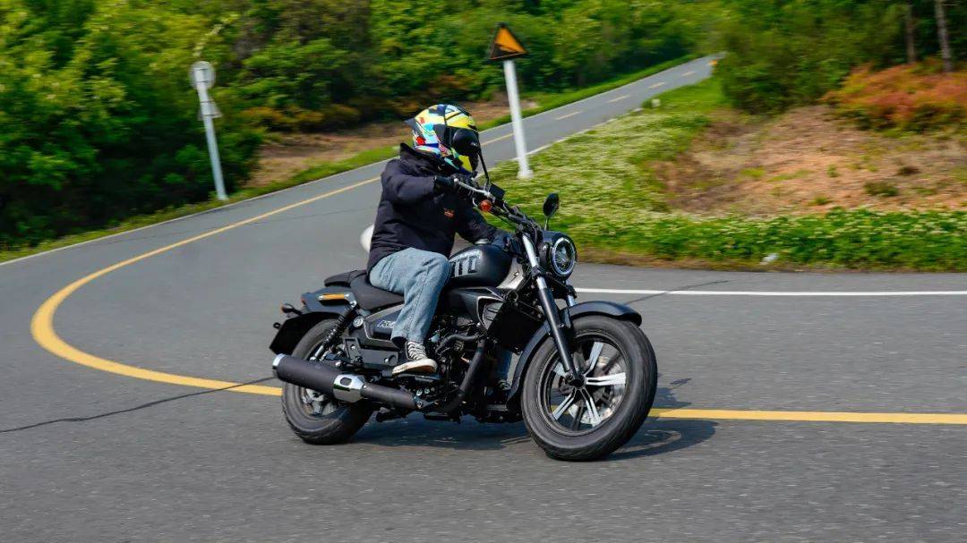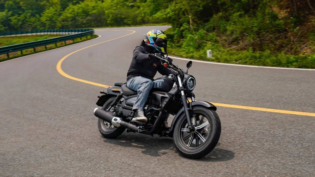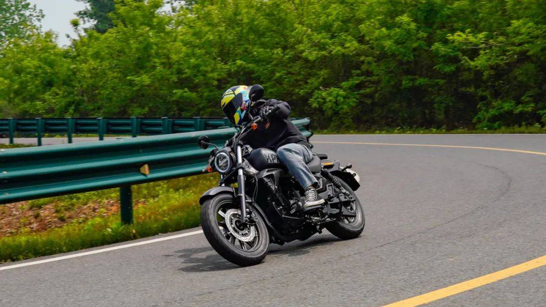 彎道方面的表現(xiàn)與之前測試的K19接近,定位于舒適性巡航,注定在彎道方面表現(xiàn)平平。在入彎前連續(xù)降檔,滑動離合器的質感輕盈,好用,原廠皮帶傳動的加持下,感受順暢,這是表現(xiàn)優(yōu)秀的部分。入彎前重剎進行速度的調整,能明顯感受到剎車力的不足,需要配合降檔位進行減速,制動的感受一般,同時在連續(xù)的左右翻身以及回頭彎中,K29的車身響應會有一定的鈍感,談不上較為迅速的傾倒,在彎中的信心一般,這也是巡航車的正常表現(xiàn)。彎道的極限屬于常規(guī)水準,在輪胎還有1指余量時,左右腳踏板就開始觸地了,好在這套多功能胎的抓地性能良好,應對不太激進的跑山,其抓地性能是足夠的,沒有出現(xiàn)打滑或是不足的狀況,按照K29的彎道特性來看,可以支持我們日常的一些彎道,但較為高速的彎道以及連續(xù)彎道,不是他的長處,這也是巡航車型的共有特性,無可非議。