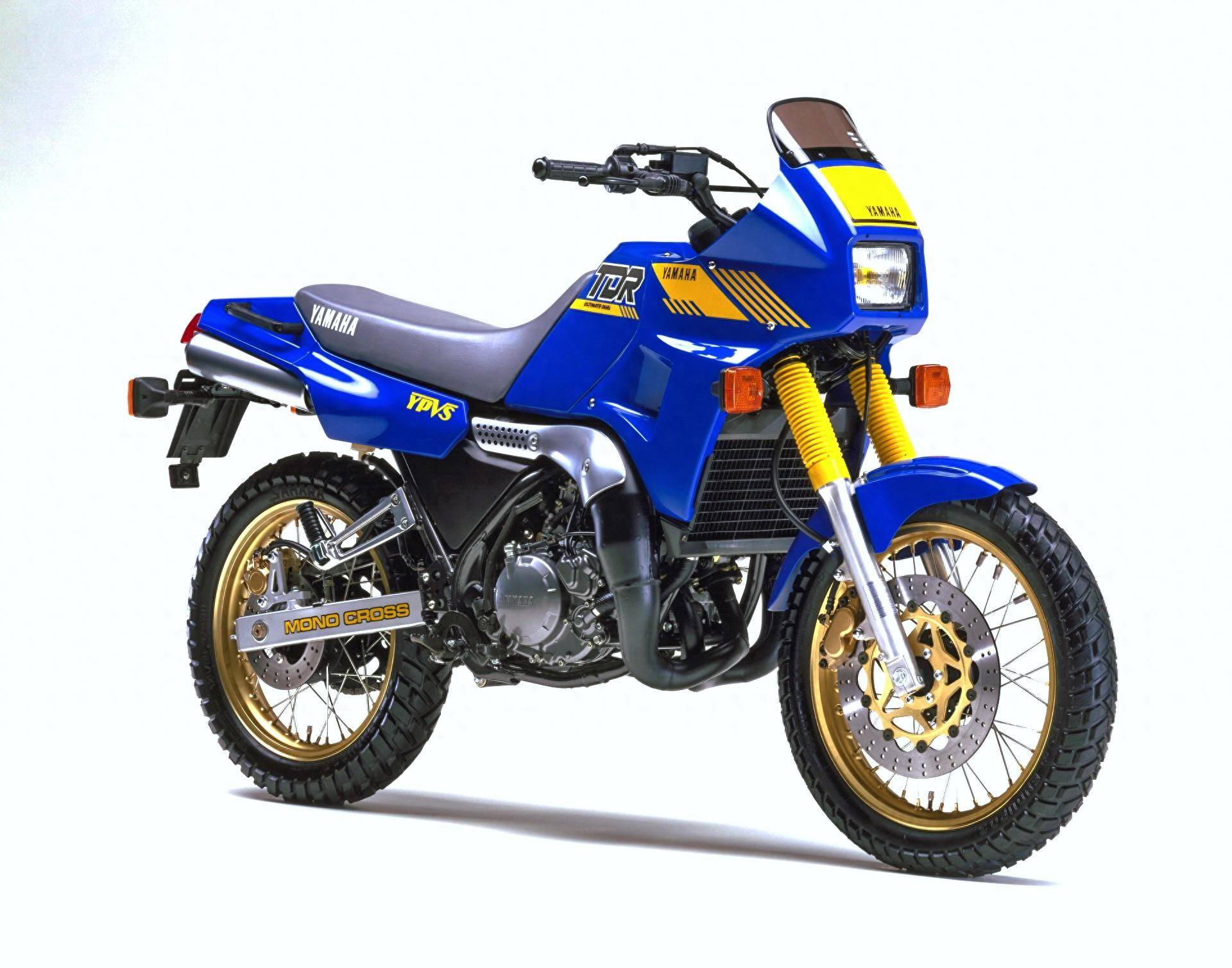 Yamaha 在 1988 年的時候,推出了當(dāng)時的 “ 跨界 ” 探險車 TDR250(工廠編號 2YK)。該車搭載一副來自 1985 TZR250 跑車的水冷兩沖程、直列兩氣缸發(fā)動機(jī),缸徑、行程為 56.4 mm x 50 mm(該規(guī)格與直列兩氣缸最終版的 1990 TZR250R/3MA 相同),排氣量 249 cc,配備了 YPVS 動力閥,最大馬力輸出 45 匹(日本本土版。歐洲和北美版,TDR250 為 46 匹、TZR250 為 50 匹)。車體采用一副鋼管制雙搖籃式的車架,前 18、后 17 英寸直徑的鋼線式車輪標(biāo)配了越野輪胎。