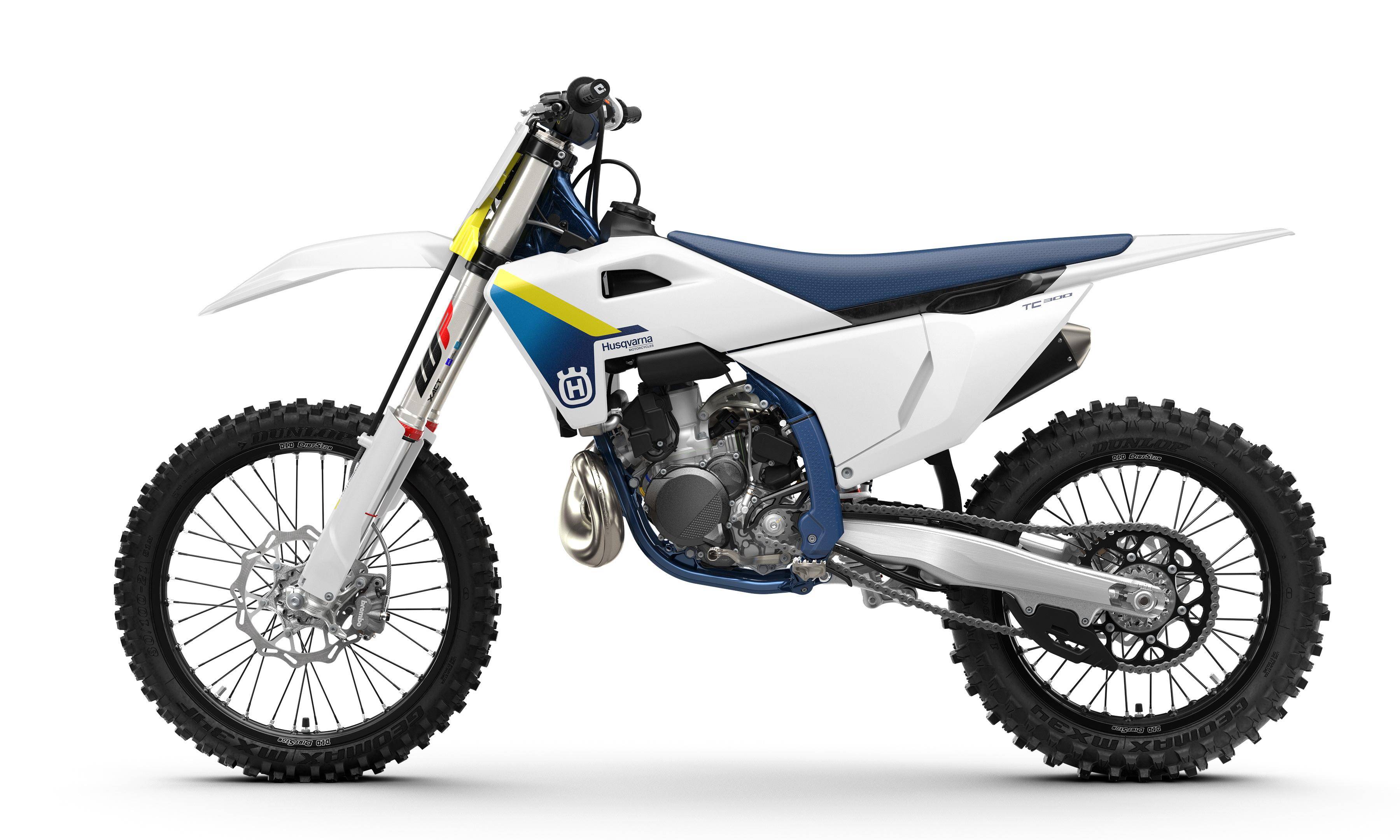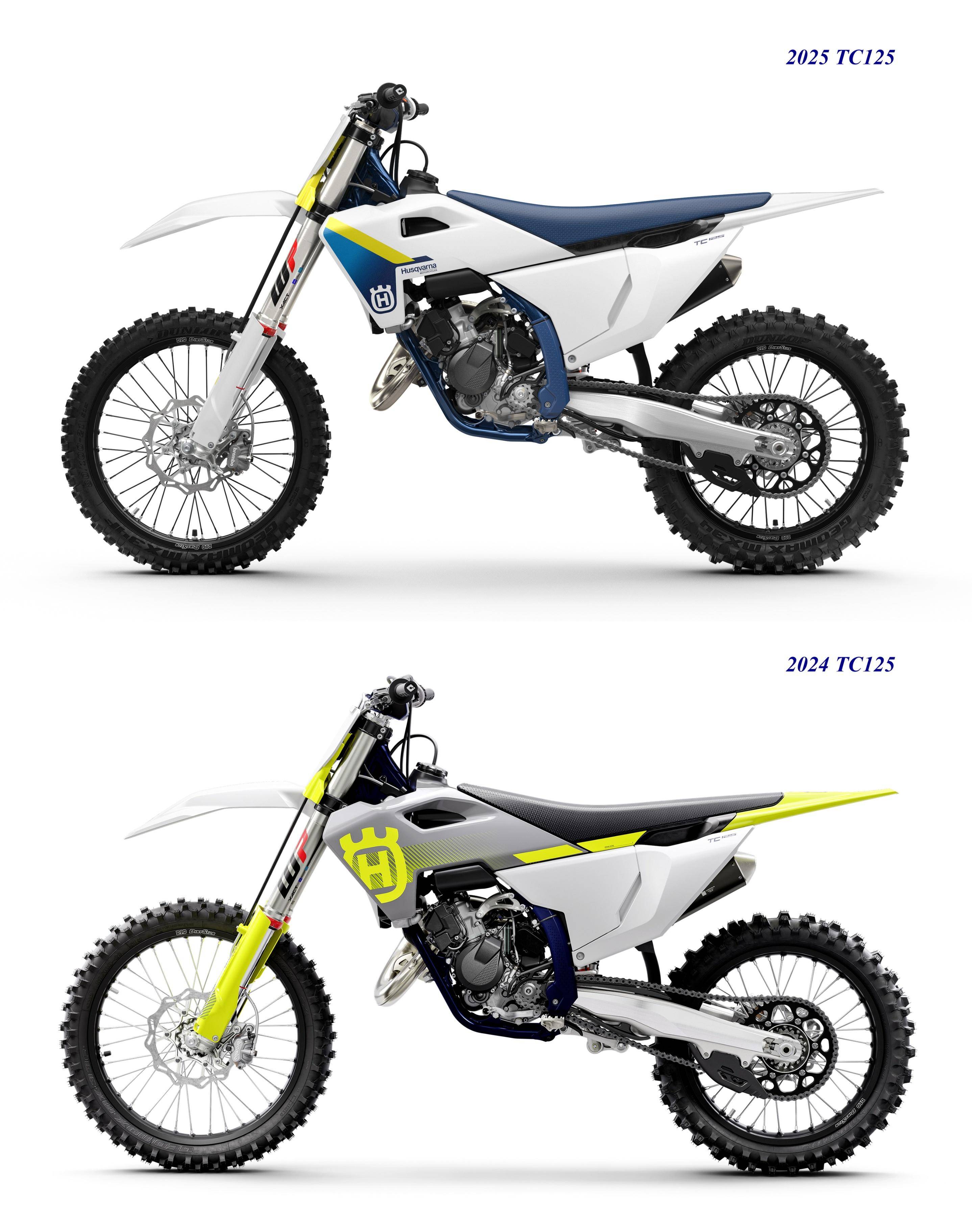 下圖:搭載兩沖程發(fā)動(dòng)機(jī)的 2025 TC 125、TC 150、TC 250 和 TC 300。