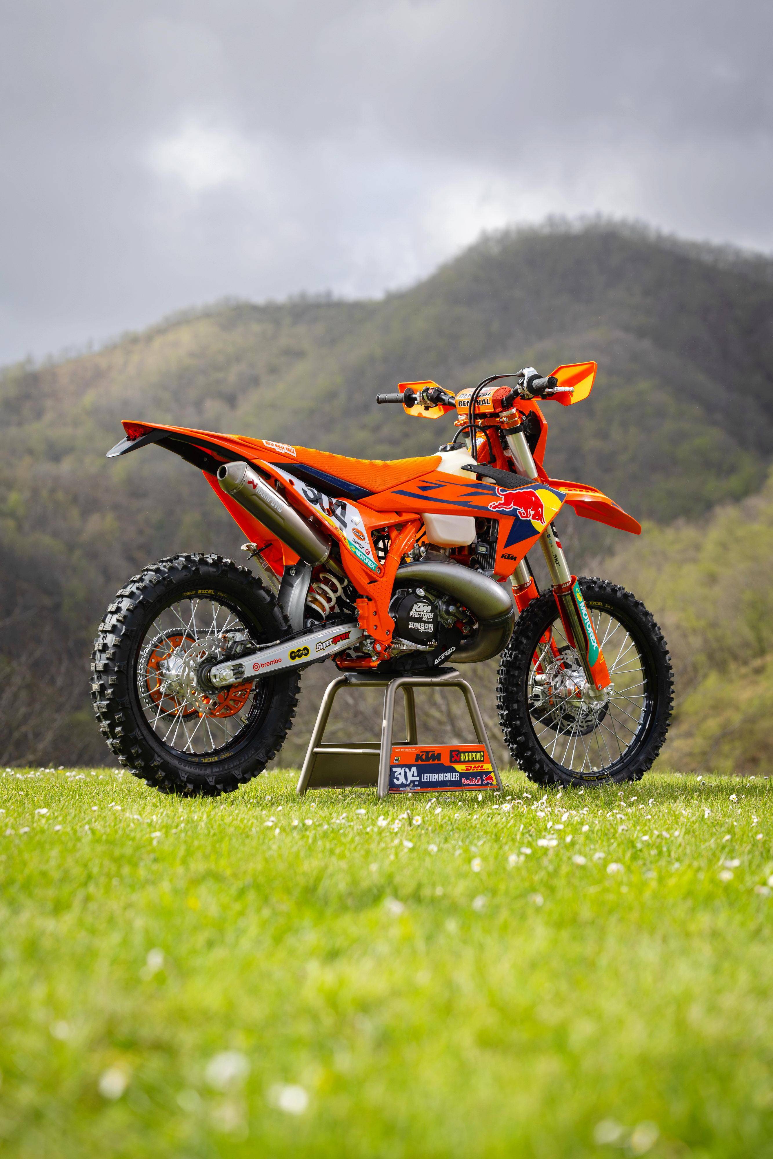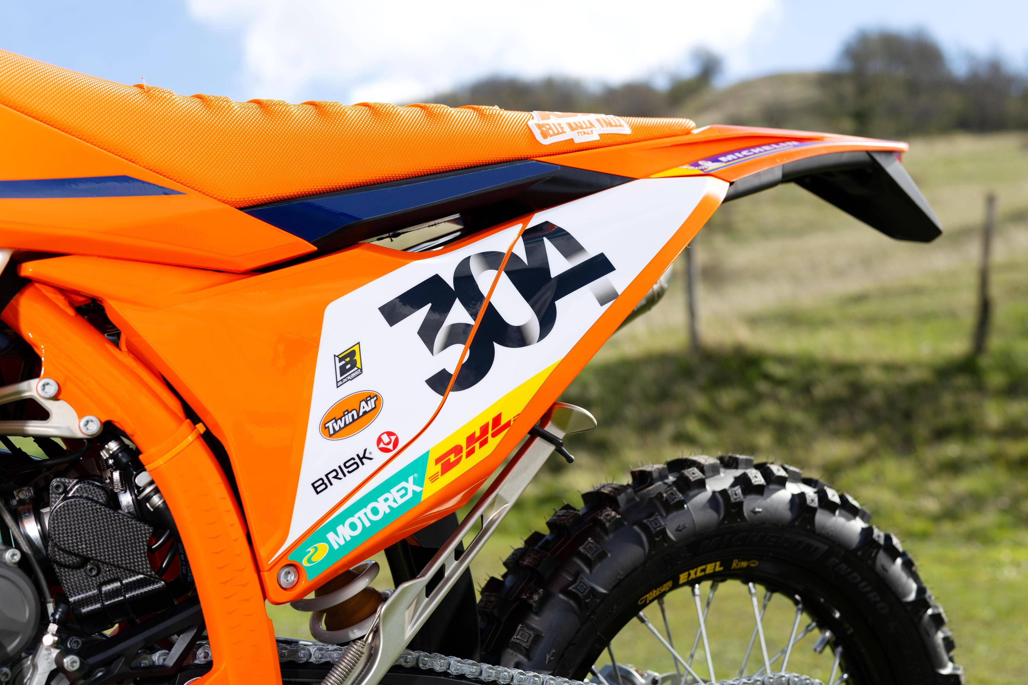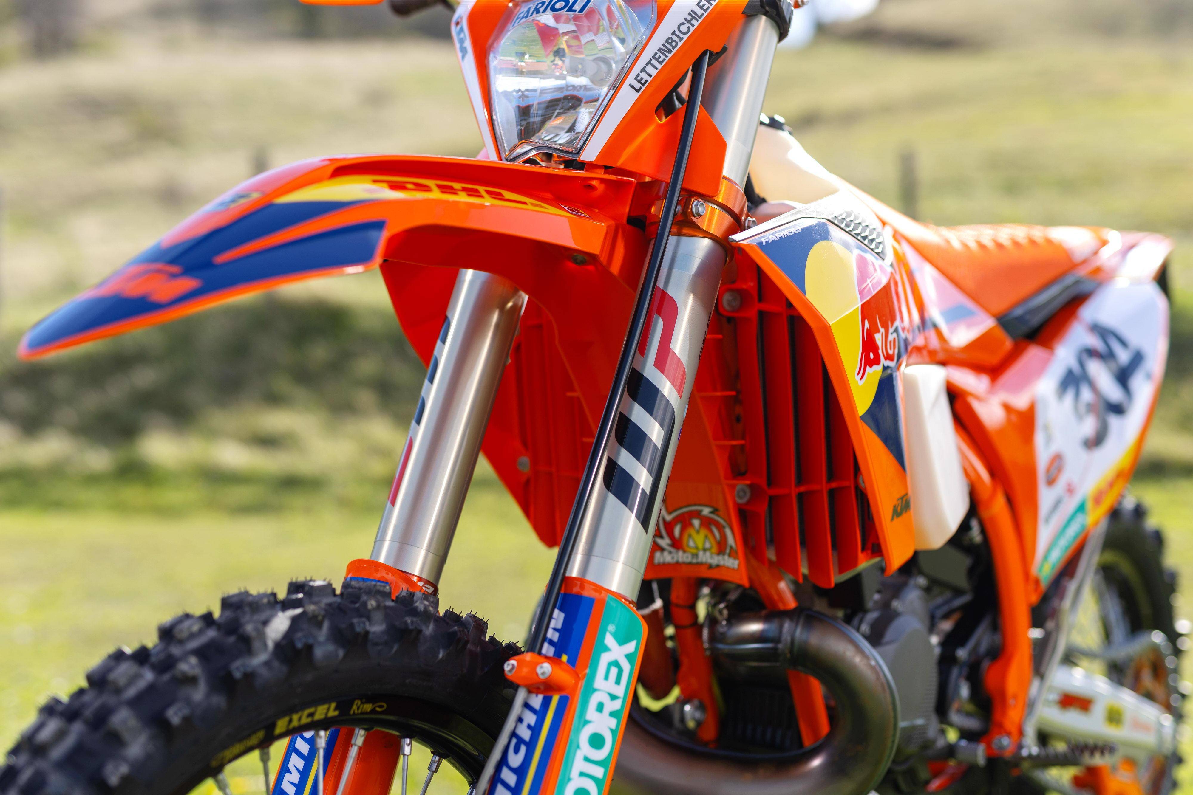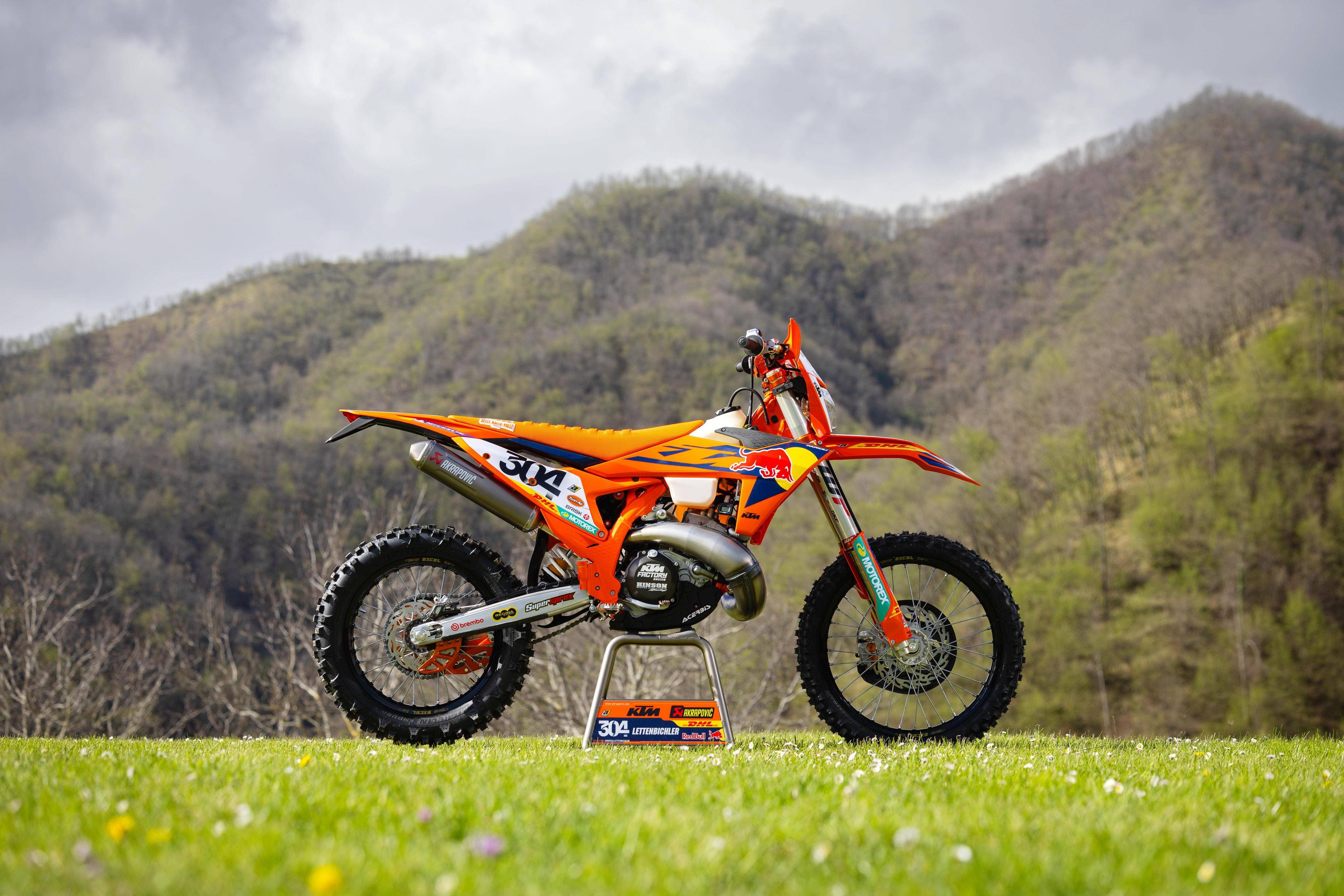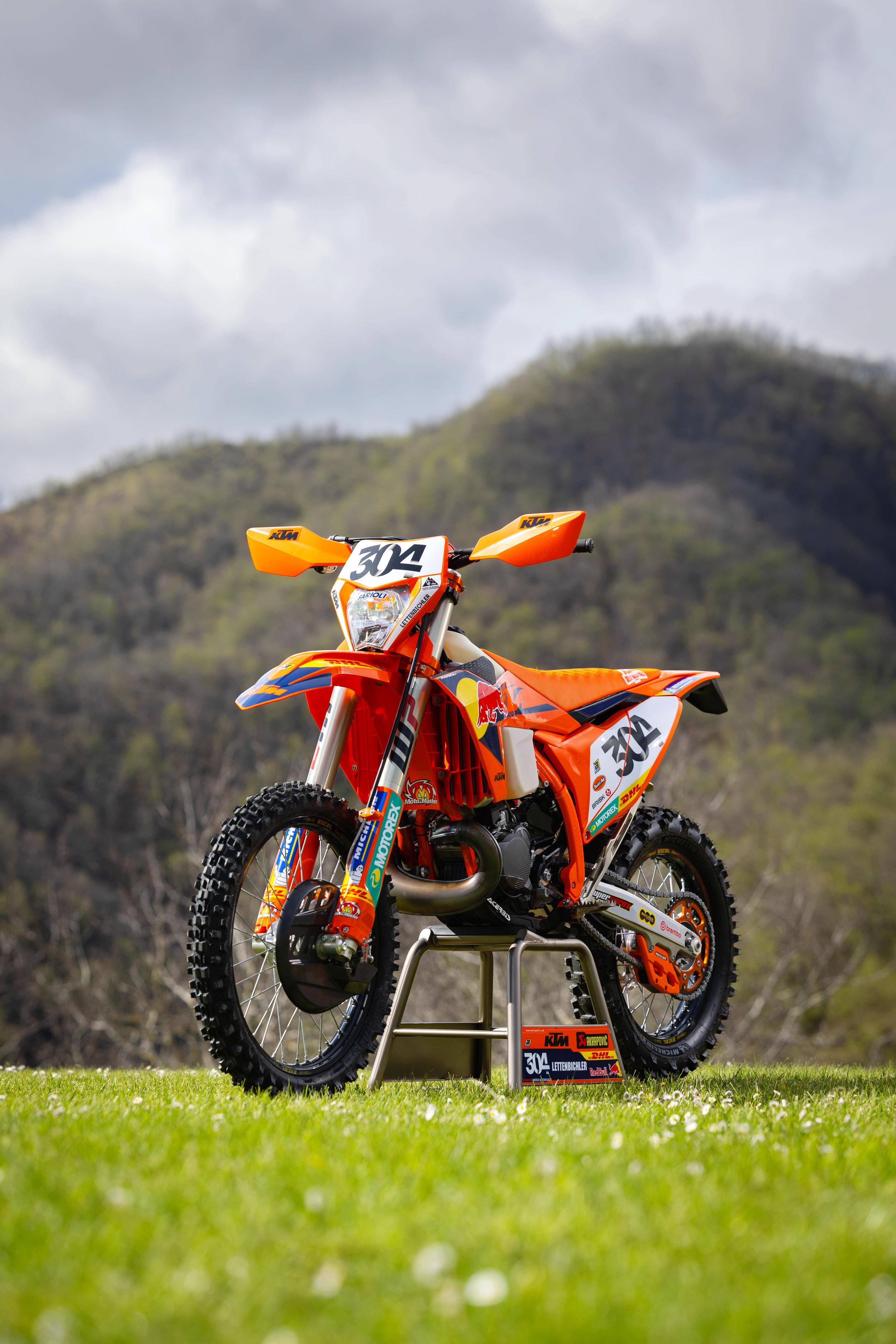 萊騰比切勒在比賽中使用的工廠賽車是 KTM 2025 款的 300 EXC。