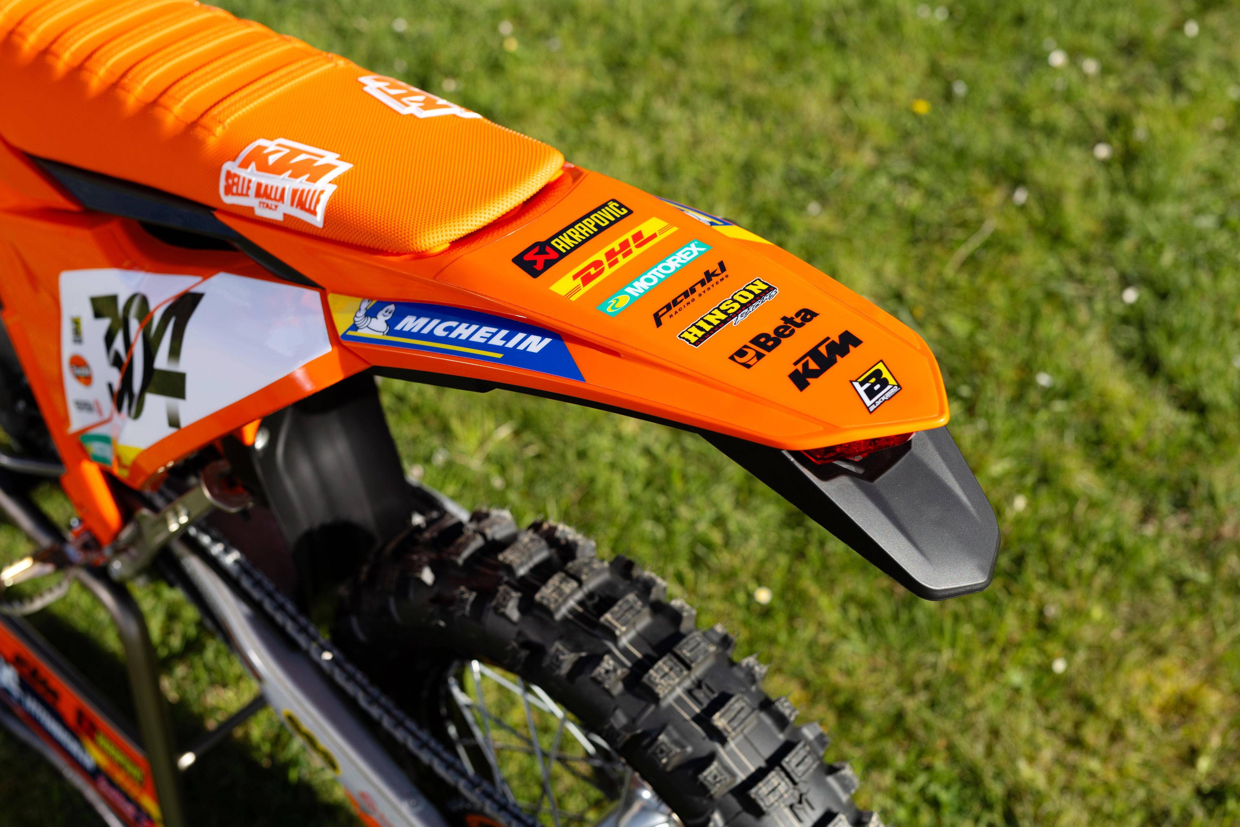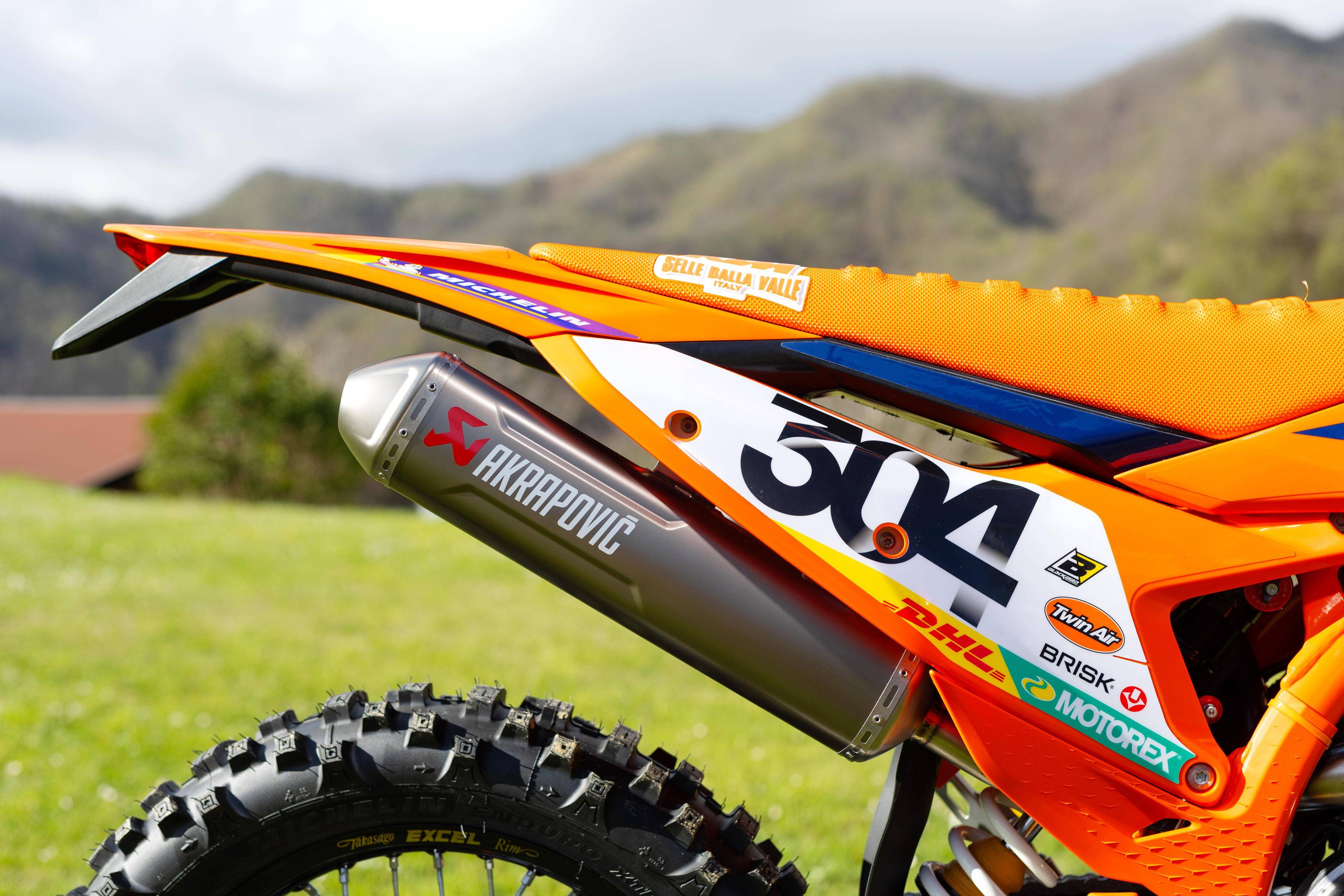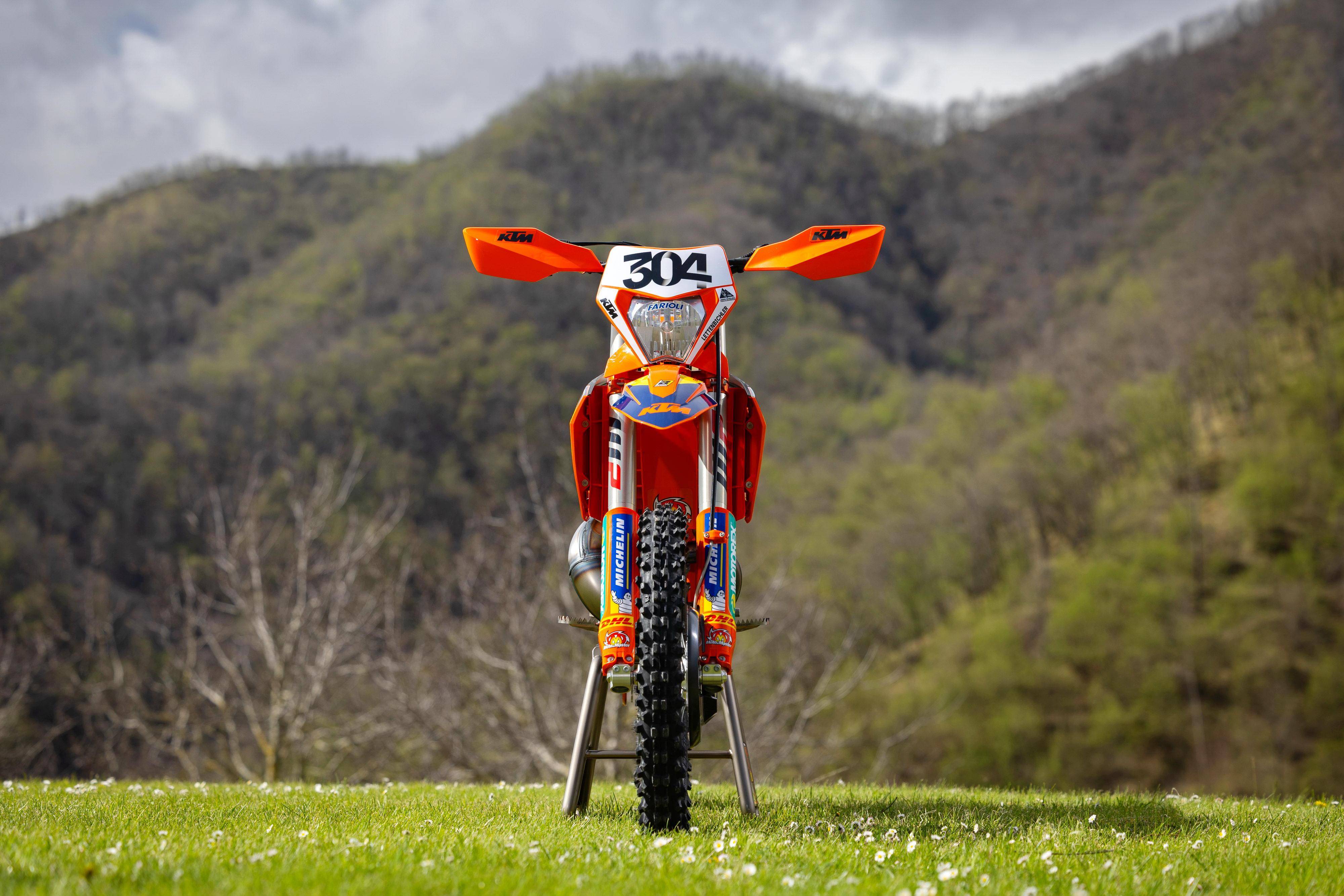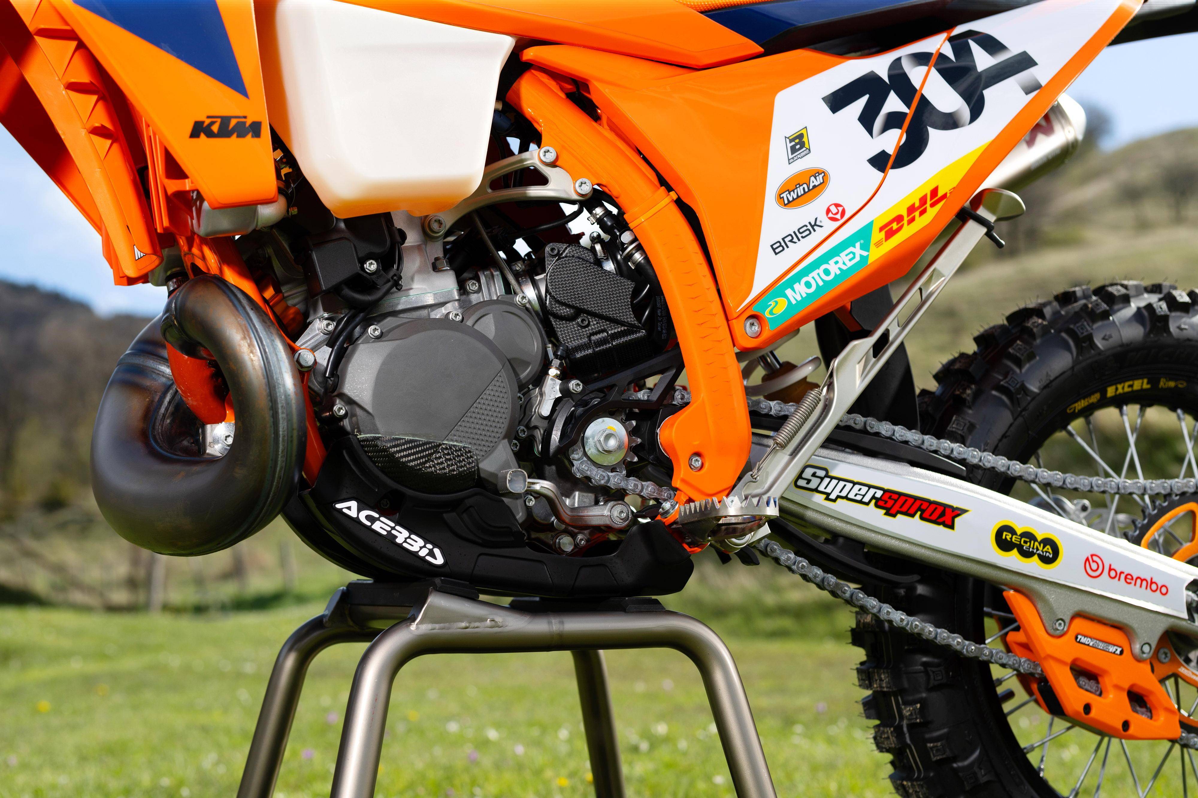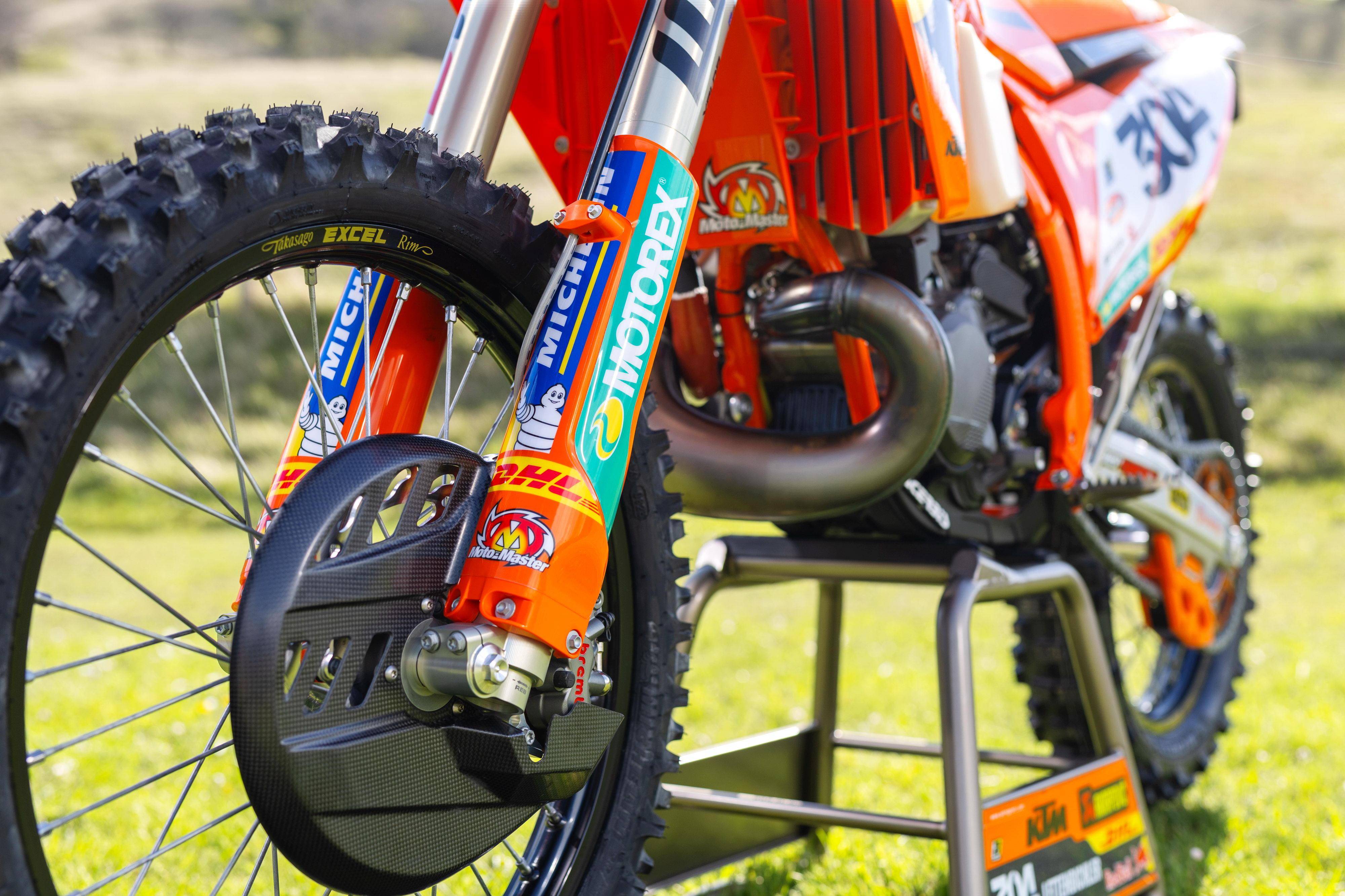 萊騰比切勒在比賽中使用的工廠賽車是 KTM 2025 款的 300 EXC。