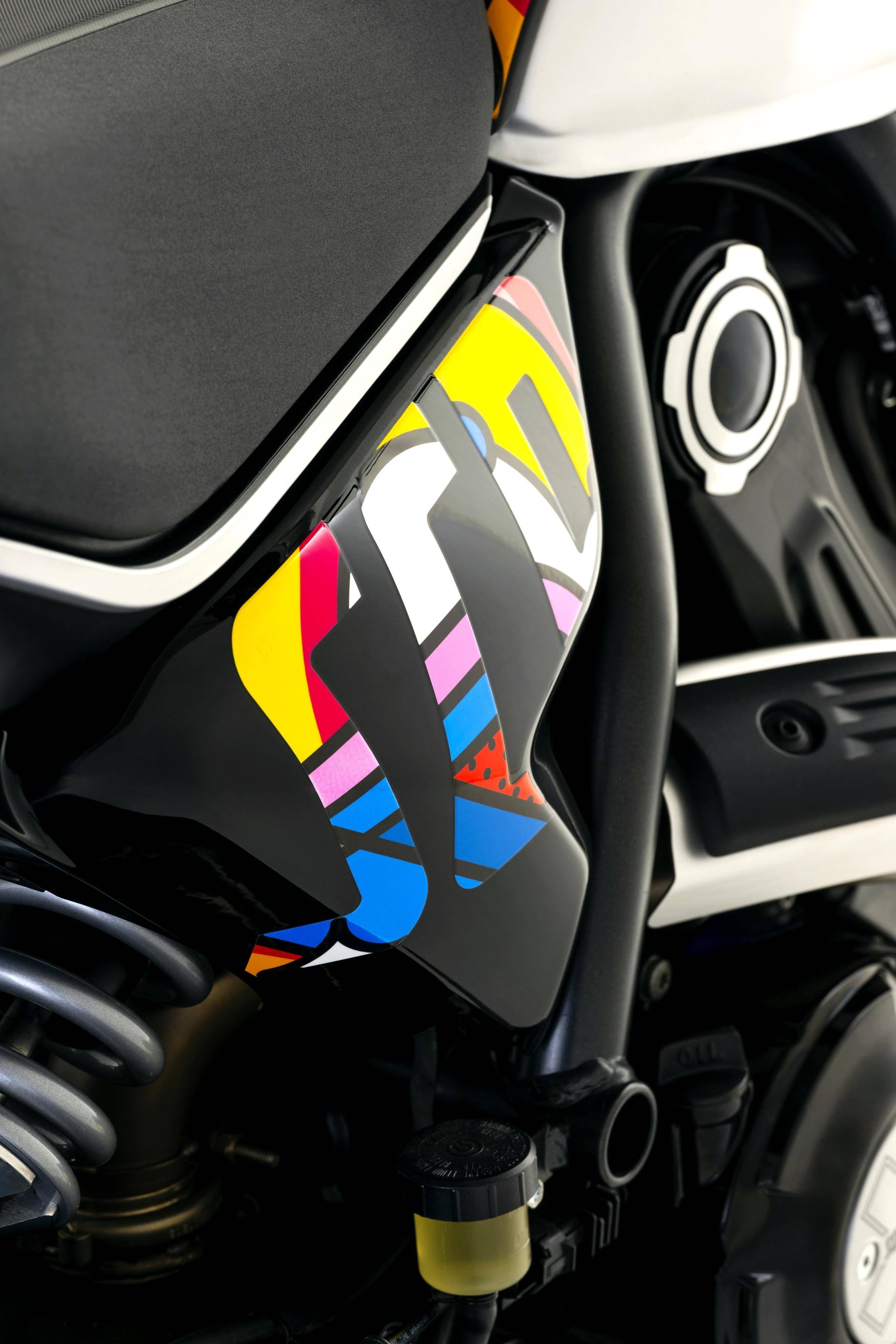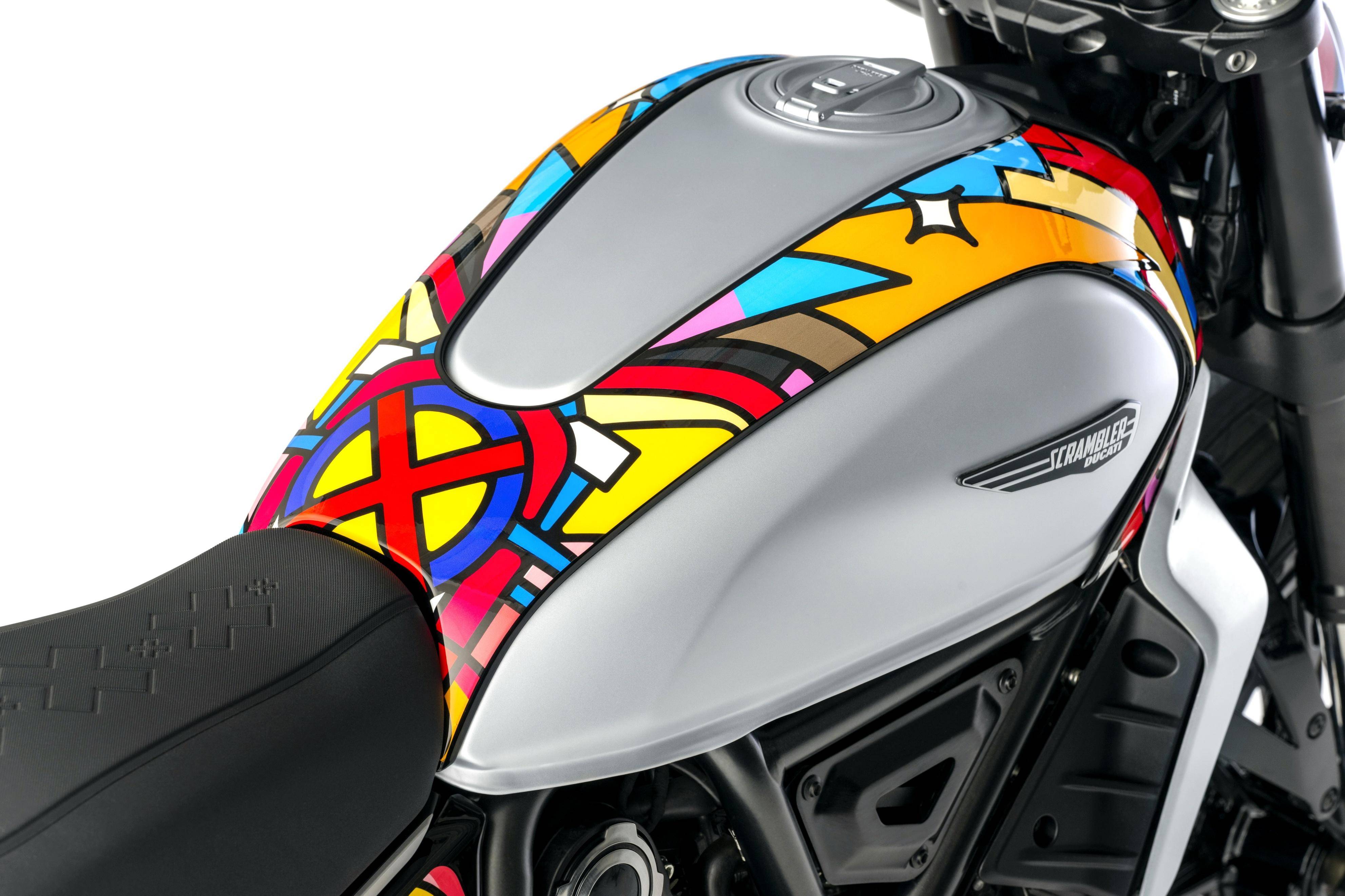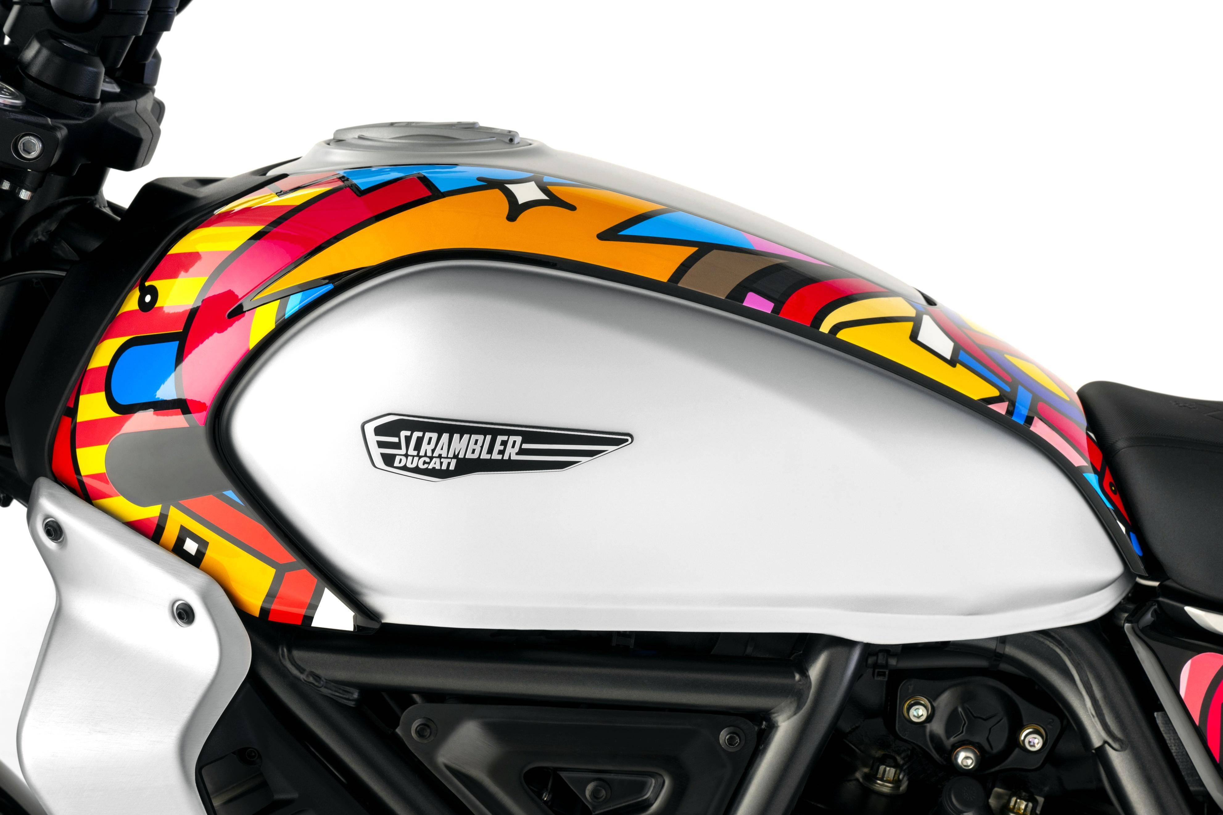 杜卡迪和 Van Orton 合作開發(fā)的這套貼花限量推出 50 套,獨特、豐富而多彩的風格是該貼花的主要特點。杜卡迪稱,Scrambler 系列是那些希望通過兩輪摩托車去表達個性的完美選擇,它具有獨特而可辨識的設計,有趣、且易于日常使用,是專為尋求與他人分享自己的風格和生活方式的騎士而設計的。而新的 Land of Joy “ 歡樂之地 ” 風格貼花,是藝術化與他們的個性化創(chuàng)造力之相融合。