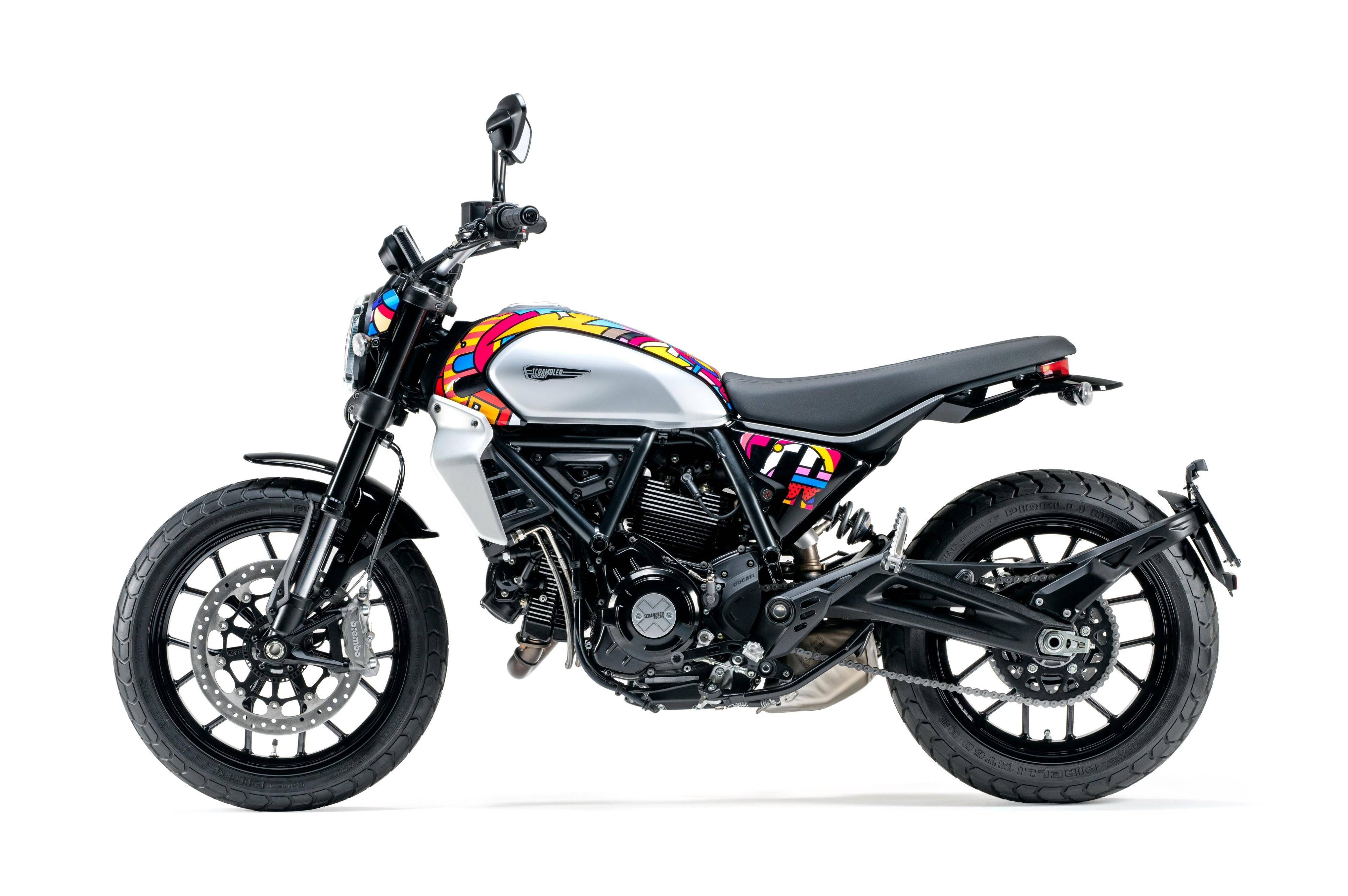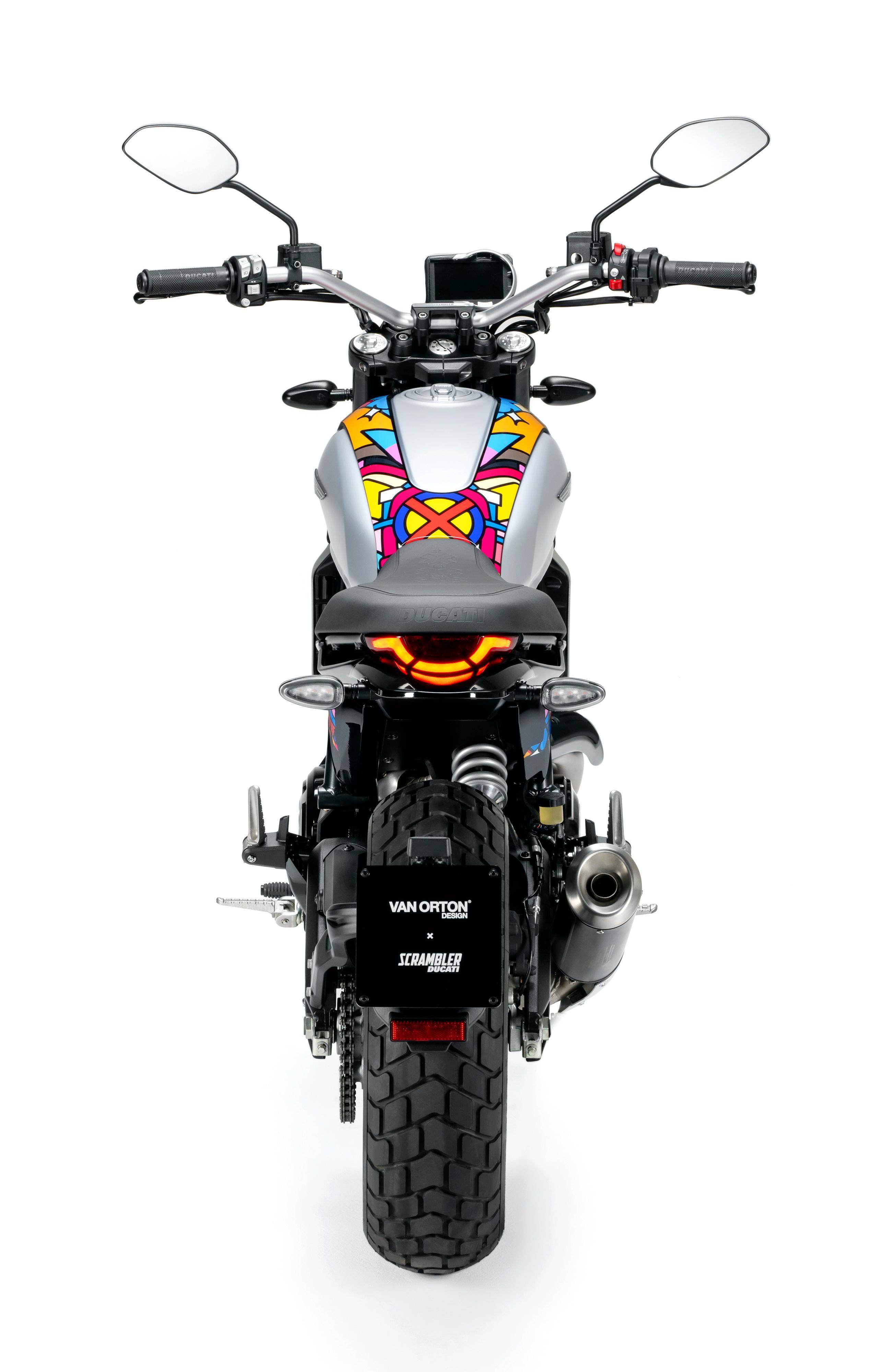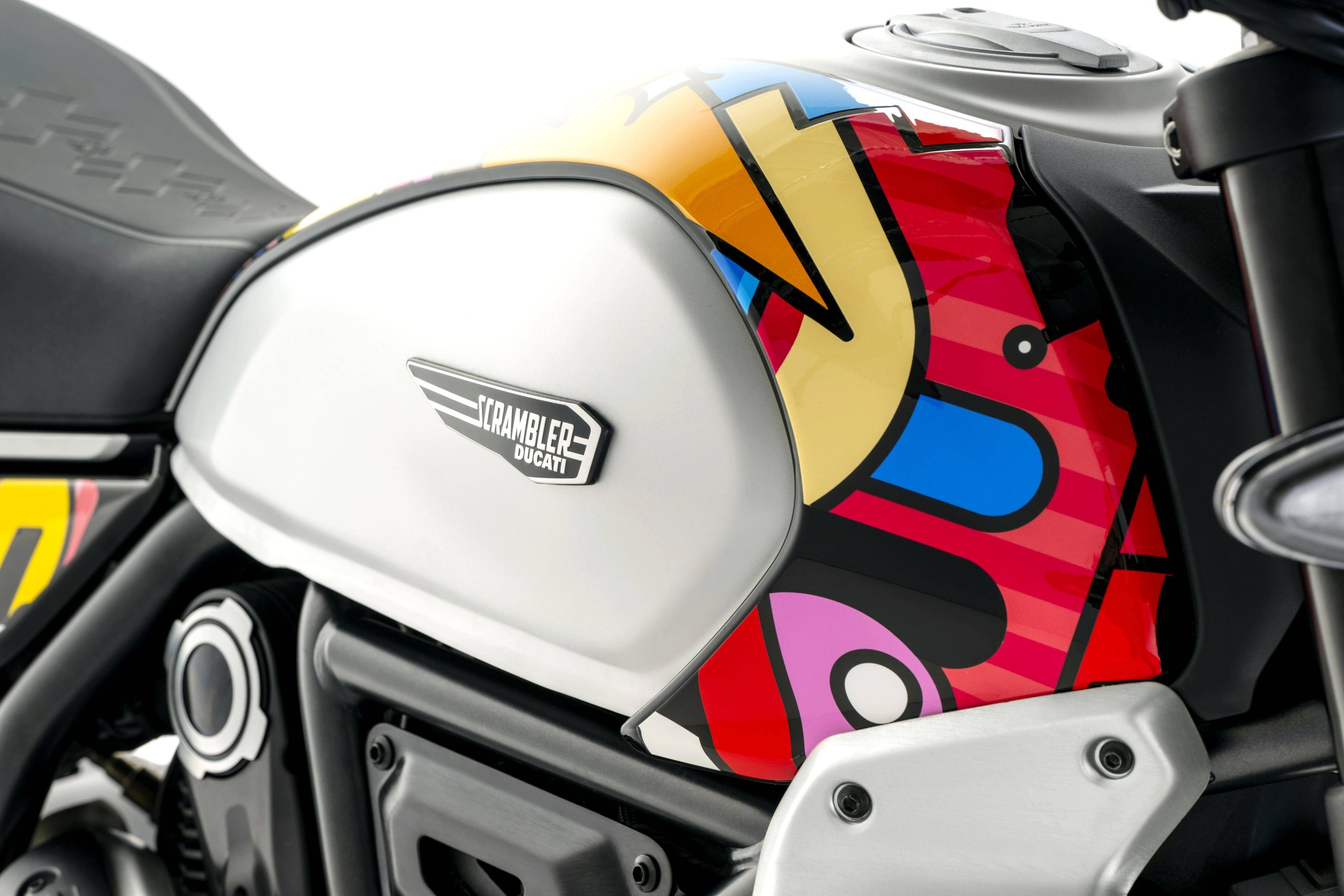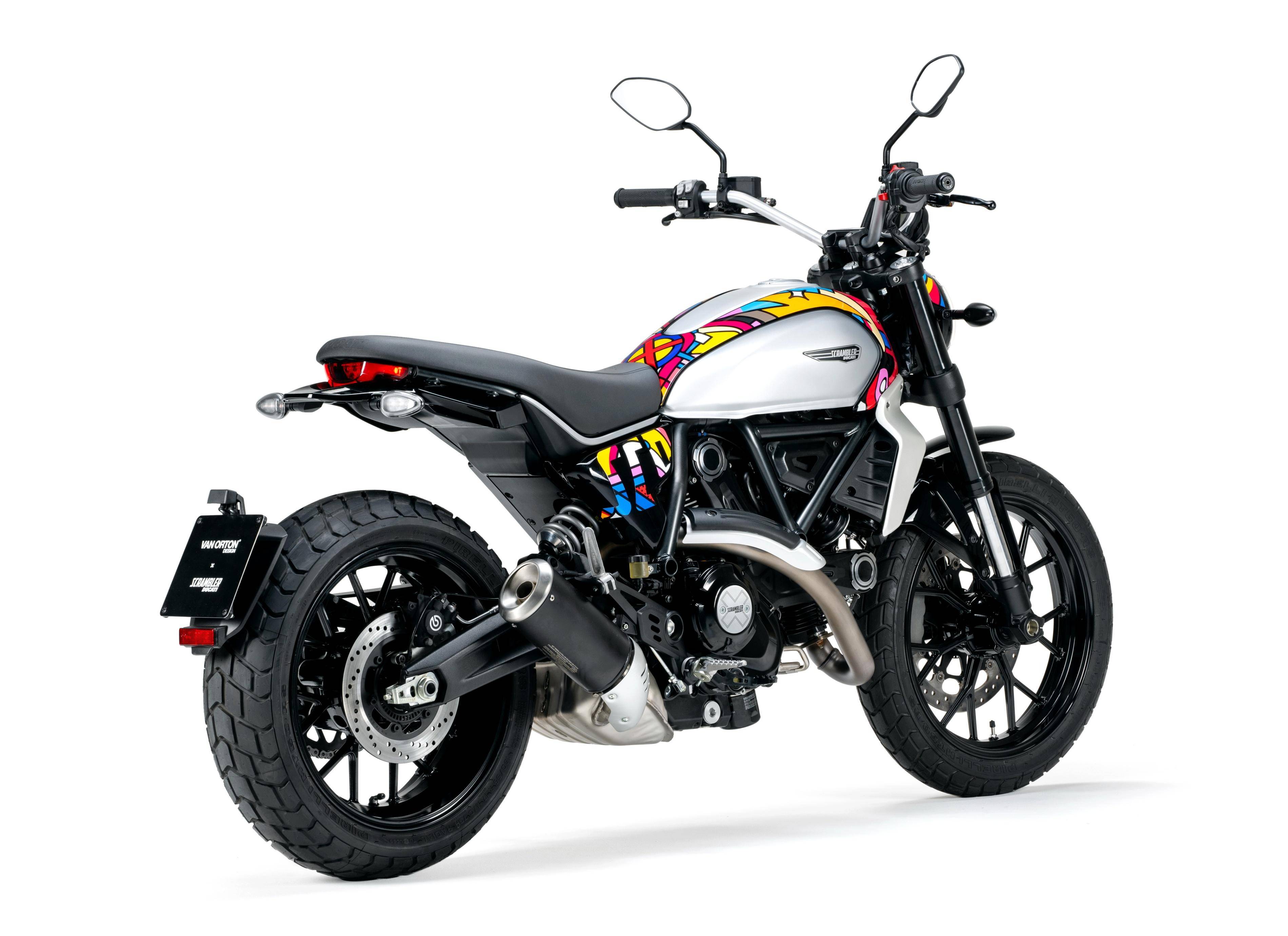五月 9 日,Ducati 杜卡迪發(fā)布了與設計公司 Van Orton 合作開發(fā)的、適用于 Scrambler 自由 Icon 版,名為 Land of Joy “ 歡樂之地 ” 風格的個性化車體貼花。