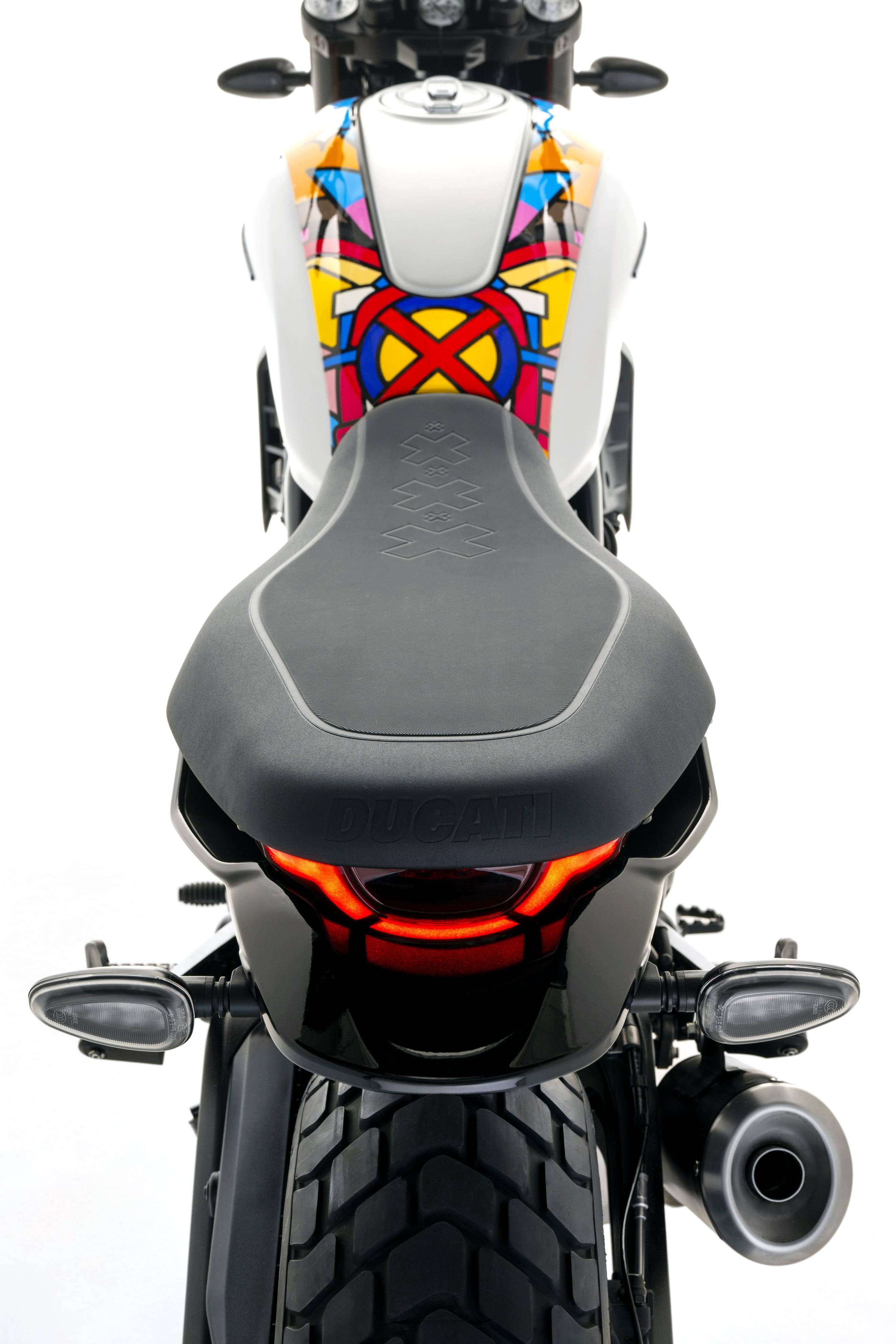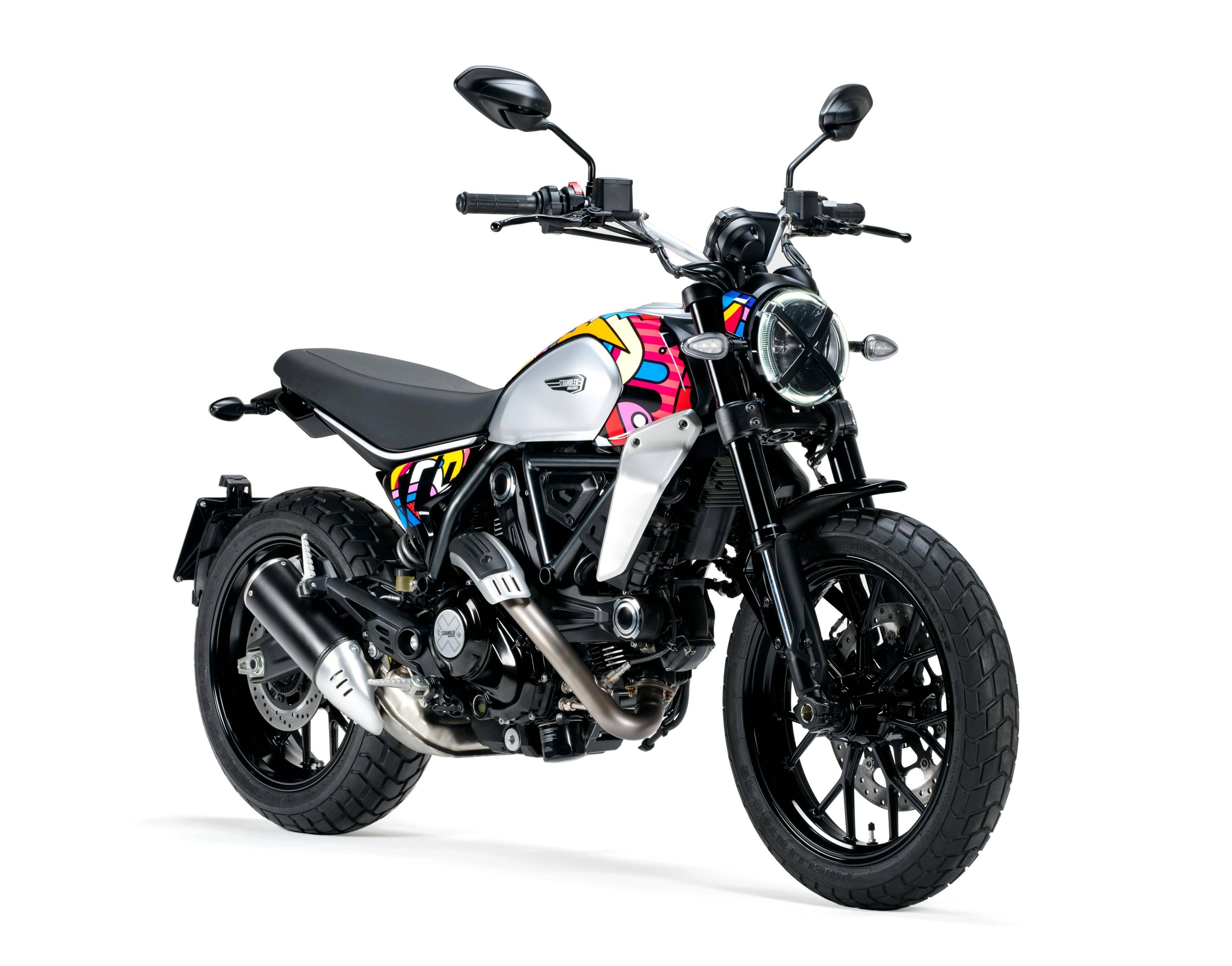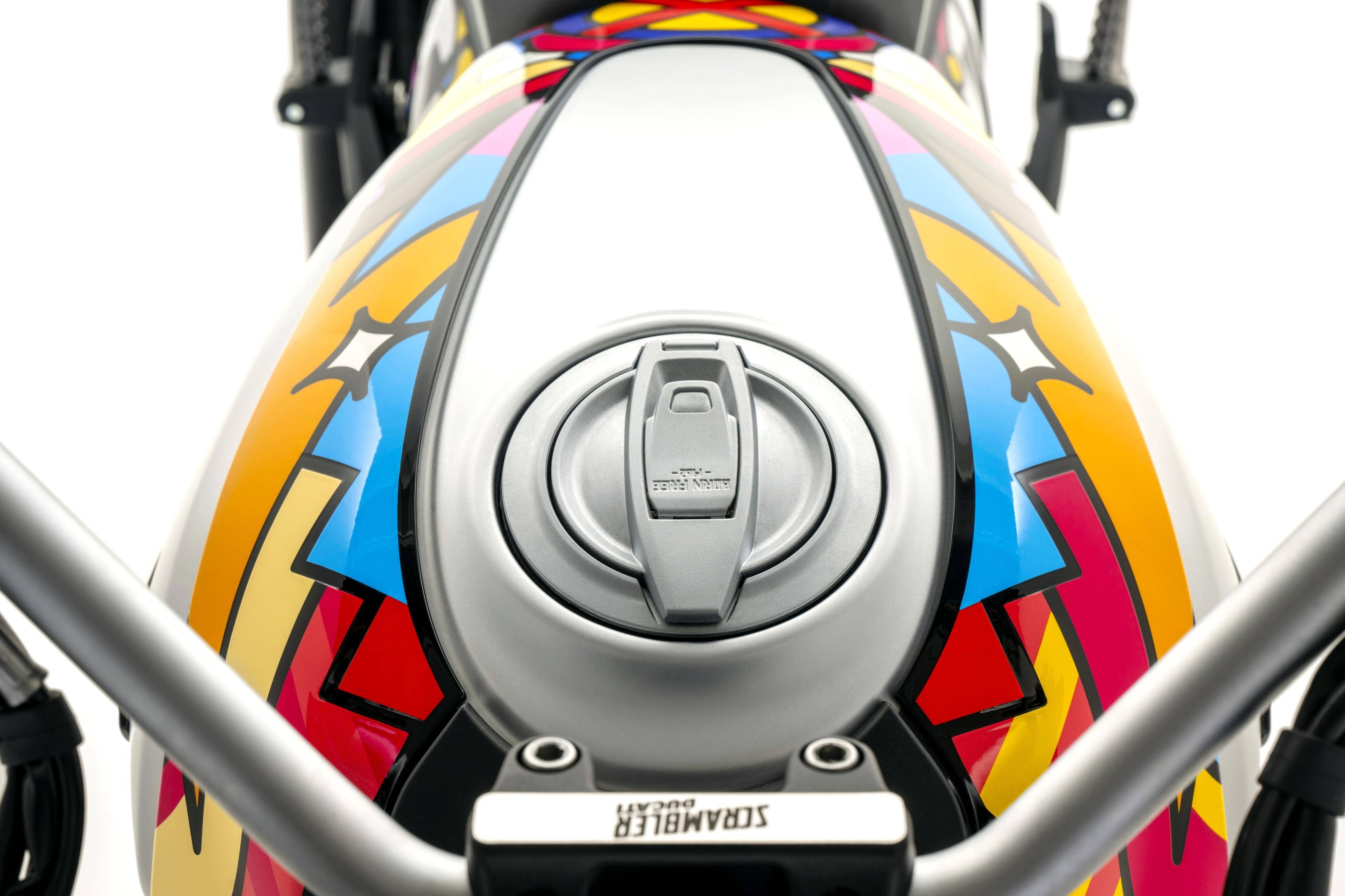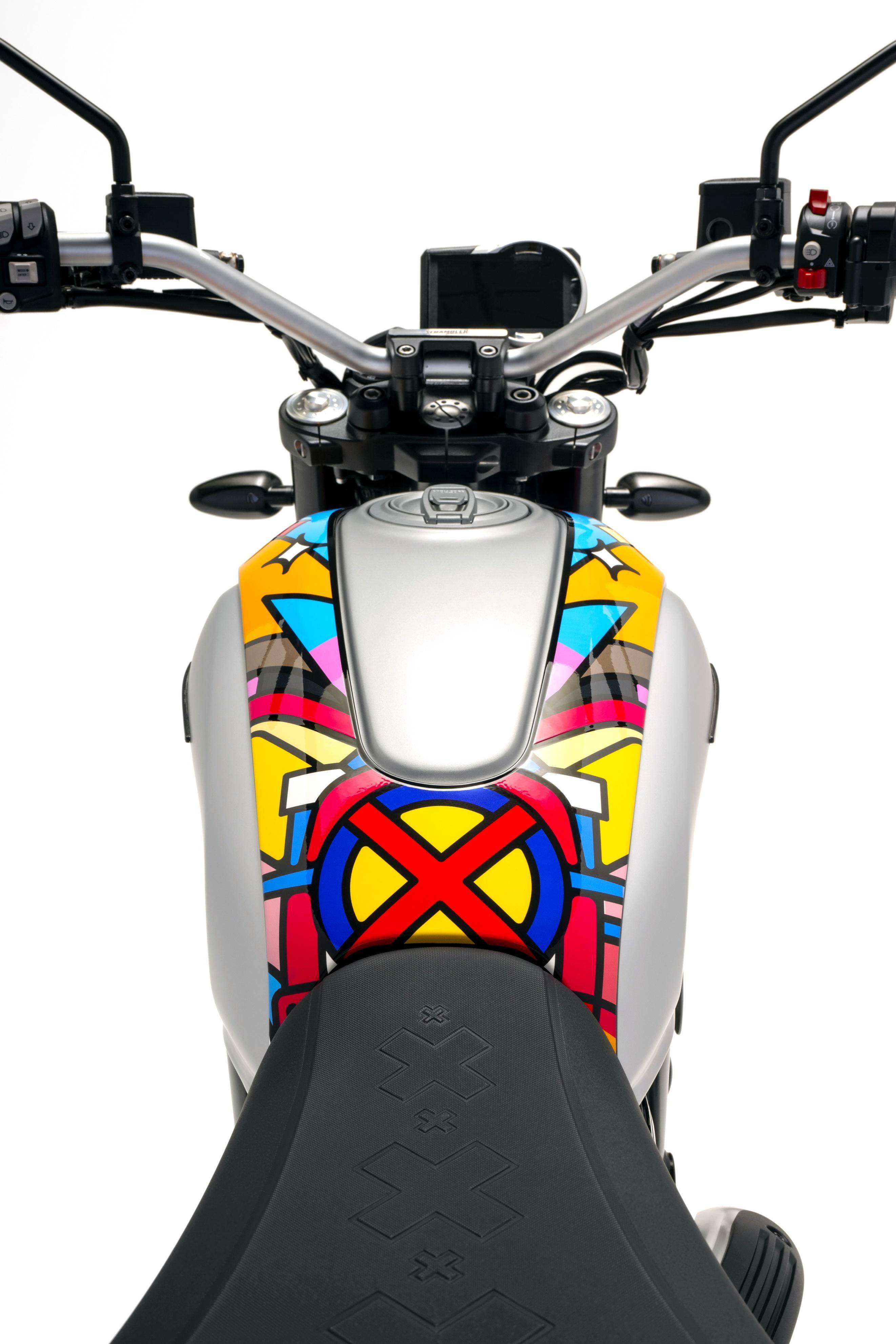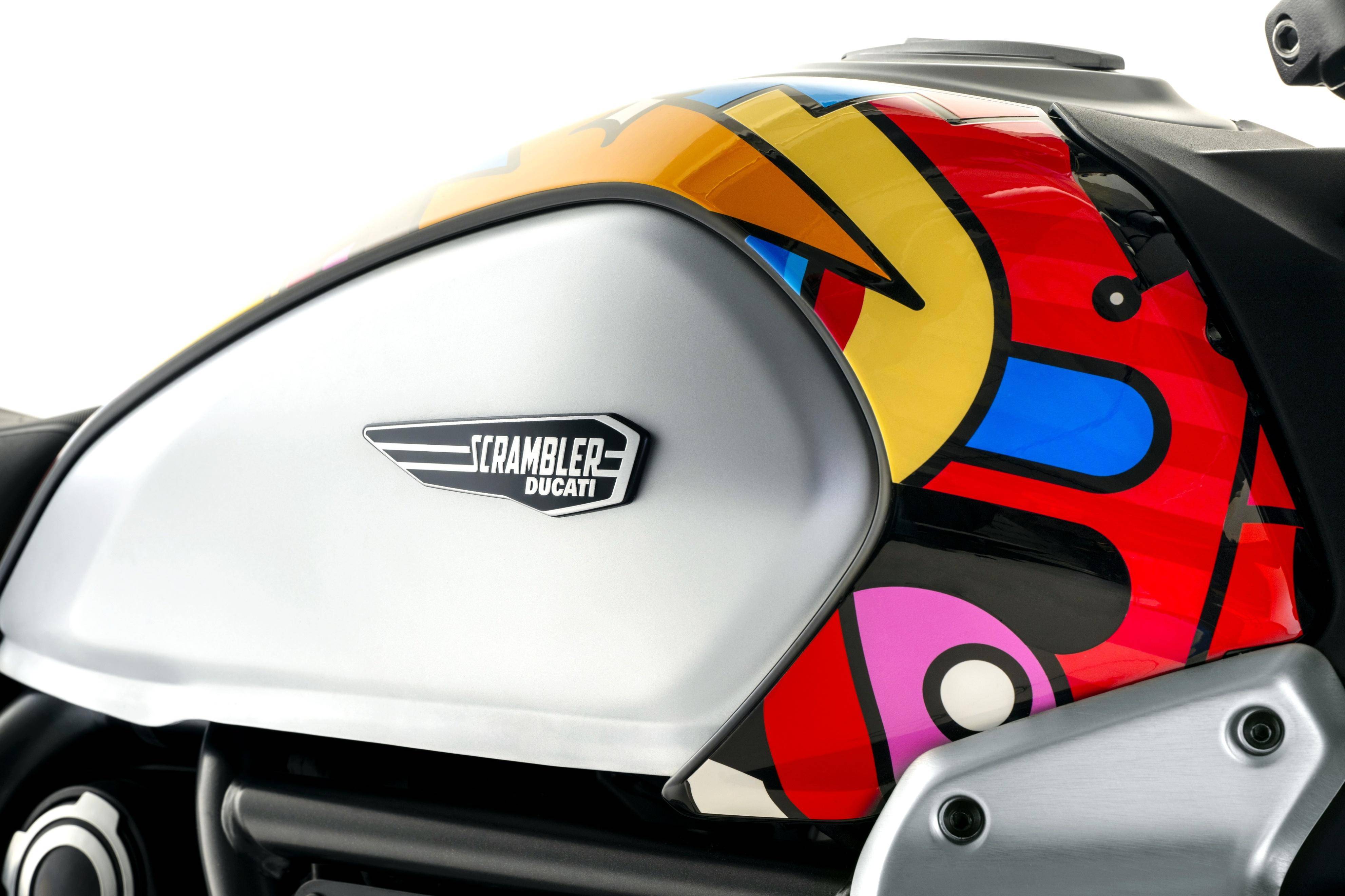 五月 9 日,Ducati 杜卡迪發(fā)布了與設計公司 Van Orton 合作開發(fā)的、適用于 Scrambler 自由 Icon 版,名為 Land of Joy “ 歡樂之地 ” 風格的個性化車體貼花。