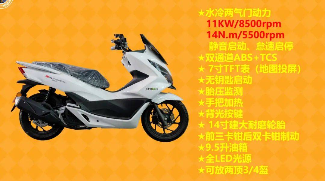 Queen150獨特的多連桿前減震,可以為車輛提供良好的二級緩沖特性,有利于大幅度過濾路面細碎顛簸,以進一步改善車輛騎行舒適性,相同舒適度調(diào)校下支撐性翻倍,不易觸底,遇到急剎時更平穩(wěn)更安全。Queen150還將眾多人性化配置植入到產(chǎn)品的各個細節(jié)之中,5寸大屏TFT表(可實現(xiàn)全地圖投屏導(dǎo)航功能、來電顯示、微信消息提示)、雙模無鑰匙系統(tǒng)、雙通道ABS+TCS、胎壓監(jiān)測、隱藏式手把加熱、半熱熔輪胎,超大前大燈,四透鏡遠近光+日行燈帶,夜間照明更強。同時上市的還有戰(zhàn)神150,售價同樣為12980元。配置與QUEEN150相同,但發(fā)動機為水冷兩氣門,座桶容積更大,可放兩頂3/4盔。
