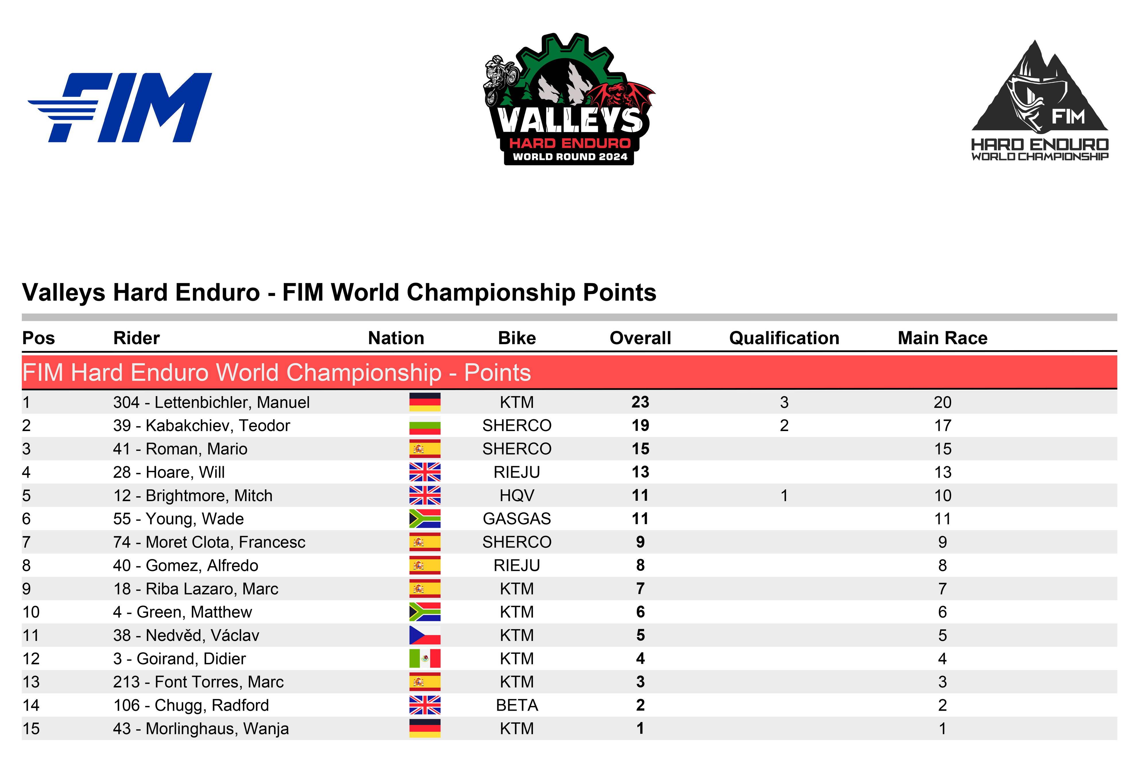 FIM 極限耐力越野世界錦標賽在 2024 賽季共有七個分站的比賽,除了揭幕戰(zhàn)的英國站,第二站是五月 30 到六月 2 日的奧地利礦山、紅牛埃斯博格(Red Bull Erzberg Rodeo),第三站是六月 19 - 22 日、塞爾維亞的 Xross Hard Enduro Rally,第四站是七月 23 - 27 日的紅牛羅馬尼亞(Red Bull Romaniacs),第五站是八月 22 - 25 日的美國紅牛 TKO,第六站是十月 10 - 12 日、土耳其的 Sea to Sky,最后一站是十月 25 - 27 日、西班牙的 24MX Hixpania Hard Enduro。