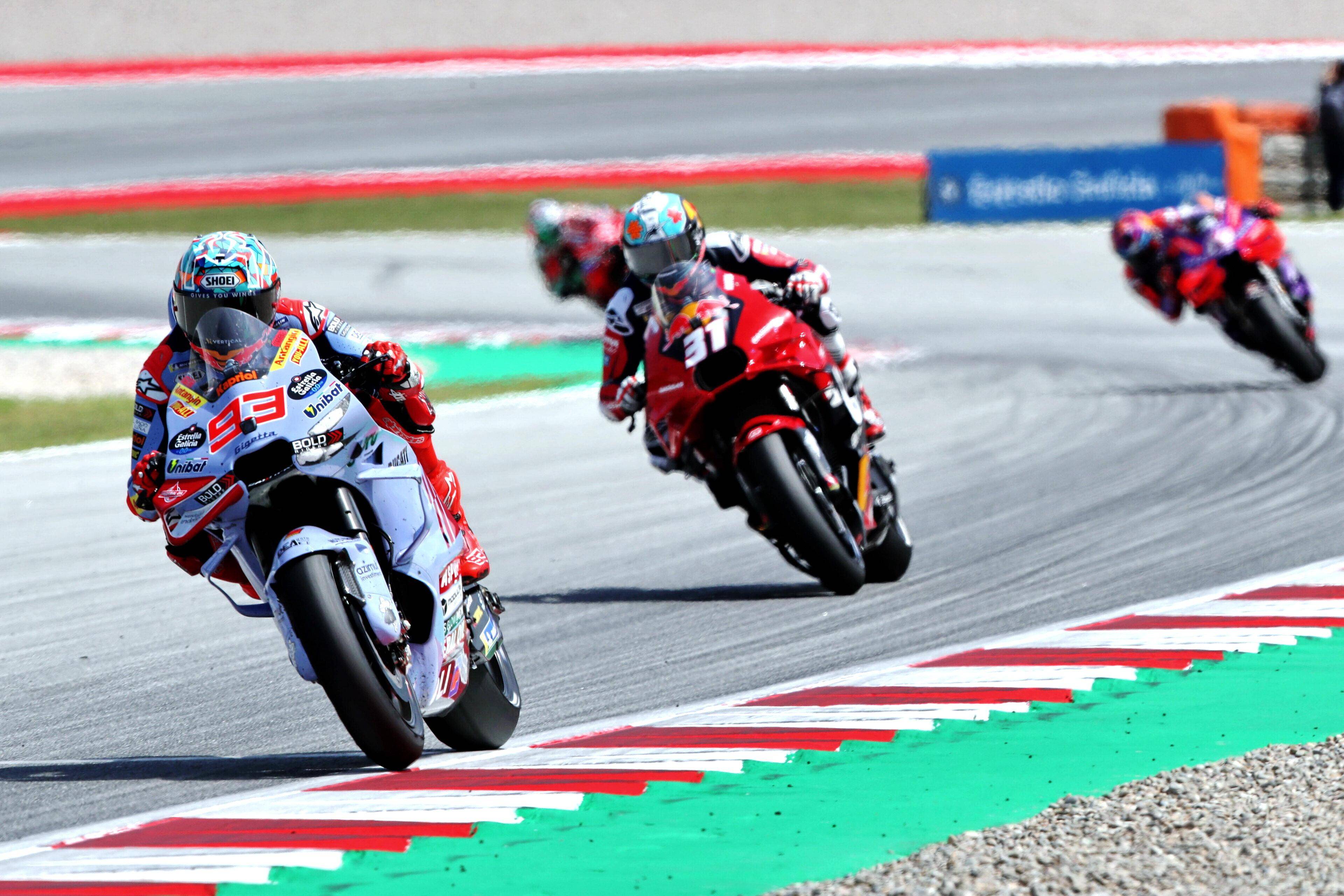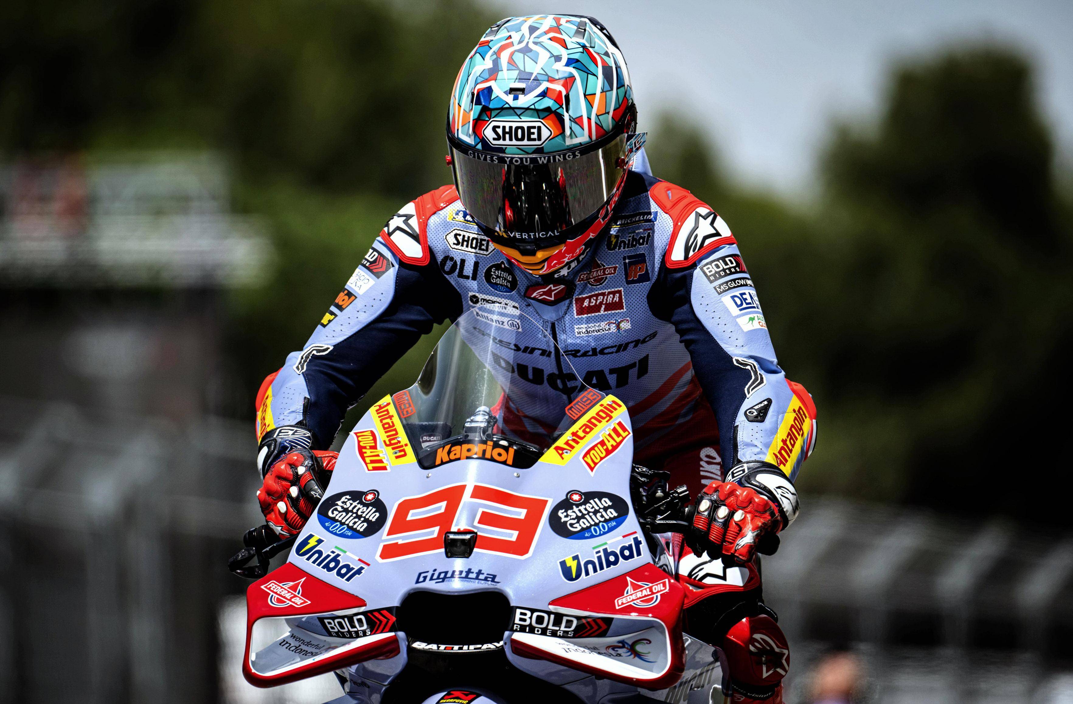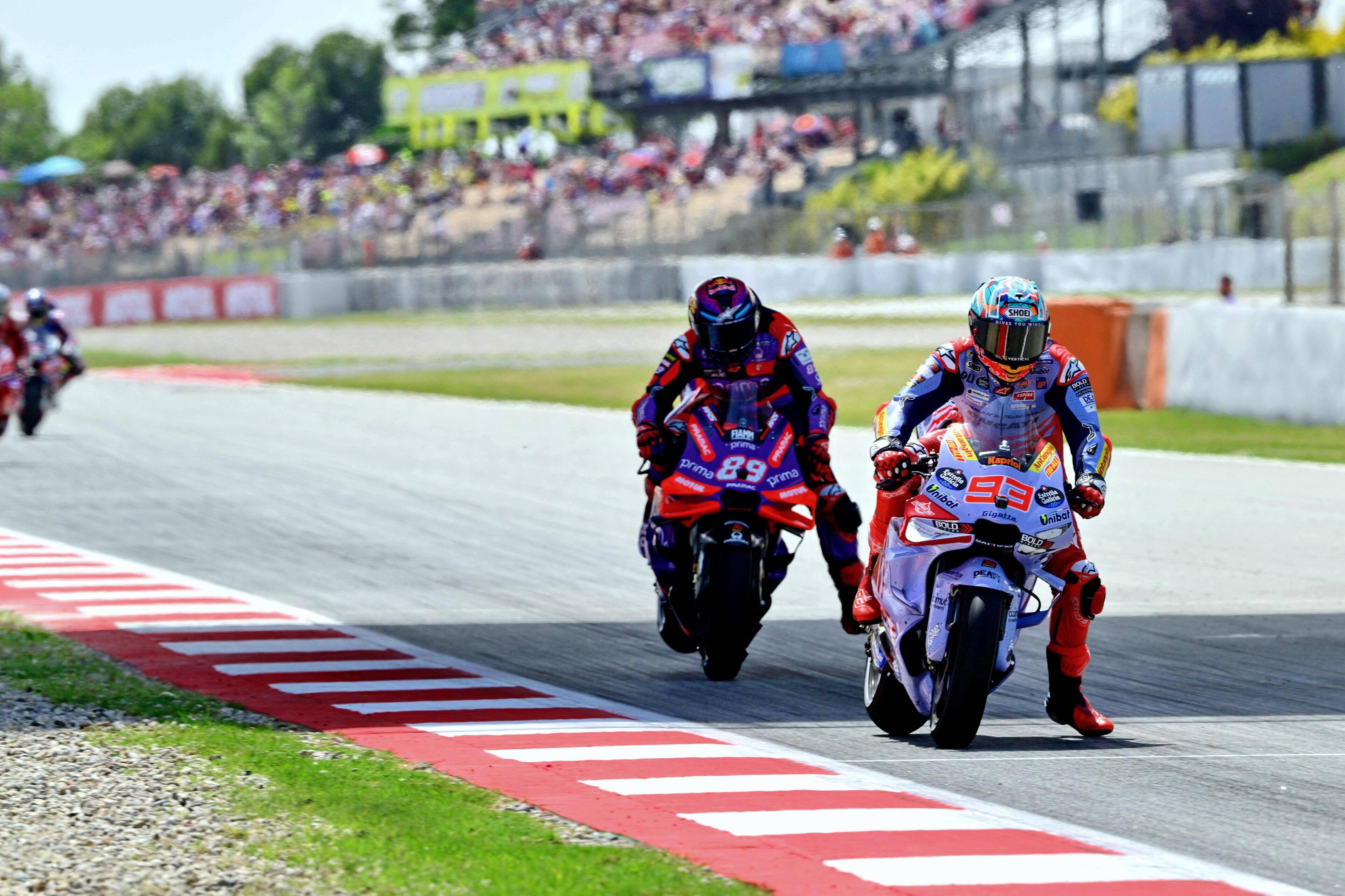 昨天周末(五月 25 日),MotoGP 級(jí)別早上進(jìn)行的 Q1 排位賽,兩位車(chē)手跑出來(lái)的時(shí)間并不算理想:小馬昆斯跑出了 1 分 38.53 秒的第三快圈速,馬昆斯則跑出了 1 分 38.536 秒的第四快圈速,兩人都無(wú)緣 Q2(注:Q1 的前兩名、可以進(jìn)入 Q2,以爭(zhēng)奪 Sprint 沖刺賽和正賽發(fā)車(chē)位置的前十二名)。最終,小馬昆斯排在沖刺賽和正賽發(fā)車(chē)位置的第十三、馬昆斯則排在第十四位起跑。