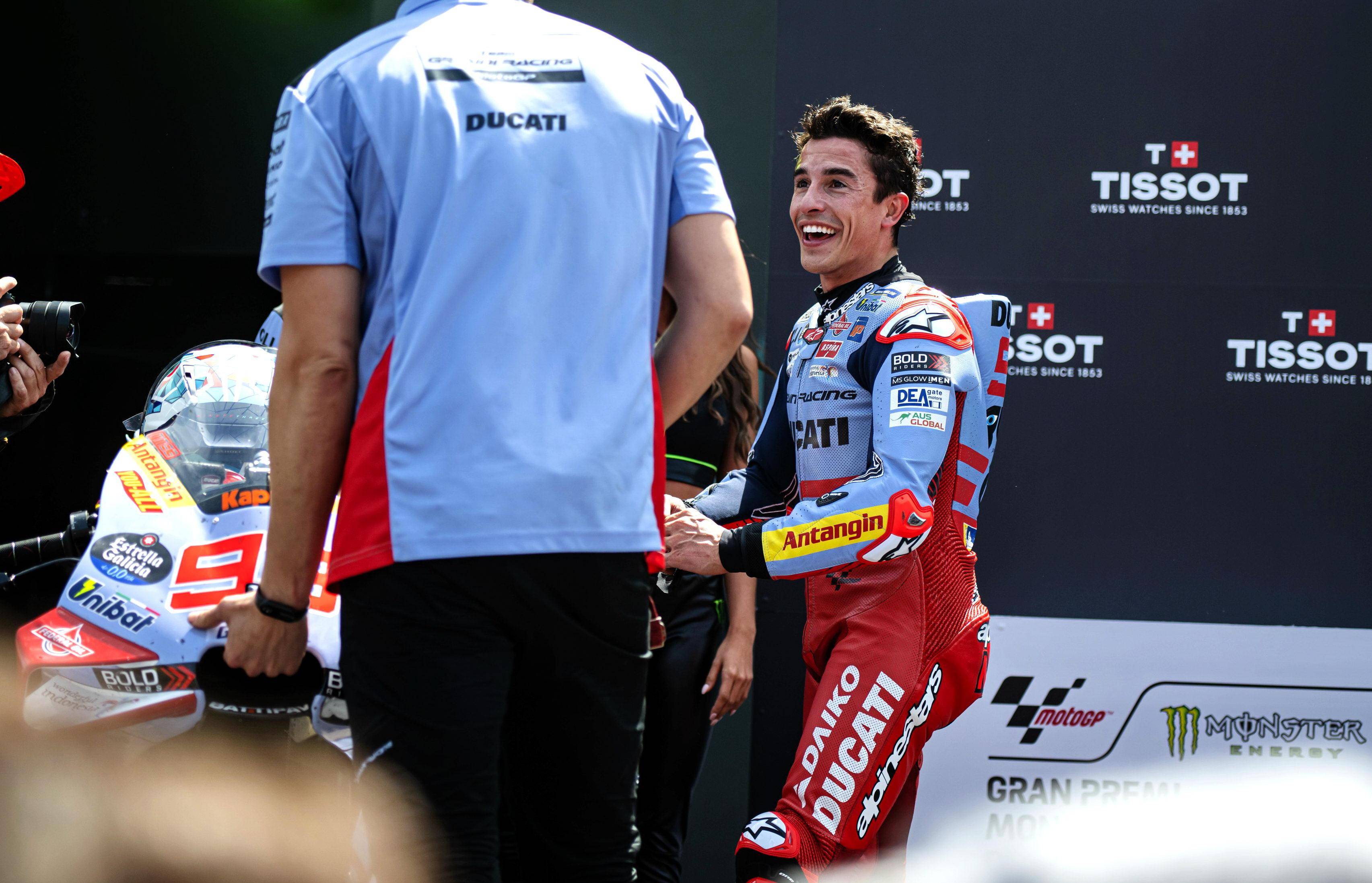 周末的沖刺賽結(jié)束后,馬昆斯表示,“ 我必須說(shuō),今天早上我們對(duì)賽車(chē)進(jìn)行了重要的調(diào)整,讓我的騎行感覺(jué)更舒服了,不過(guò),(當(dāng)時(shí))我沒(méi)想到我(從后而上的)反擊會(huì)如此的凌厲。在上一站法國(guó)的時(shí)候,我就知道我的速度很快,來(lái)到這里(加泰羅尼亞時(shí))我發(fā)現(xiàn)自己處于一個(gè)正確的位置上、并充分利用了機(jī)會(huì)。這是一場(chǎng)偉大的比賽,但周日(正賽)的氣溫會(huì)更高,杜卡迪的機(jī)器在這種情況下會(huì)更吃力,但我們會(huì)試試(沖擊更佳成績(jī))的!”