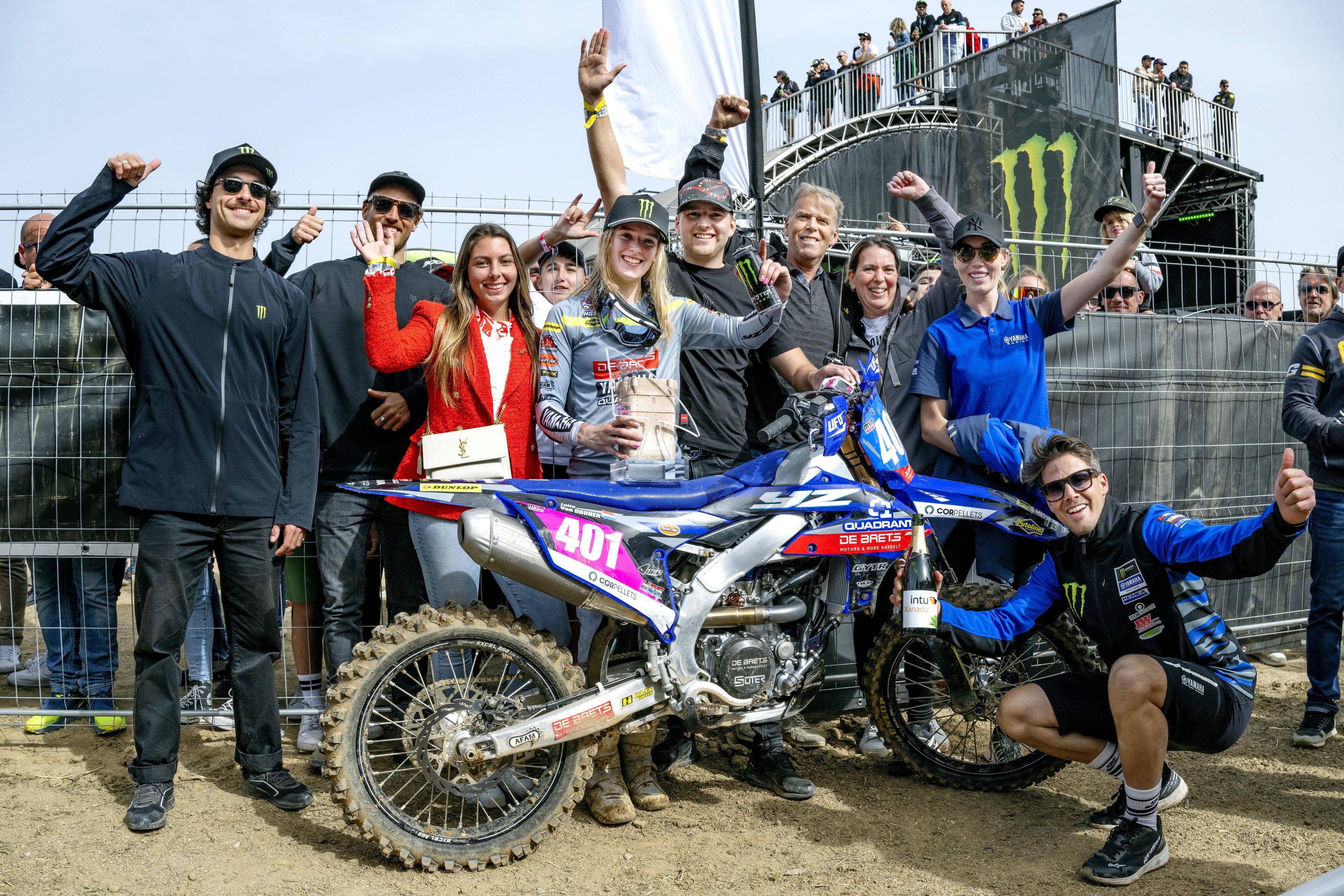 現(xiàn)年只有十六歲的杜魯寧,十一歲的時候(2018 年)在歐洲越野錦標賽(EMX65)以及 FIM 青少年世界越野錦標賽(FIM Junior Motocross World Championship)首次亮相(65 cc 級別),到 2022 年正式進軍 WMX,首年的參賽獲得了年度第二十二名;到 2023 賽季,杜魯寧開始爆發(fā),拿下職業(yè)生涯的首次比賽冠軍,全季以 230 分、奪得了年度總季軍,在六個分站比賽中累計拿下四個冠軍、一個季軍,五次登上頒獎臺。