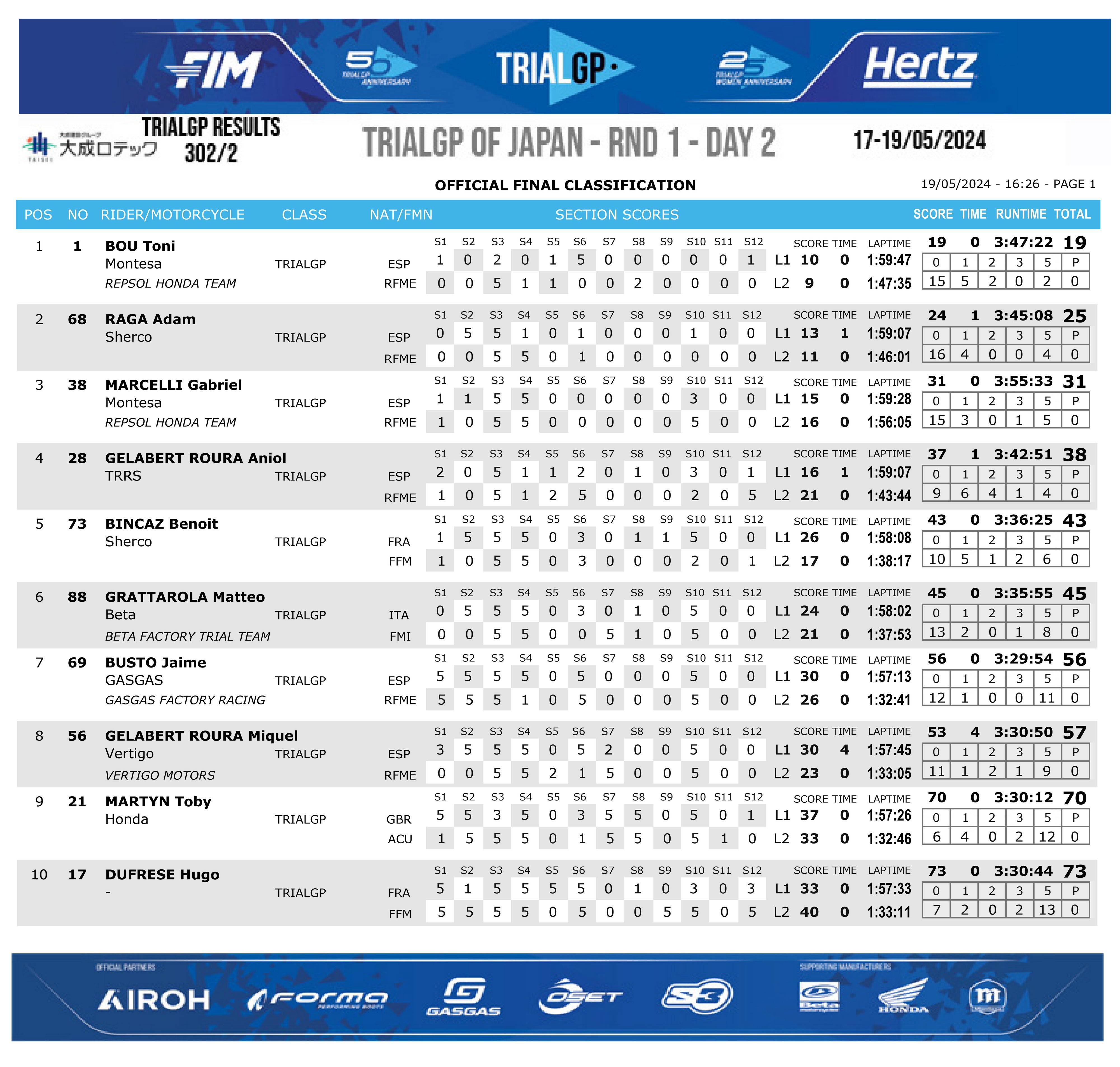 日本站的這場揭幕戰(zhàn),西班牙車手延續(xù)過去十多年來、他們在障礙攀爬賽領(lǐng)域里的優(yōu)勢,主宰了最高級別 TrialGP 的整場賽事:過去十七年的室內(nèi)賽 + 室外賽世界冠軍、駕駛 1 號車的布(Toni Bou),順利奪得了最后一天比賽的勝利;另一位西班牙車手、68 號車的拉格(Adam Raga)拿到了第二,布的隊友、同樣來自西班牙的 38 號車馬塞利(Gabriel Marcelli)奪得了第三。