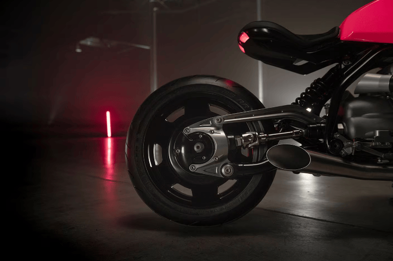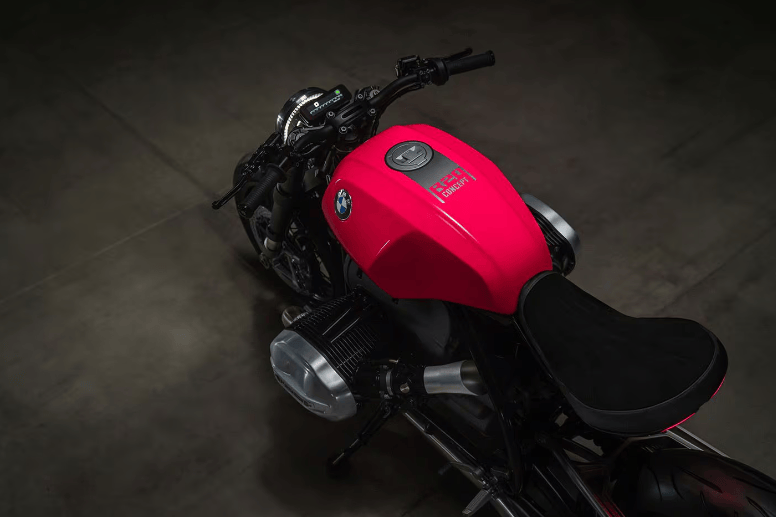BMW R20 Concept的外觀設(shè)計(jì)獨(dú)具匠心。其車身線條流暢而精致,雕塑般的油箱和流線型的尾部設(shè)計(jì),無不彰顯出BMW獨(dú)一無二的造車?yán)砟?。特別是其車身顏色采用了70年代的前衛(wèi)顏色——熱烈的粉紅色,與黑色的輪轂和車架形成了鮮明的對比,既復(fù)古又現(xiàn)代,令人眼前一亮。
