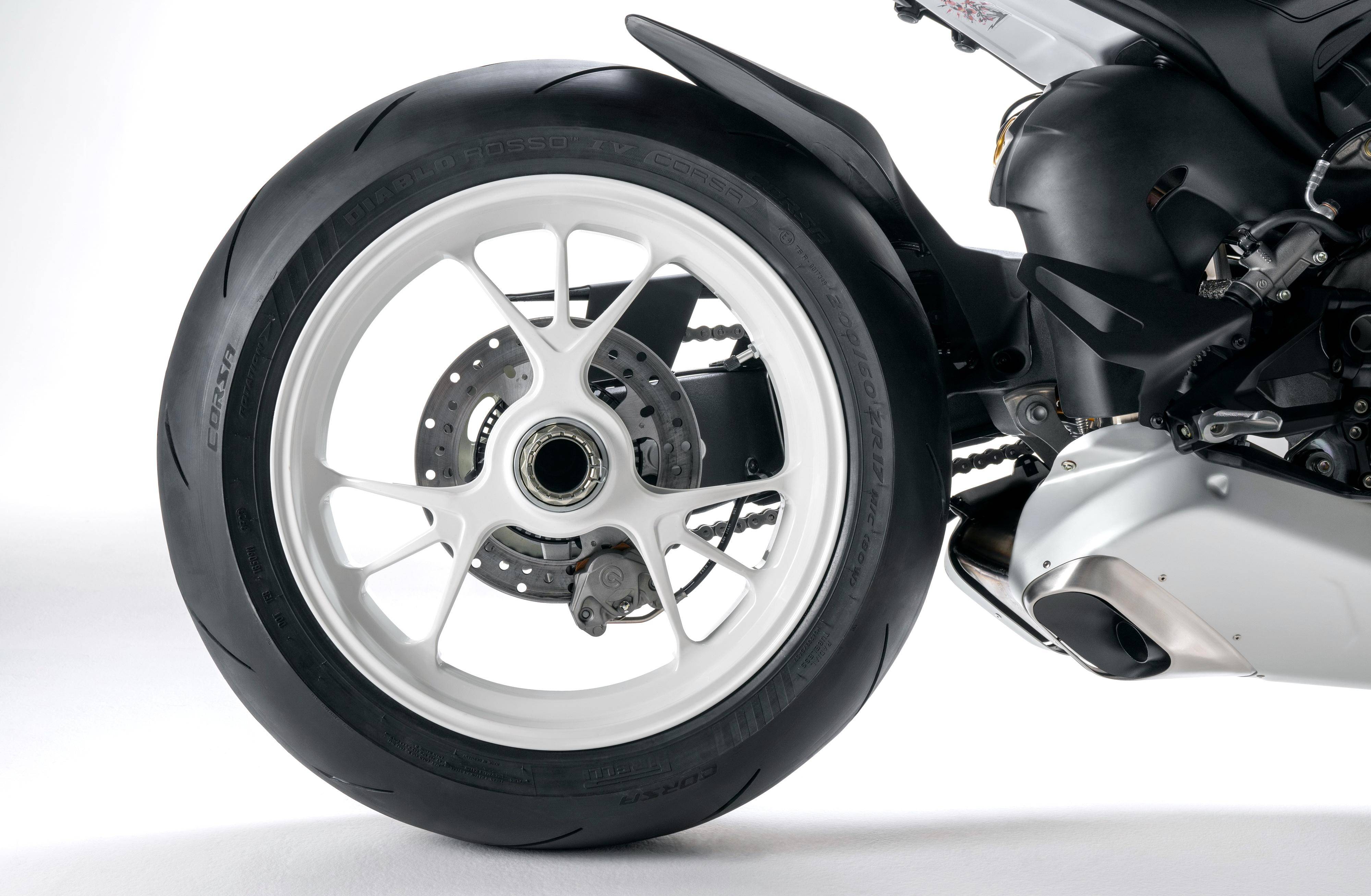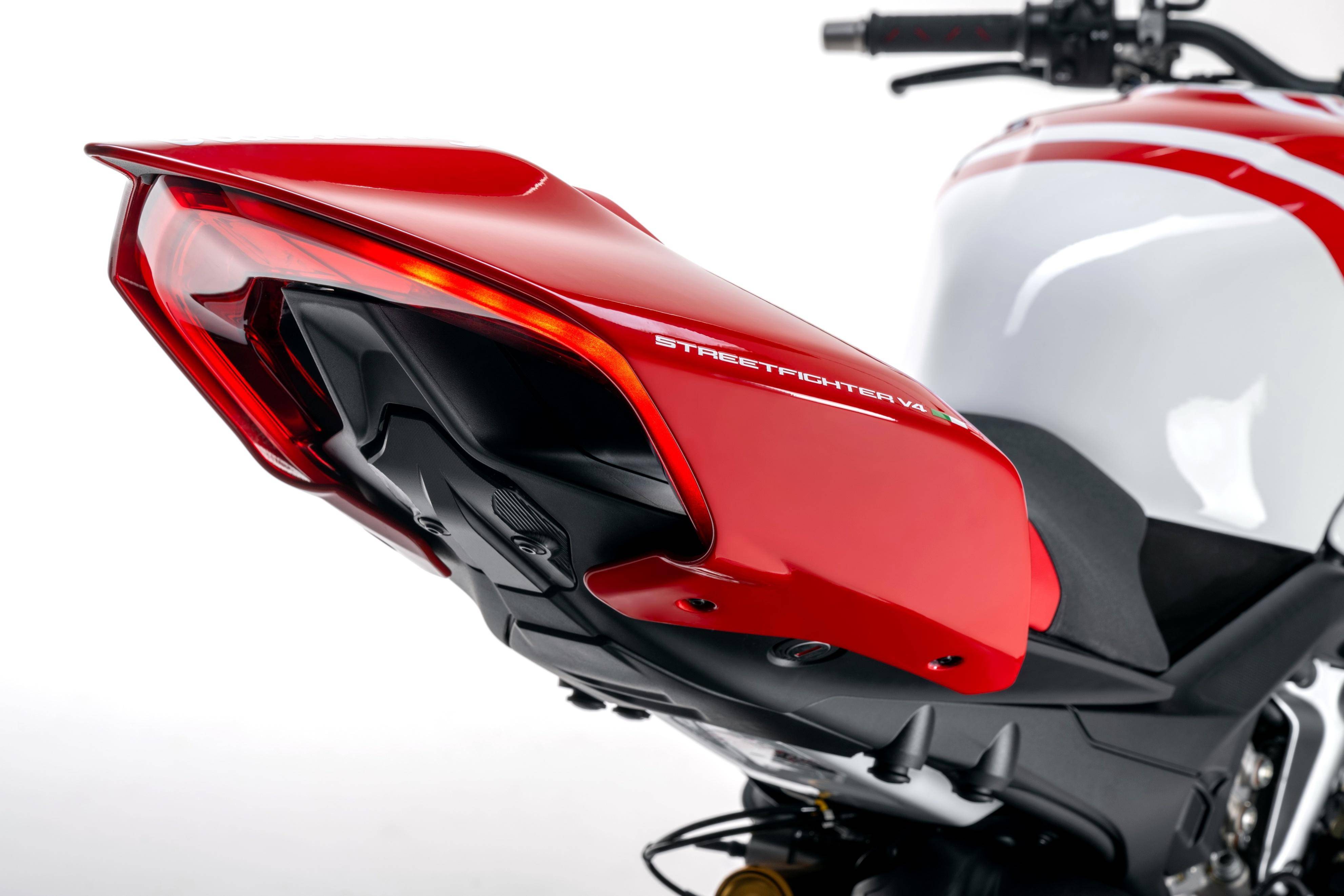 杜卡迪的 Streetfighter V4 S 街霸搭載一副 V 型 90 度四氣缸、每氣缸四氣閥的 Desmosedici Stradale 發(fā)動(dòng)機(jī),反向選裝的曲軸,排氣量 1103 cc,最大動(dòng)力輸出 208 匹。車(chē)體采用一副鋁制的前車(chē)架、后單搖臂,帶雙層式定風(fēng)翼、短尾的外觀造型,標(biāo)配了 Ohlins 奧林斯的前后懸掛系統(tǒng)、Brembo 布博的前后剎車(chē)卡鉗,并配備了包括可選的騎行模式、動(dòng)力輸出模式、DTC 牽引力控制、DWC 車(chē)輪控制、彎道 ABS 等豐富的電子控制系統(tǒng)。
