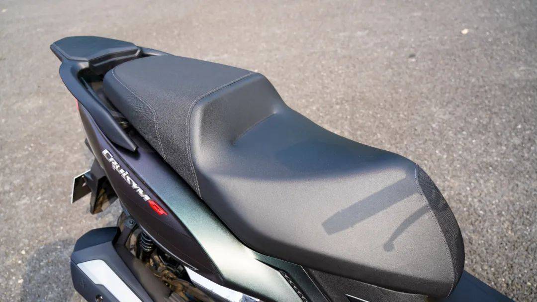 為了舒適性的進一步提升,150GT的坐墊設(shè)置為前后高低座,且落差較大,形成的腰靠在騎行時支撐效果到位,配合輕松地腿部空間,很大程度上減少了長時間駕駛的疲累感,值得好評。