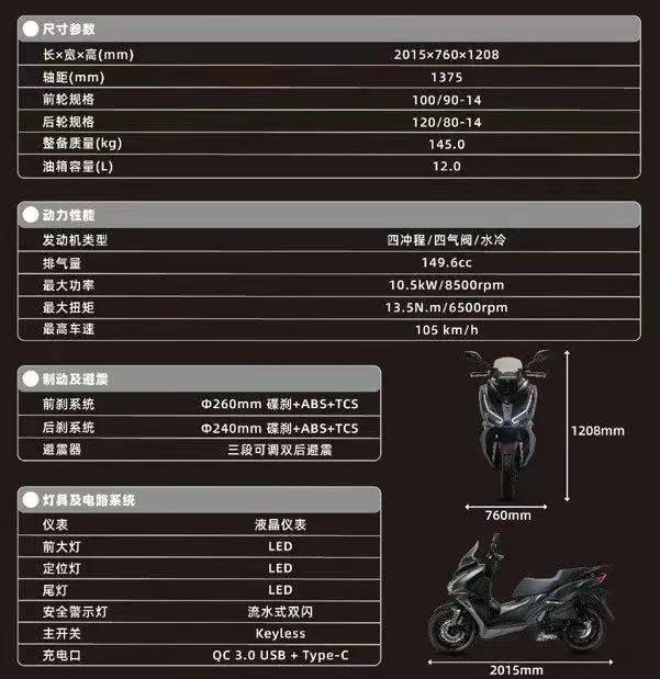所以必須點贊這12升超大的前置油箱,最大續(xù)航超400公里,在目前150踏板中油箱容積應(yīng)該是最大的。