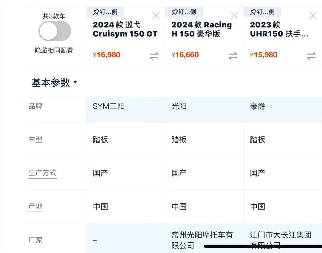 對于150級別踏板熟知的朋友都知道,目前150級的龍骨式踏板中,頂流是兩款日系踏板,27800元的雅馬哈NMAN155、本田22980元的PCX160,再之后就是國產(chǎn)品牌,銷量王豪爵UHR150(15980元)、光陽新推的RH150(16660元),如今又新增了巡弋150GT(16980元),三者都在16000元的這個價位了,且產(chǎn)品的用途,功能性接近,又都是實力品牌,產(chǎn)品品質(zhì)都是一流水準,所以大家很難不在三家車型中糾結(jié),這里簡析一下三臺車的特點以供參考。