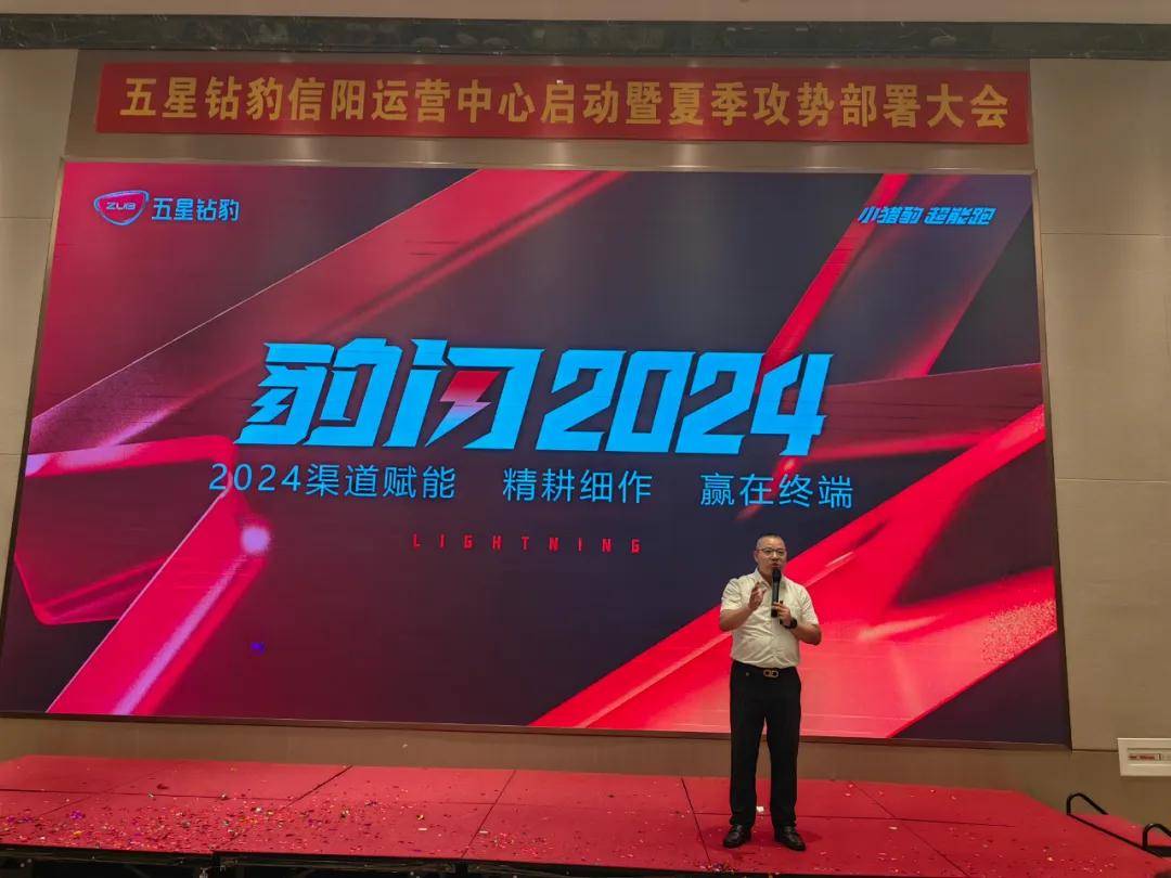 2024年5月30日,五星鉆豹“信陽運(yùn)營中心啟動暨夏季營銷攻勢部署大會”在潢川金桂酒店盛大舉行,來自信陽地區(qū)潢川縣、光山縣、息縣、新縣、羅山縣、商城縣、淮濱縣、固始縣優(yōu)秀經(jīng)銷商代表齊聚一堂,共同見證信陽運(yùn)營中心的成立,共謀市場發(fā)展大計。