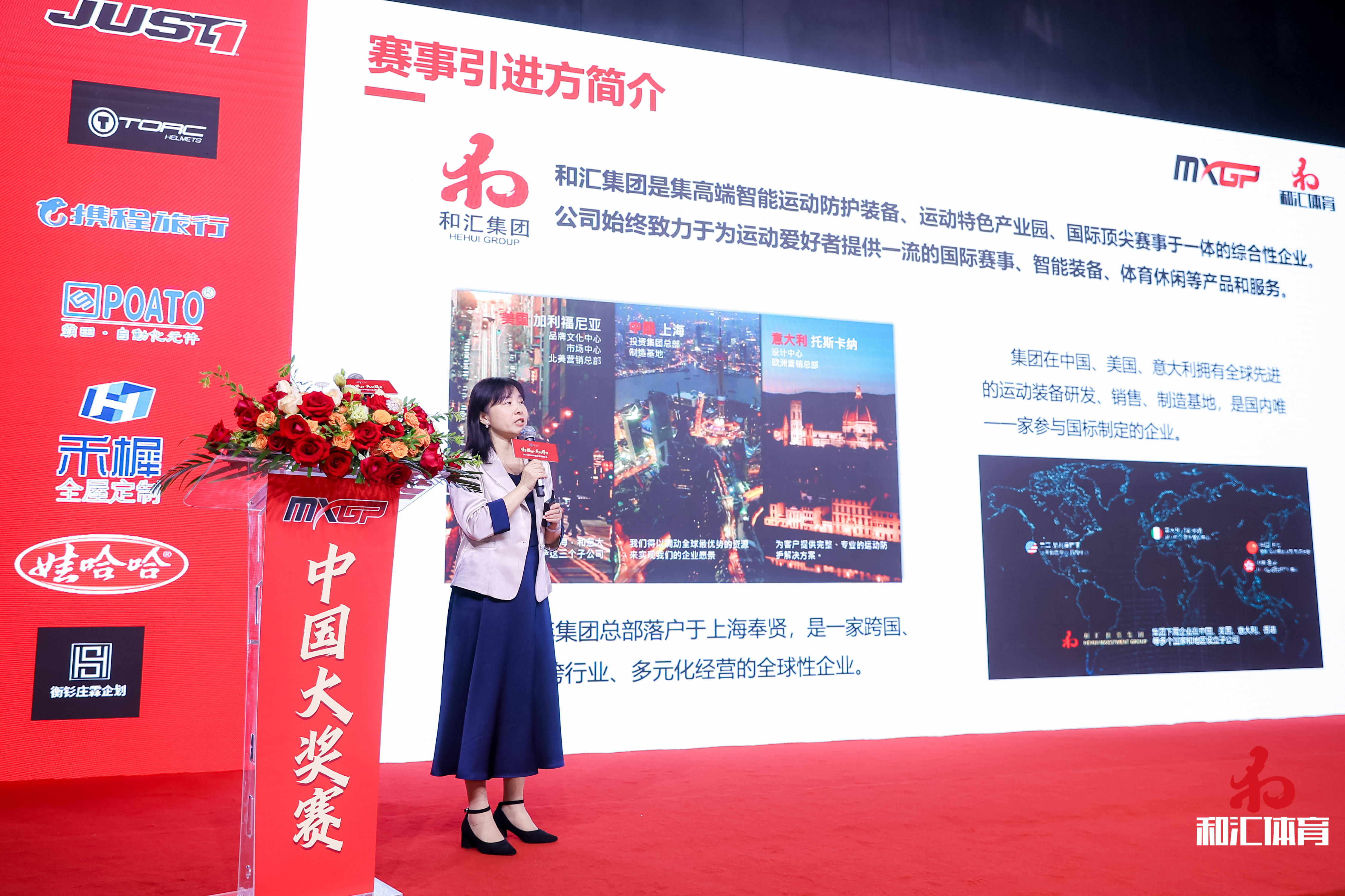 推介會(huì)上,和匯集團(tuán)副總裁助理李瑾、和匯體育總經(jīng)理助理黃一豪分別為大家介紹了MXGP賽事的發(fā)展和MXGP中國(guó)站賽事在推動(dòng)合作方品牌發(fā)展方面的獨(dú)特價(jià)值。