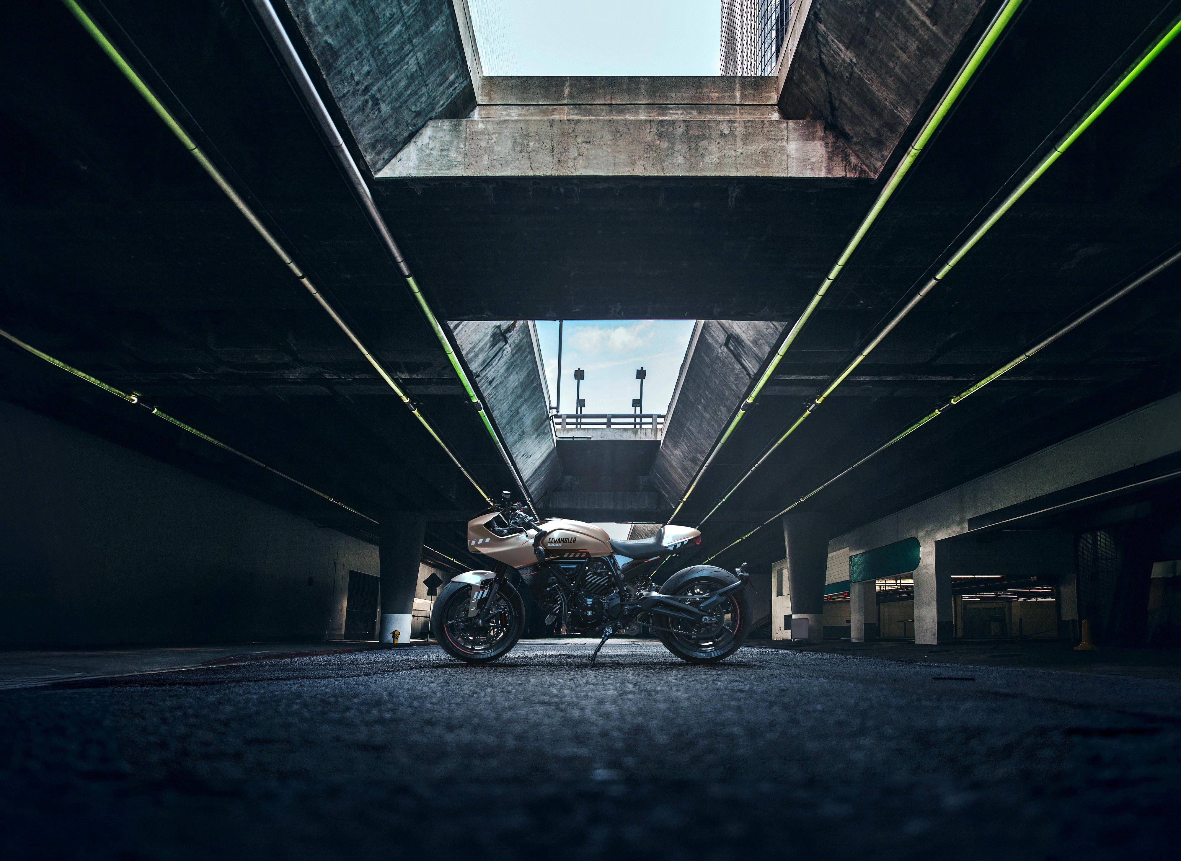 咖啡賽車風(fēng)格的 CR24I,其靈感來(lái)自上世紀(jì)六十年代時(shí)、流行于英國(guó)街頭的經(jīng)典跑車款式,換裝了直徑為 17 英寸的前輪框(Scrambler 原廠標(biāo)準(zhǔn)狀態(tài)下、采用 18 英寸的前輪框)和公路運(yùn)動(dòng)型的輪胎;前整流罩一直延伸到油箱,讓全車的外觀有著杜卡迪上世紀(jì)七十年代經(jīng)典車型 Pantah 和 750 SS 的輪廓;分離式設(shè)計(jì)的車把、位于車把兩端的后視鏡,單座位的設(shè)計(jì),都流露著對(duì)過(guò)去那些線條的緬懷。