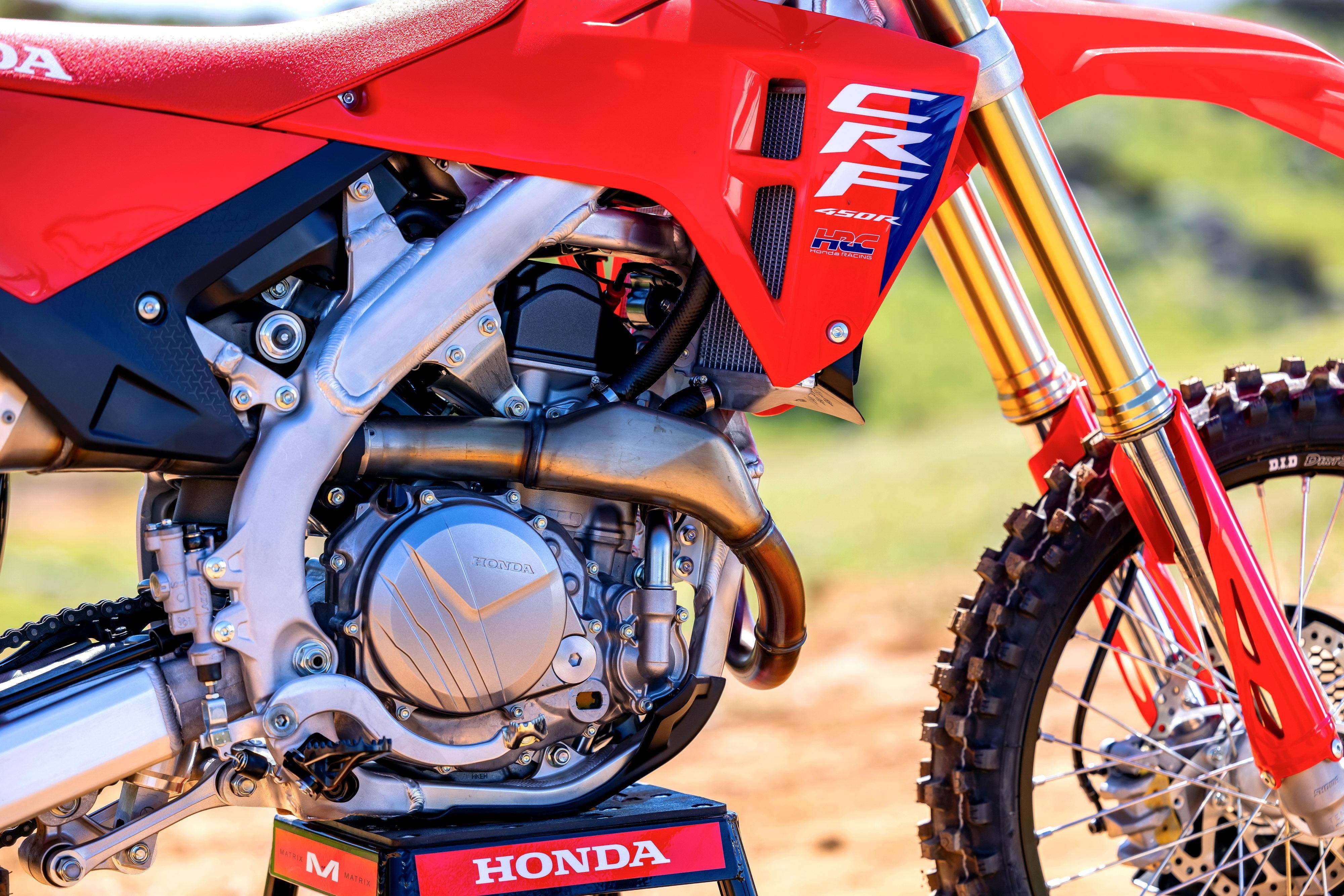 新車沿用了原有的四沖程單氣缸、SOHC 四氣閥(Unicam)的發(fā)動(dòng)機(jī),缸徑、行程為 96.0 mm x 62.1 mm,壓縮比 13.5:1,排氣量 449.7 cc;廠方未有公布新車的峰值動(dòng)力輸出數(shù)字,但估計(jì) 2025 CRF450R 的最大動(dòng)力輸出將達(dá)到 65 匹的級(jí)別。車體采用一副鋁合金制的雙翼樑式車架,Hitachi Astemo 公司配套的 Showa 前后懸掛系統(tǒng),高達(dá) 961 mm 的座位高度,前 21、后 19 英寸直徑的車輪。